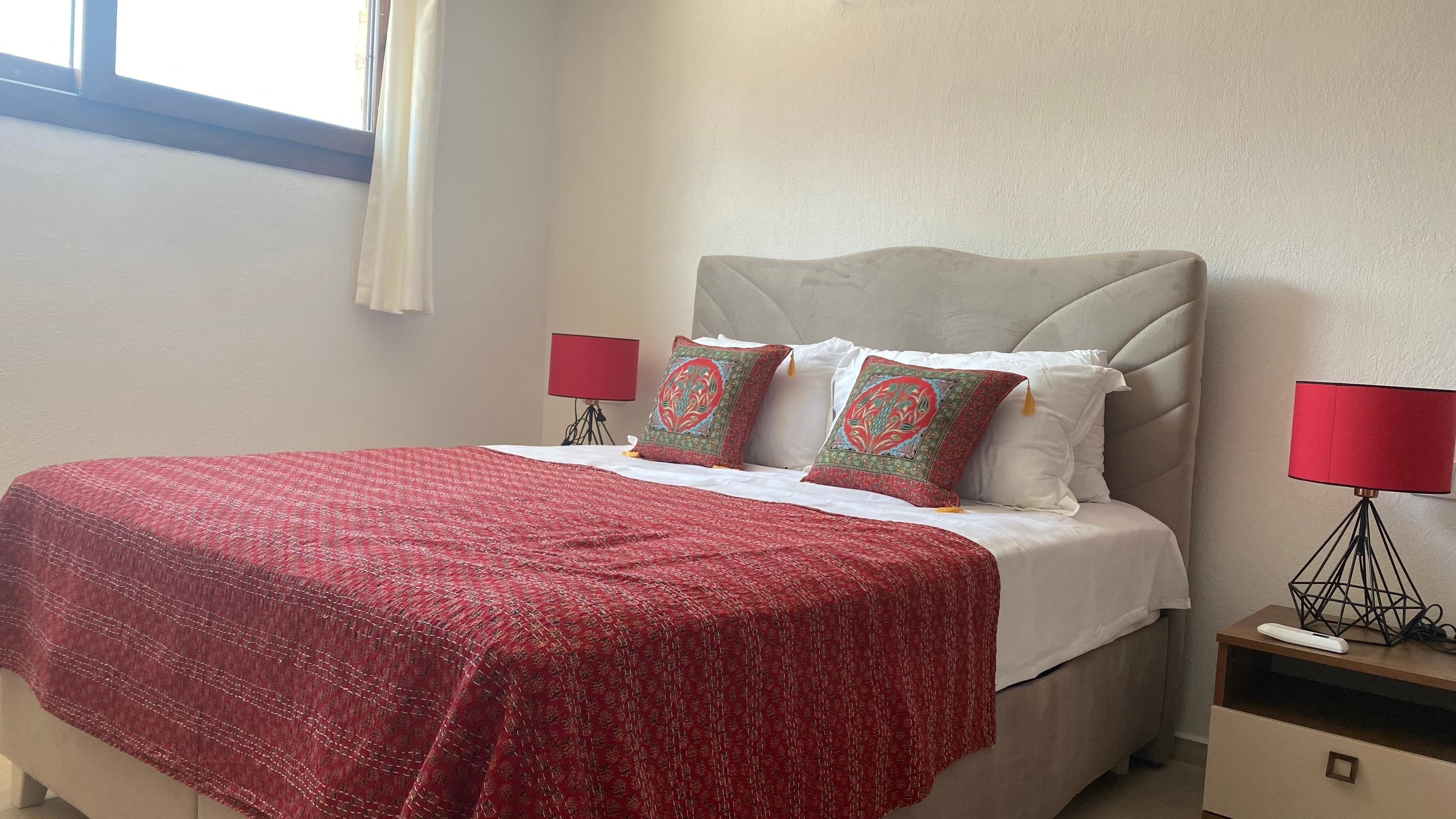 Die oberen 4 Schlafzimmer haben alle ein weitereichender Blick auf Meer, Pool und Wald. 2 Zimmer davon haben ein Balkon, ein separates Ankleidezimmer und ein eigenes Badezimmer, einmal mit einer Dusche und einmal mit einem Whirlpool. Ein drittes Badezimmer mit Dusche befindet sich ebenfalls im ersten Stock. Insgesamt 7 Schlafplätze, mit 3 Zimmern mit Queen Size Bett und 1 Zimmer mit einem 1.20 m Bett.