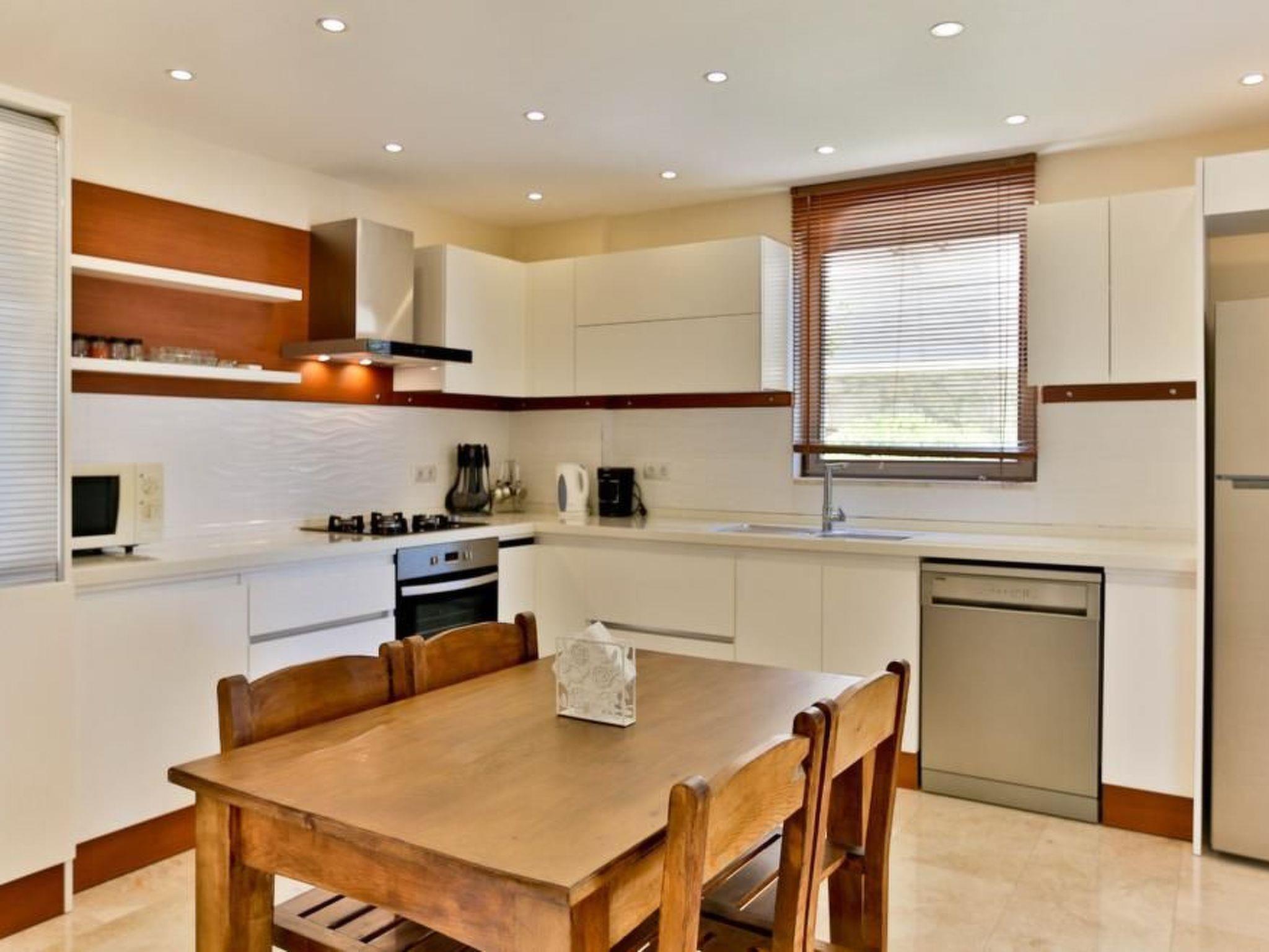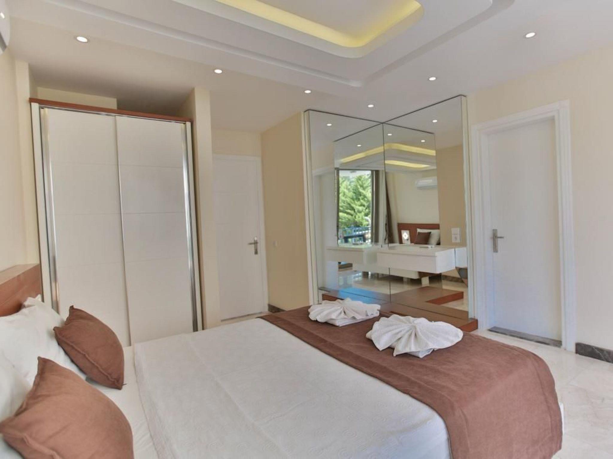 Outside, the private pool invites you to swim undisturbed under the Anatolian sun. A terrace and a balcony offer ideal conditions for enjoying moments together outdoors or simply sitting back and enjoying the peace and quiet. The well-kept outdoor area completes the picture of perfect holiday accommodation.