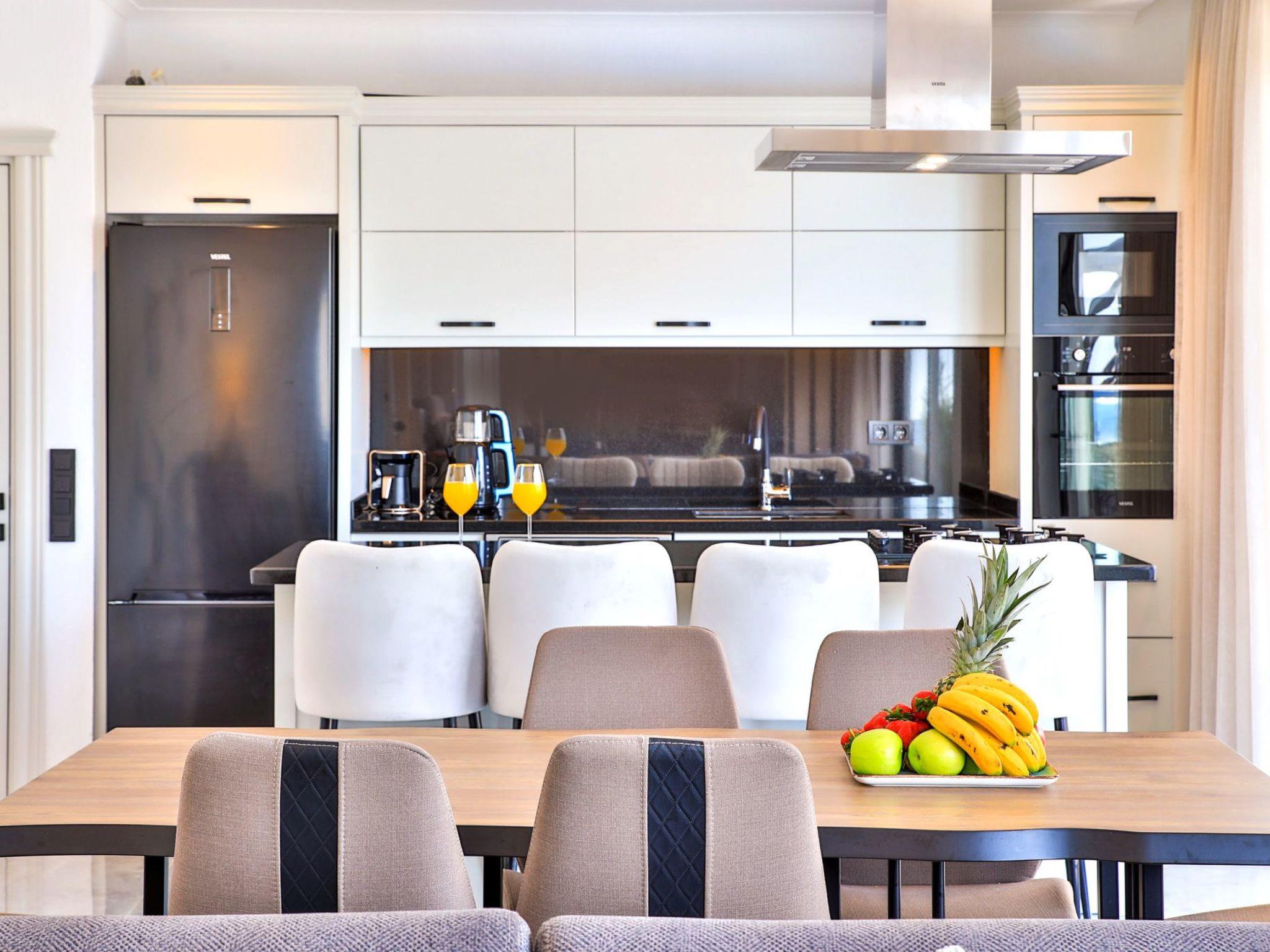 Thanks to its location, you are only 6000 metres from the nearest beach, ideal for days by the sea. The nearest town centre and shopping facilities are just 5000 metres away, making self-catering easy and allowing for spontaneous excursions into the surrounding area. Discover the beauty of Kalkan, a region known for its hilly landscape and uneven roads that add a special charm to every visit.
