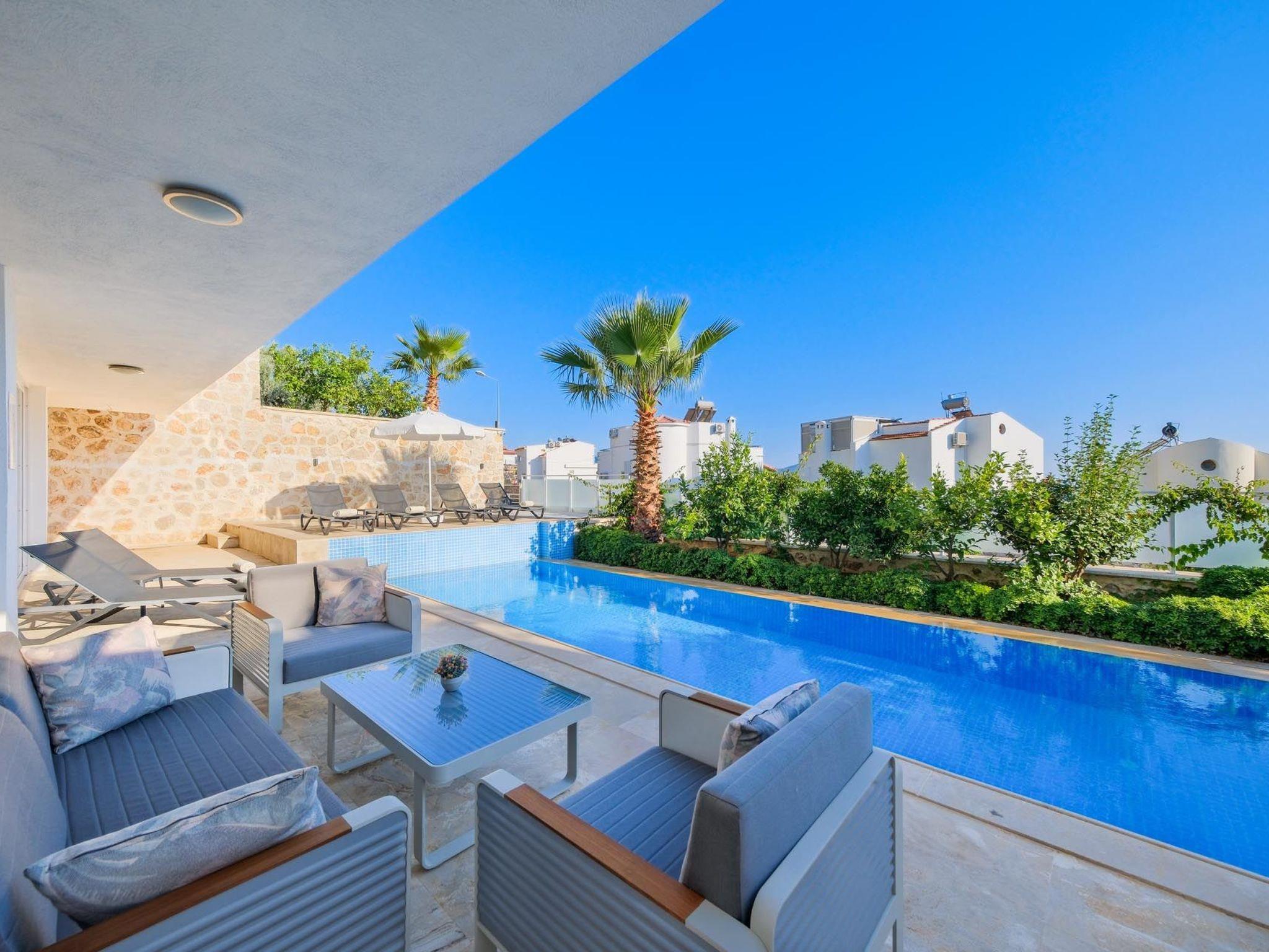 Immerse yourself in the heart of Kalkan, where your dream villa for up to 8 people awaits you. This detached holiday home is not only your gateway to an unforgettable holiday experience, but also an oasis of relaxation and comfort. With a private pool and an unrivalled location that keeps the centre of Kalkan and all its amenities within easy reach, this place promises to exceed your expectations and give you unforgettable moments.