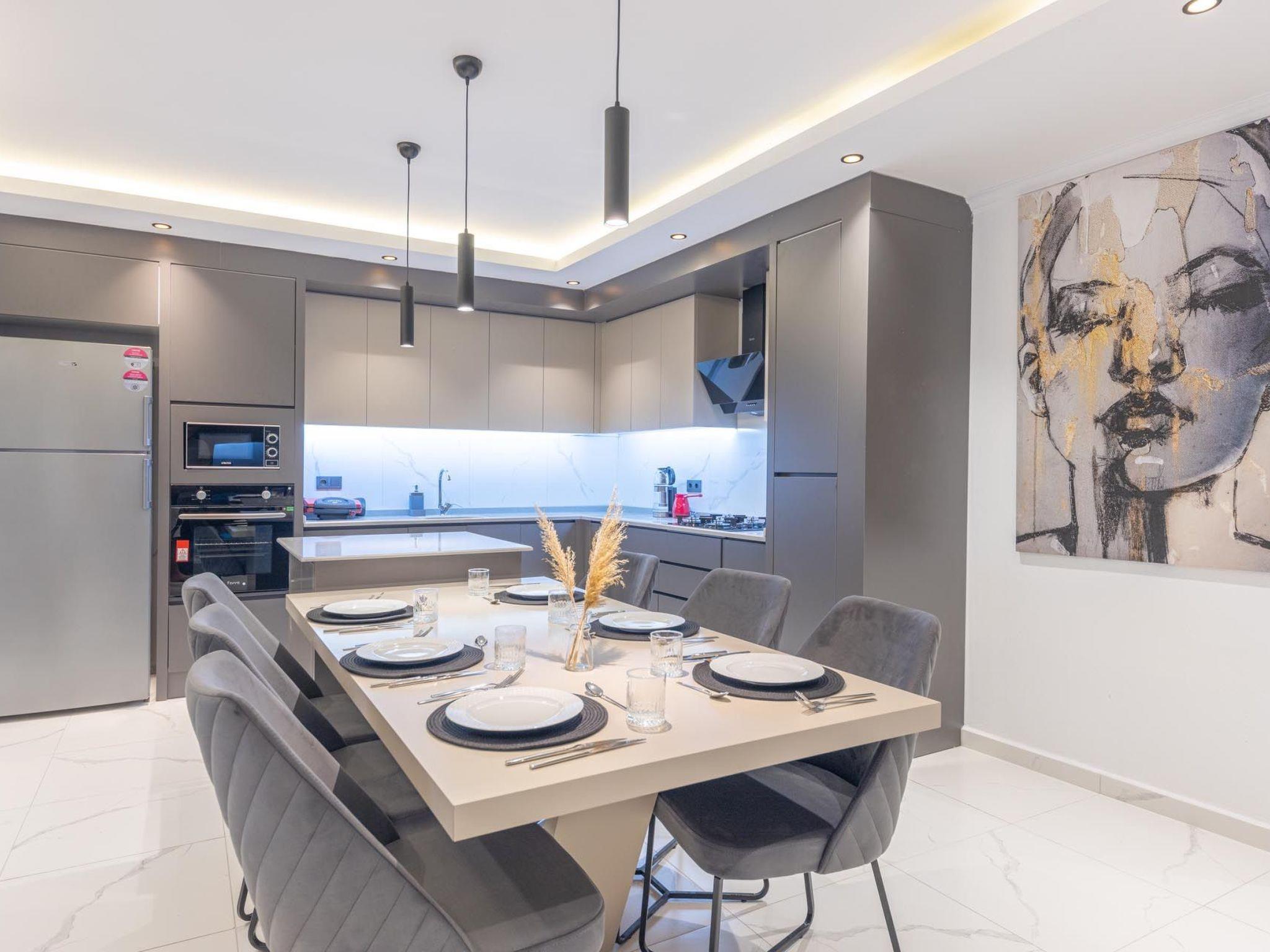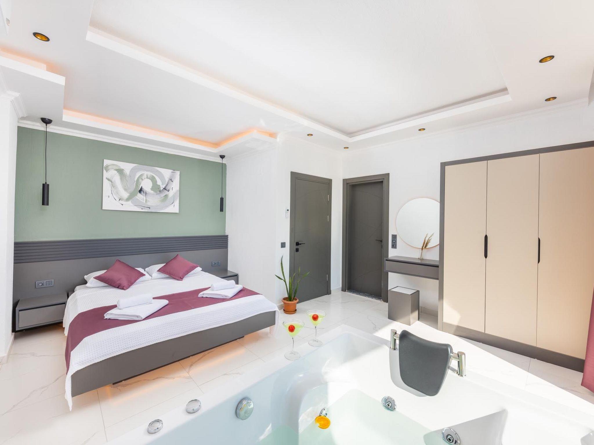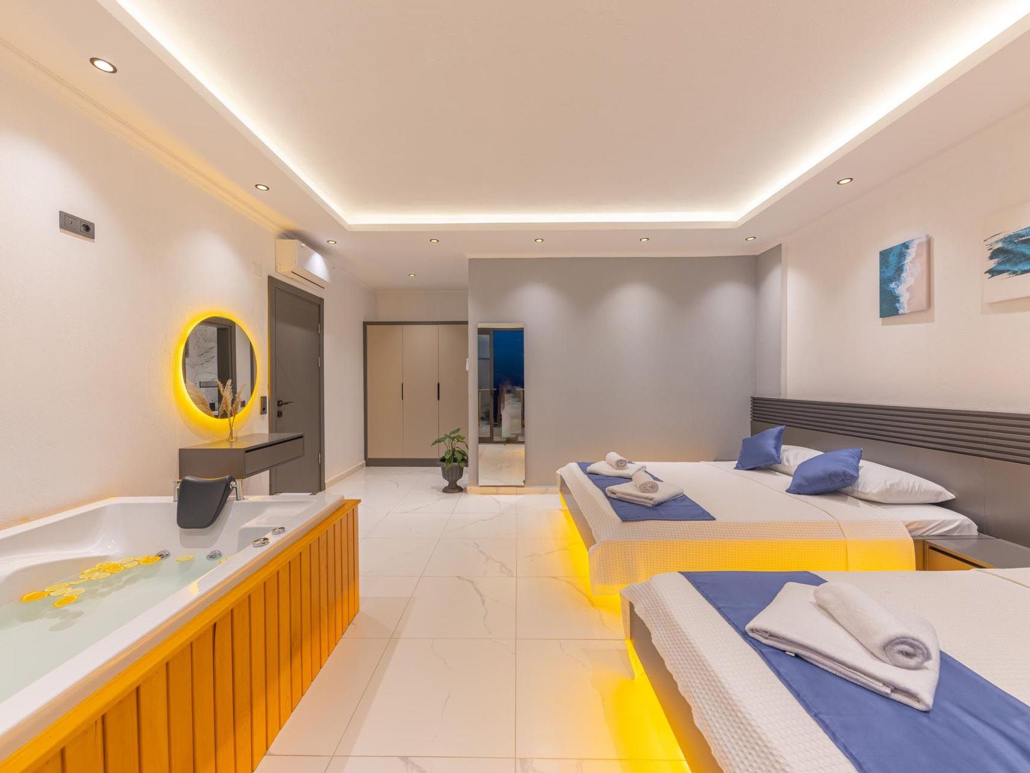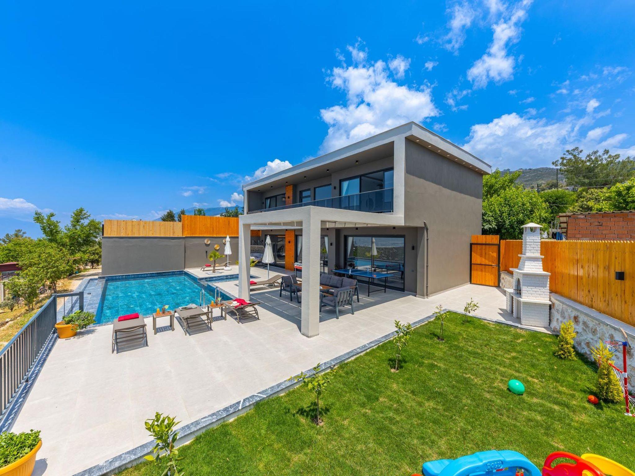 The villa is a luxurious villa located in Üzümlü, a quiet area and the best holiday resort of Kalkan. It offers a breathtaking view and you can even see the world famous Patara beach with a length of 13 km in the distance. The villa is spacious and has a special children's playground, a park and a garden area for families with children. The pool and pool terrace are generously designed and offer privacy. Therefore, the villa is an ideal choice for conservative families and honeymoon couples. The villa consists of a total of 2 suites. On the ground floor there is a modern kitchen and a living room. Thanks to the bed in the cinema room in the basement, a total of 7 people can be accommodated. Our villa offers a marvellous view from every room and provides a comfortable service with its sauna. There is a hot tub in both rooms, making it a villa with two hot tubs. With all these features, our villa awaits its valued guests. In addition, there is table tennis and table football for your entertainment in the villa.