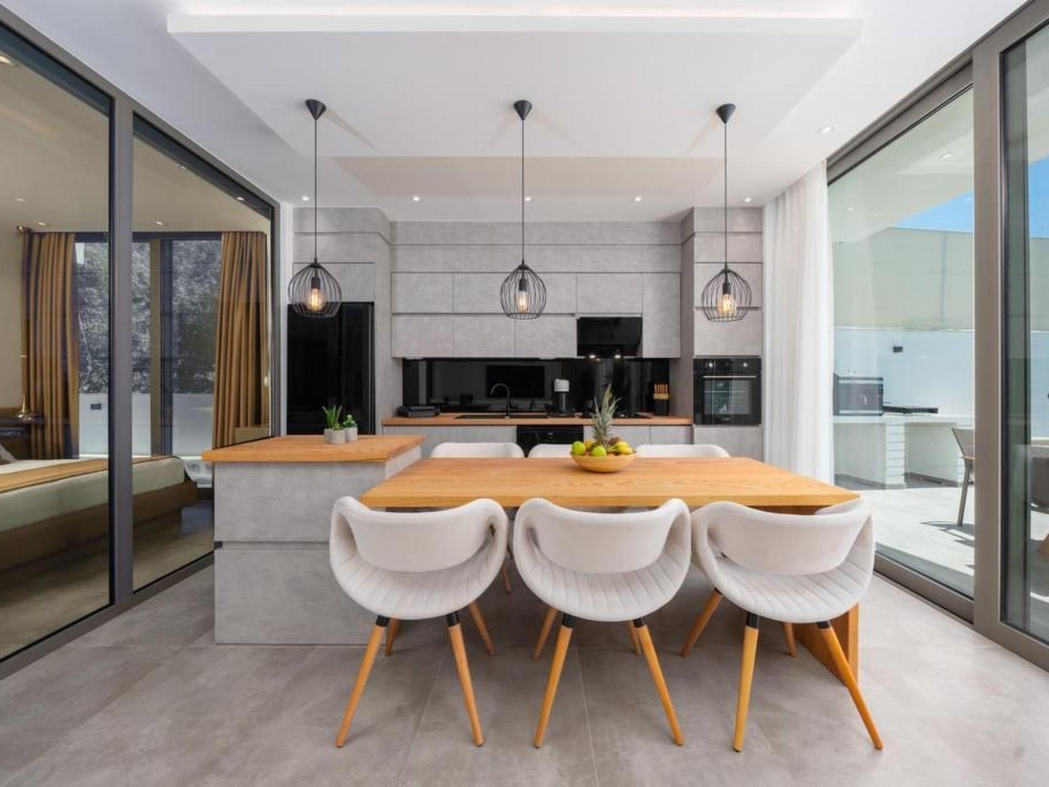 During your stay, you will enjoy the convenience of household amenities such as a washing machine and dishwasher to make your holiday as comfortable as possible. Thanks to the solar system, sustainable electricity is provided, while the air conditioning in all areas ensures a pleasant indoor climate at all times. Everyday appliances such as a kettle are also available to meet your needs.