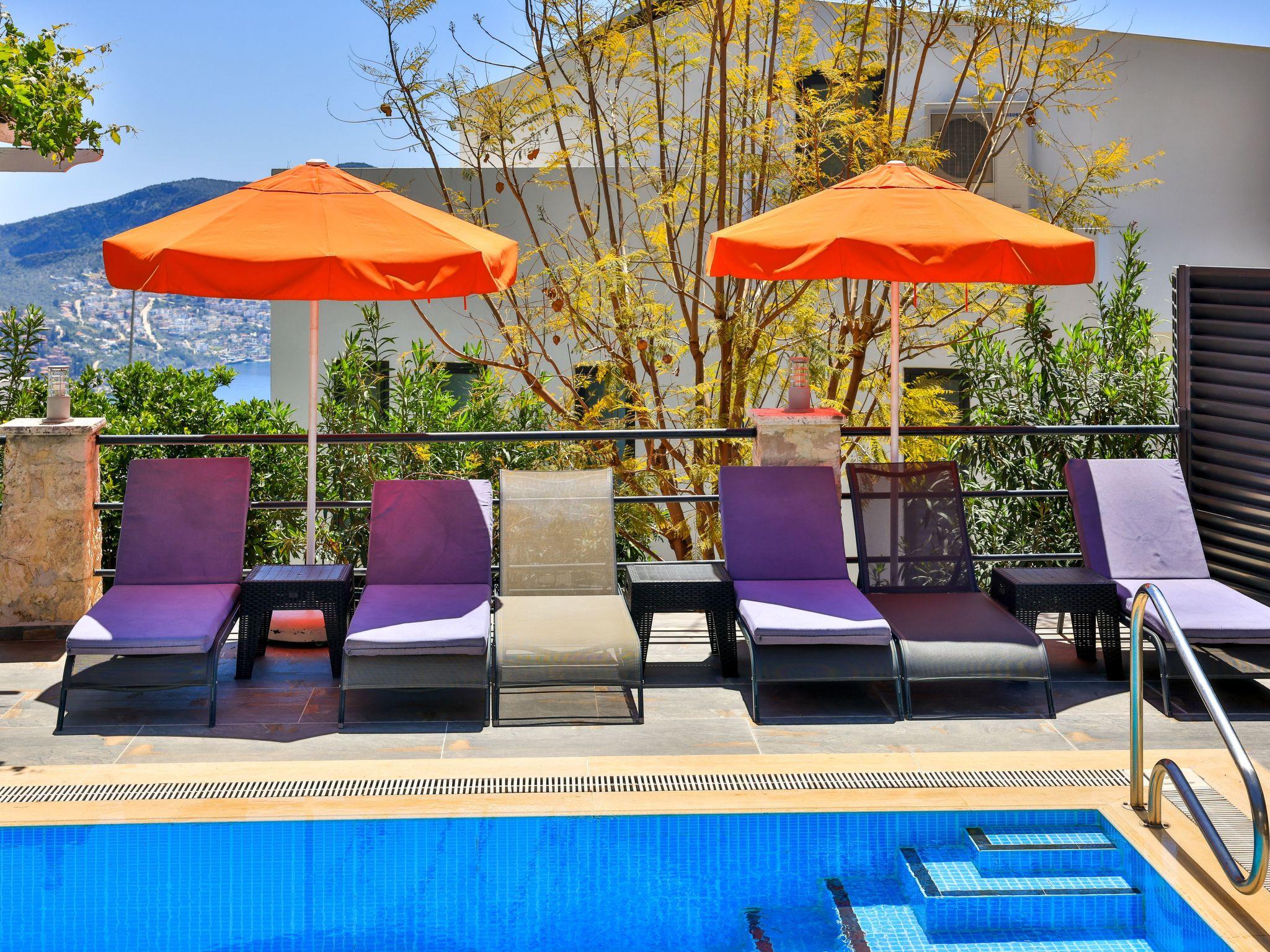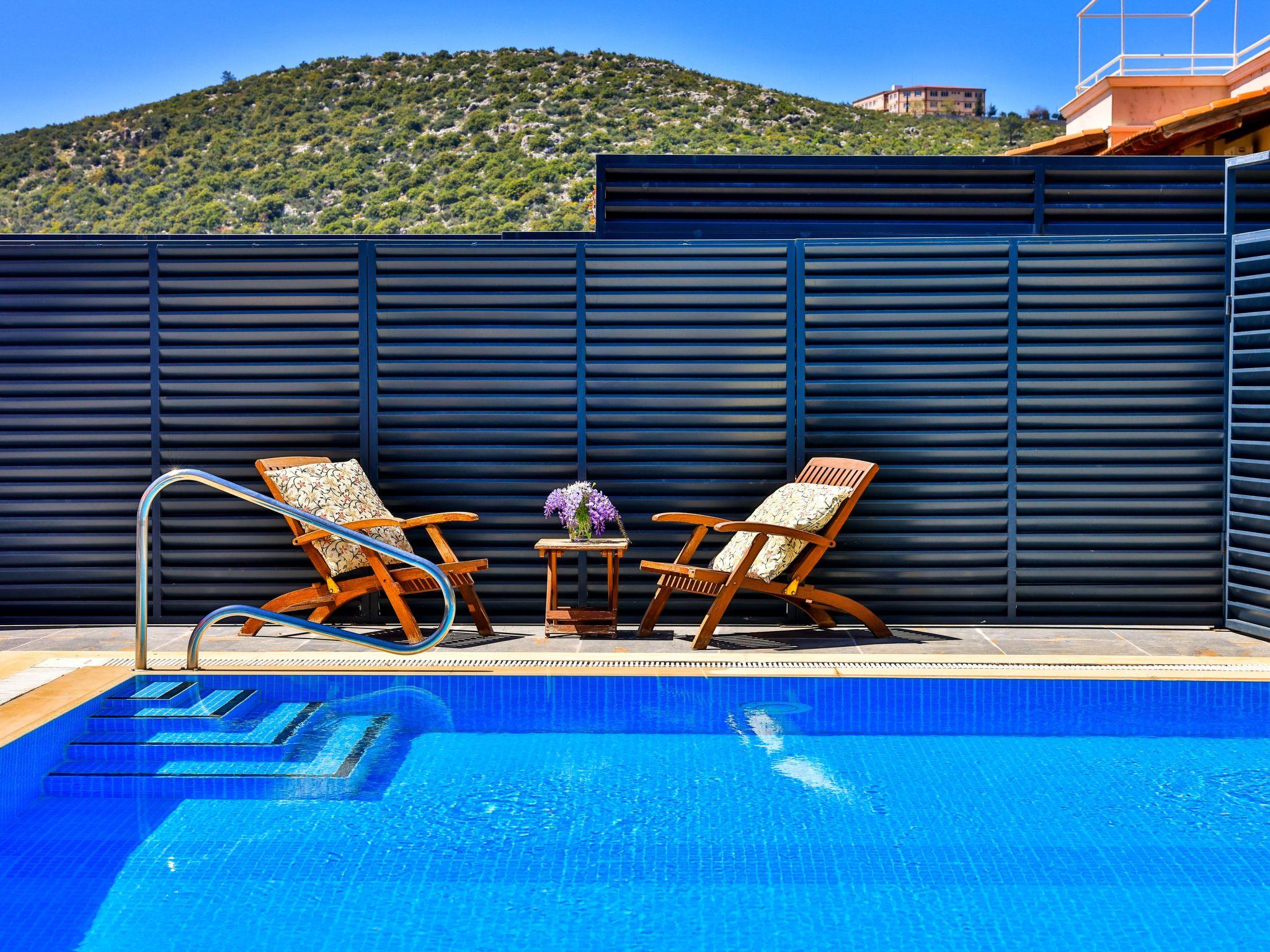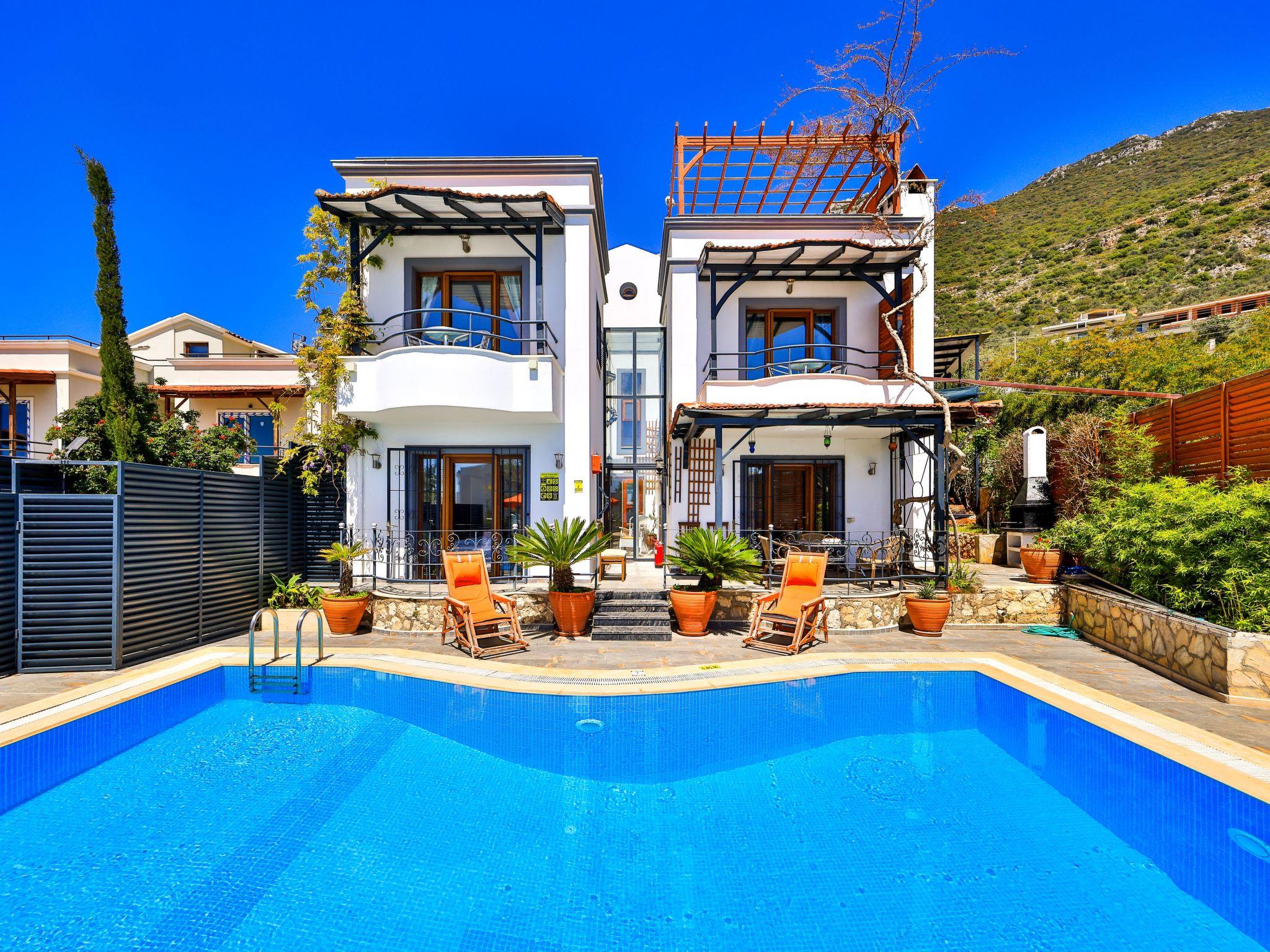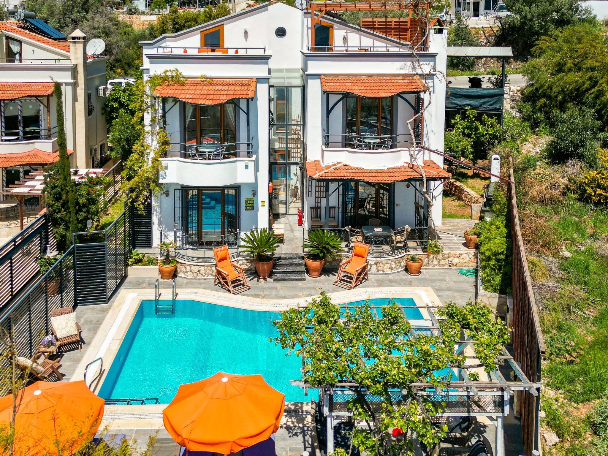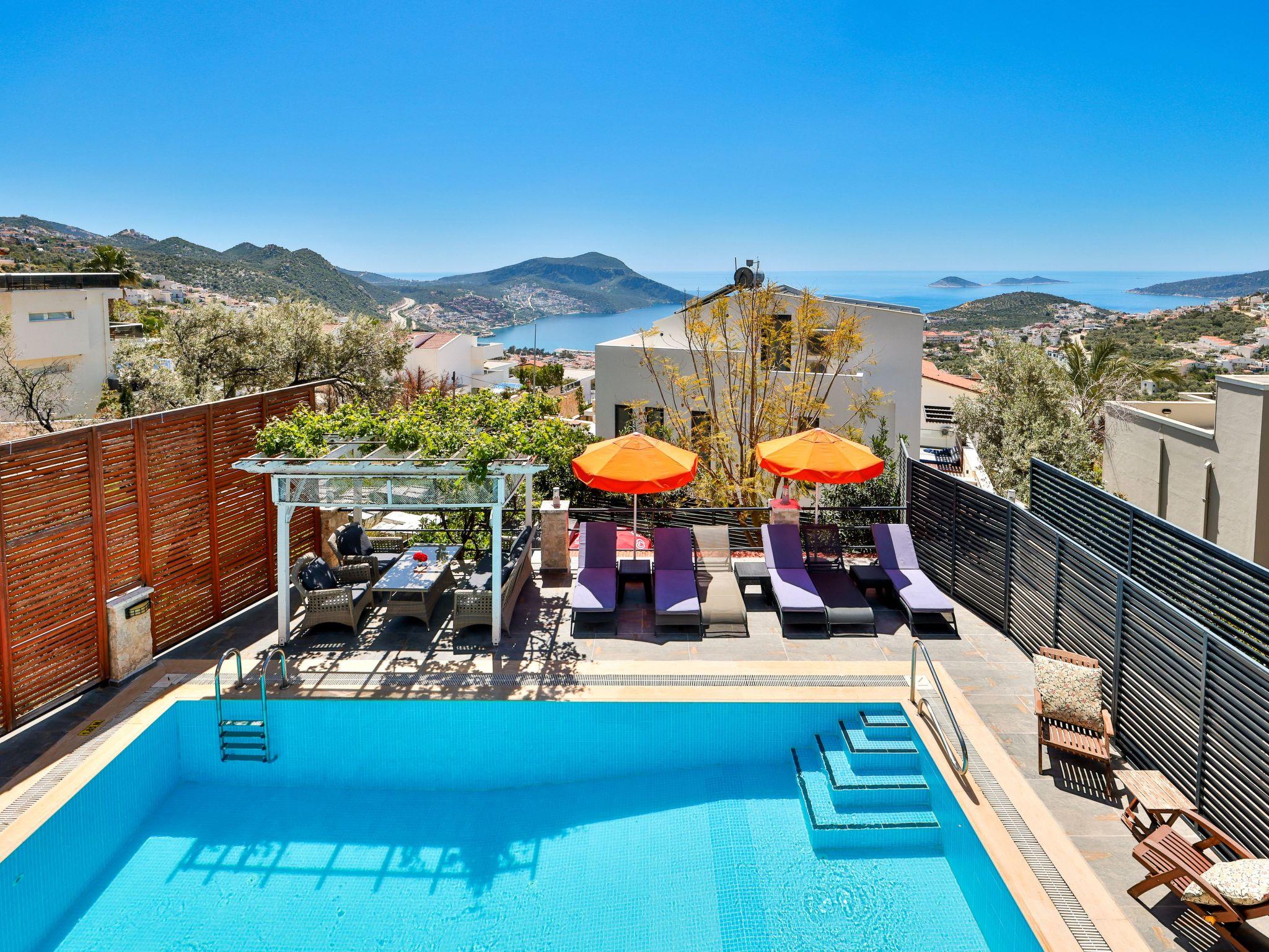 Enjoy stunning sea views from this luxury villa in Kalkan, featuring a large private pool, spacious garden, roof terrace, and fully equipped gym. With 4 bedrooms for up to 9 guests, it’s perfect for families and groups. A ground-floor bedroom makes it suitable for guests with limited mobility. Just 20 minutes’ walk to Kalkan center, with public minibuses passing in front.