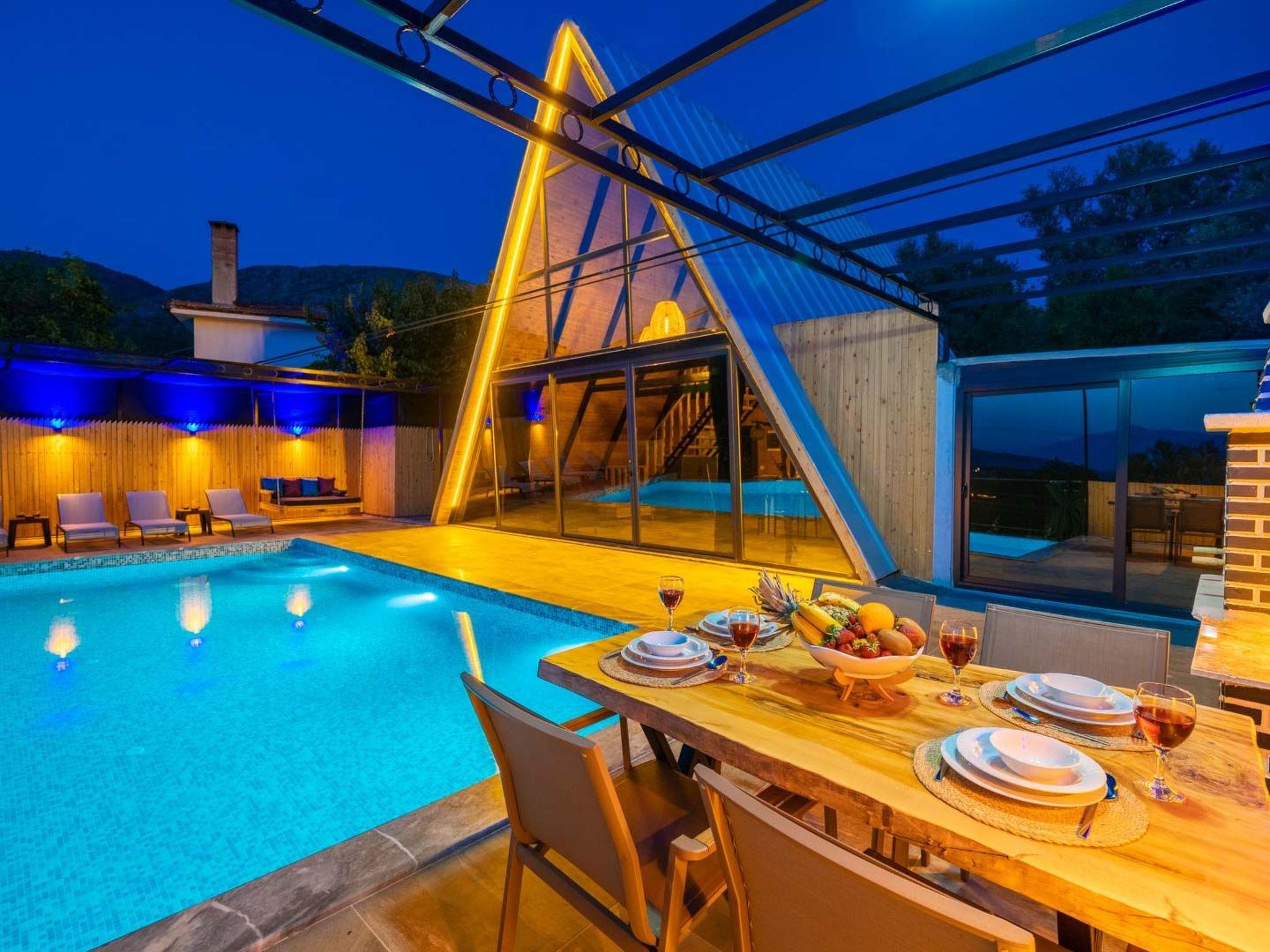 This villa in Kalkan Üzümlü is the perfect place for couples looking for luxury, closeness to nature and privacy in a unique bungalow. A place where you can leave the stresses of everyday life behind and recharge your batteries in a peaceful, natural setting. Welcome to your new home - an oasis of peace and comfort.