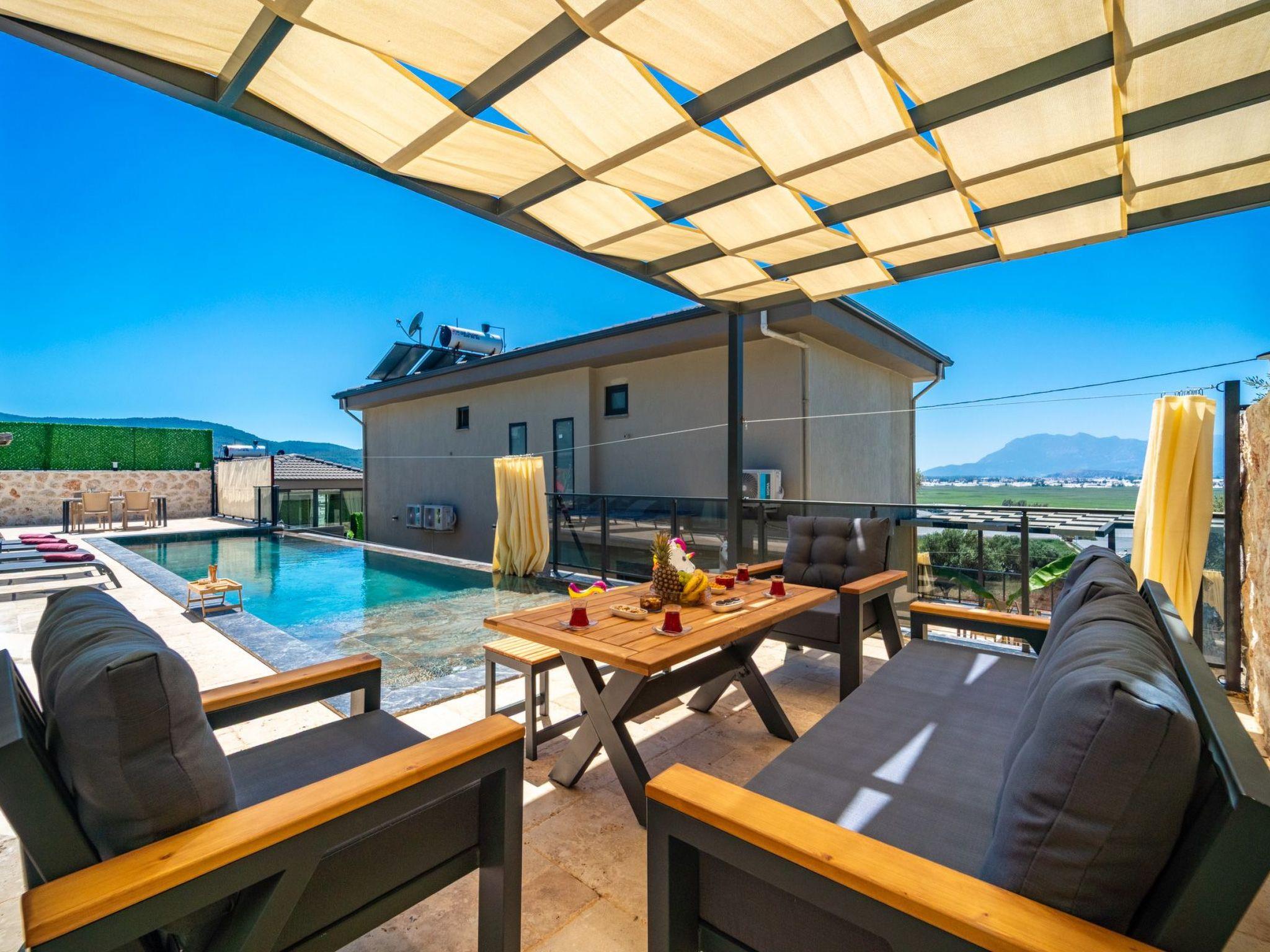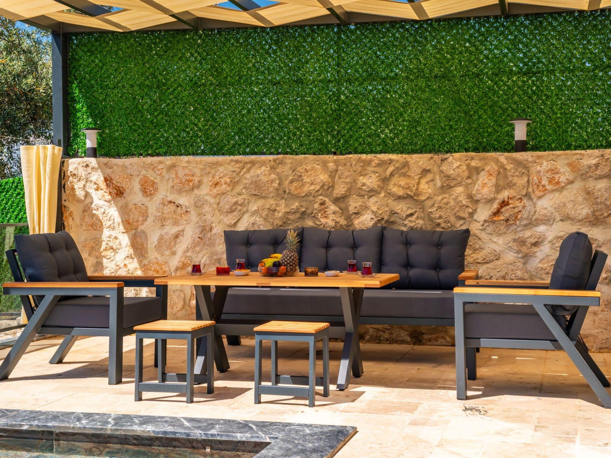 Outside, the private pool is for your sole use and provides refreshing moments on warm days. The garden of the holiday home also offers a private oasis for relaxing under the Anatolian sun. The outdoor areas have been carefully designed to guarantee you peace and privacy during your stay. Here you can spend time with your loved ones undisturbed.