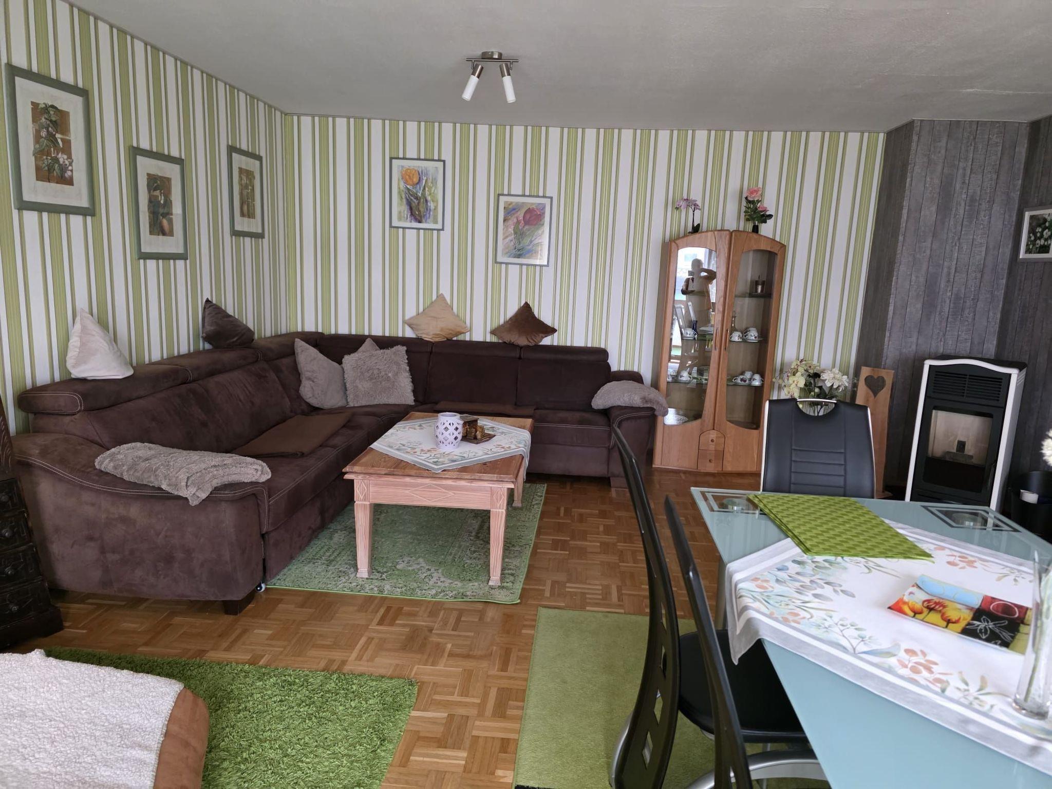 The approx. 100 m² flat has a large living/dining room with a sofa bed for two people (1.4 m x 2 m), a dining table with chairs and a fireplace. The fireplace can of course be used for cosy evenings. The first bedroom has a double bed and a sofa bed for one person (1.5m x 2m) and a cot/baby bed. The second bedroom has a bed (1.40 m wide). The flat has a fully equipped fitted kitchen with an oven, a ceramic hob, a fridge with freezer compartment, a freezer, a dishwasher, a filter coffee machine, a toaster, a kettle and a storage room. The landlord will be happy to provide you with a high chair free of charge. The flat also has a bathroom with shower, bathtub, washbasin, hairdryer and toilet. A washing machine, tumble dryer, hoover and iron can be used free of charge. The washing machine and tumble dryer are located in the laundry room in the basement of the building. The flat has free WLAN. The linen package includes one bath towel, two towels and bed linen per person