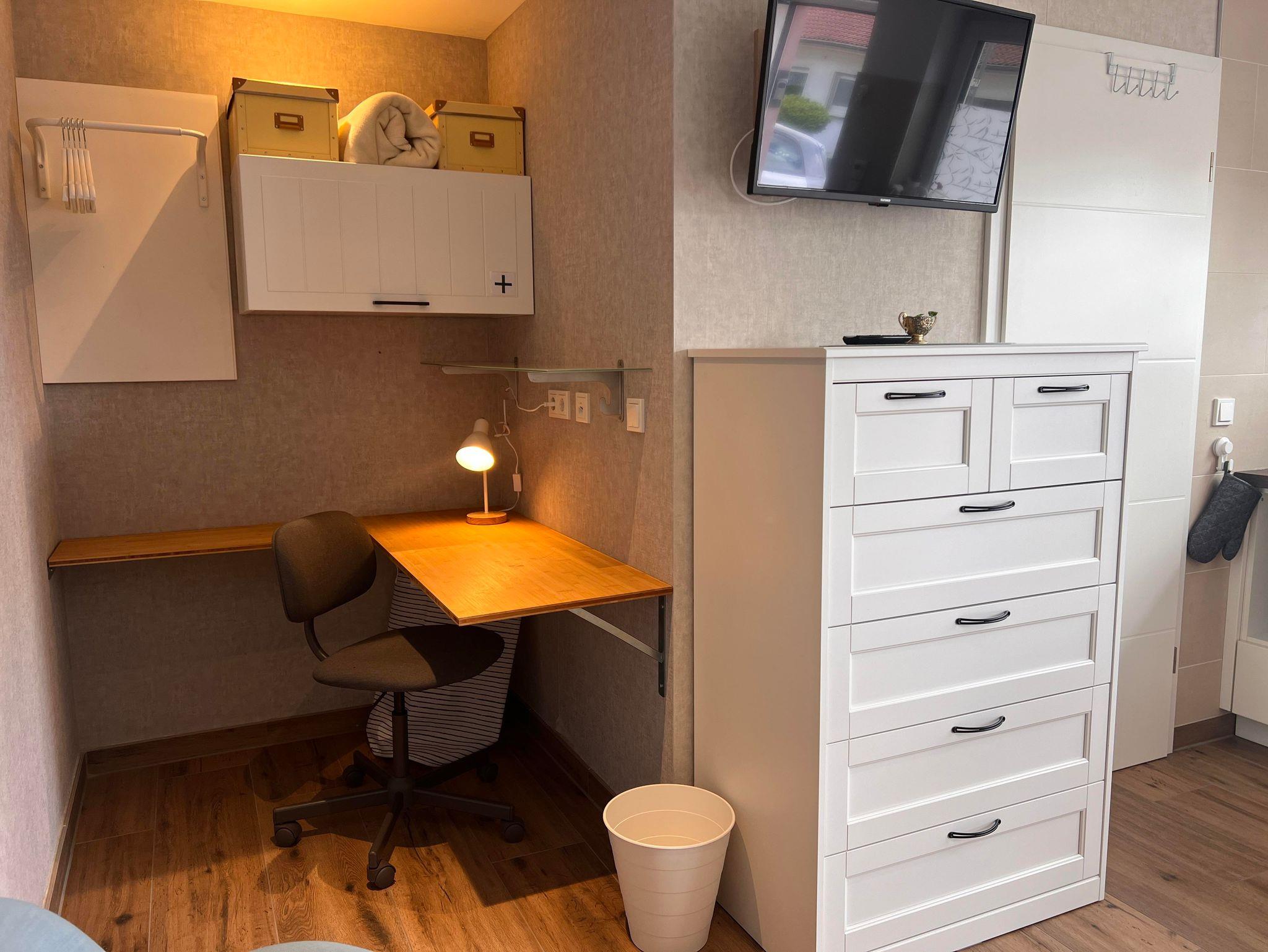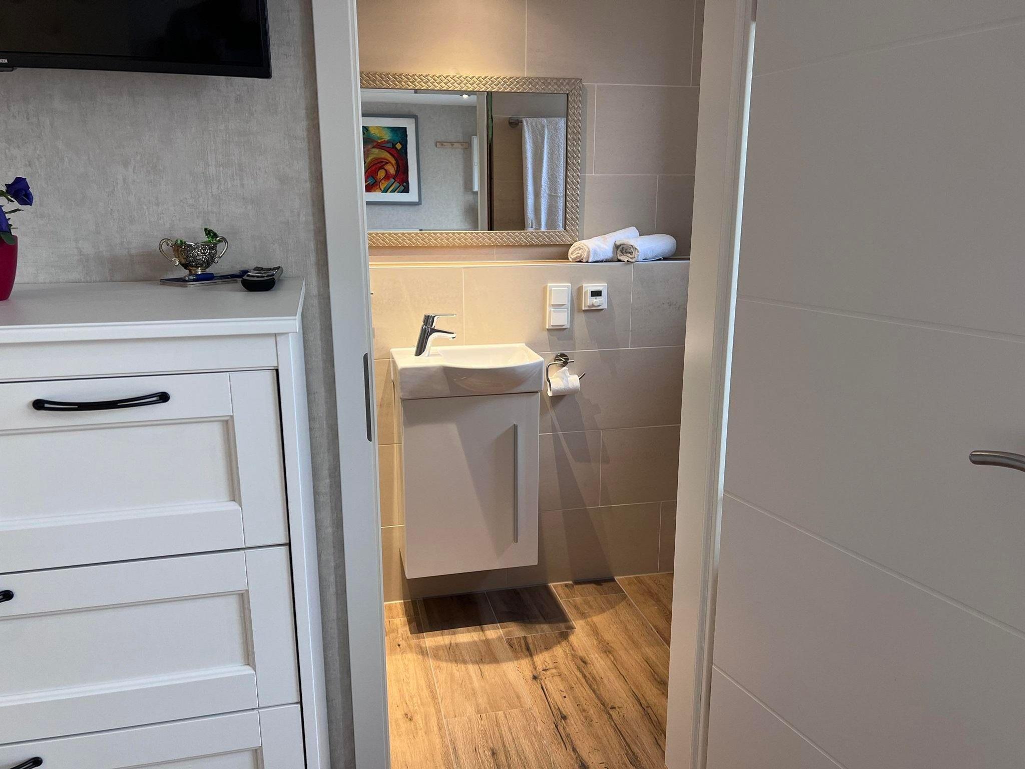 Unser schönes 1-Raum Appartement aus dem Jahr 2022 mit einer Wohnfläche von 20 m2 hat einen eigenen Zugang, ein angrenzendes Bad mit Dusche und WC.