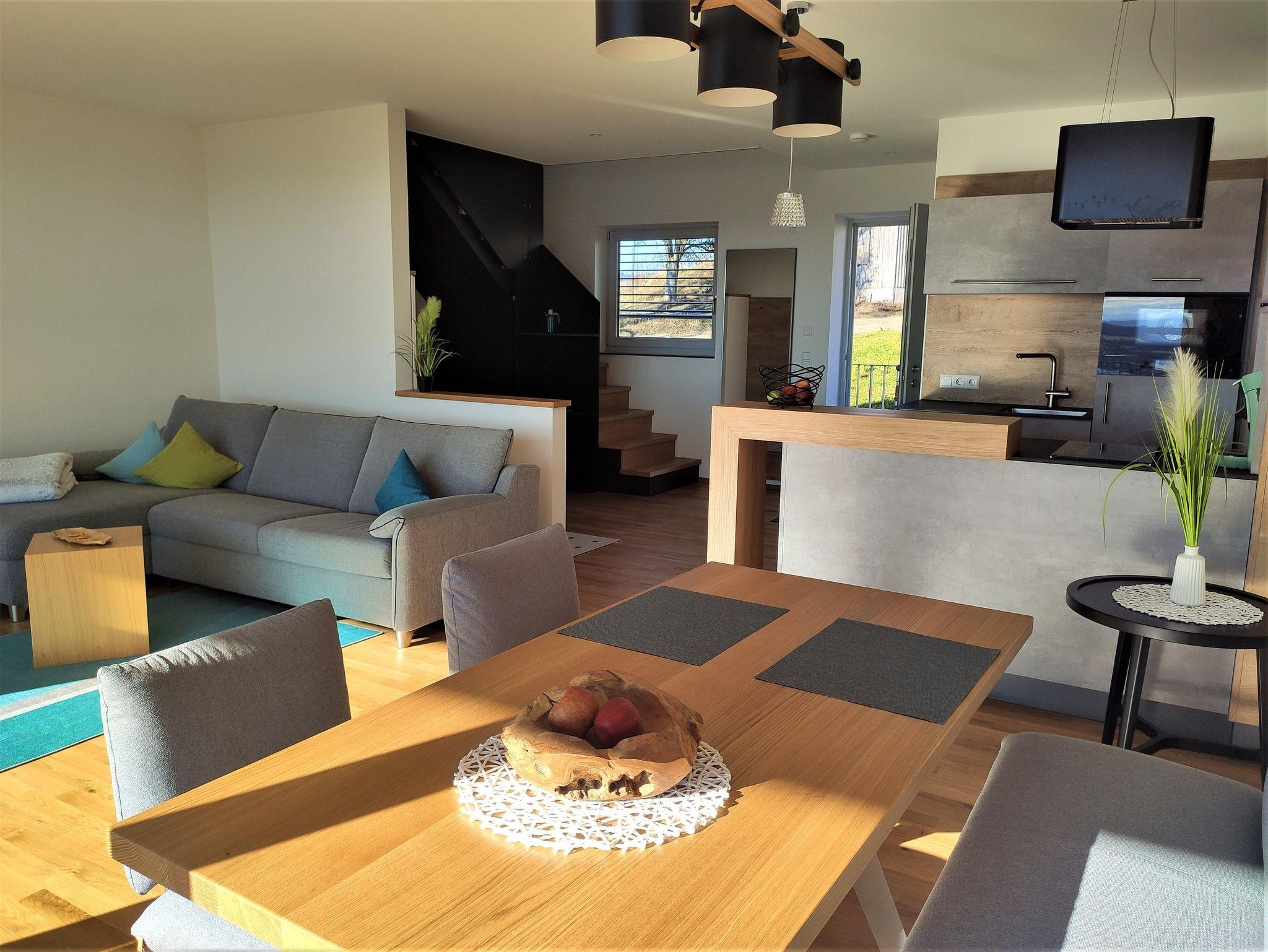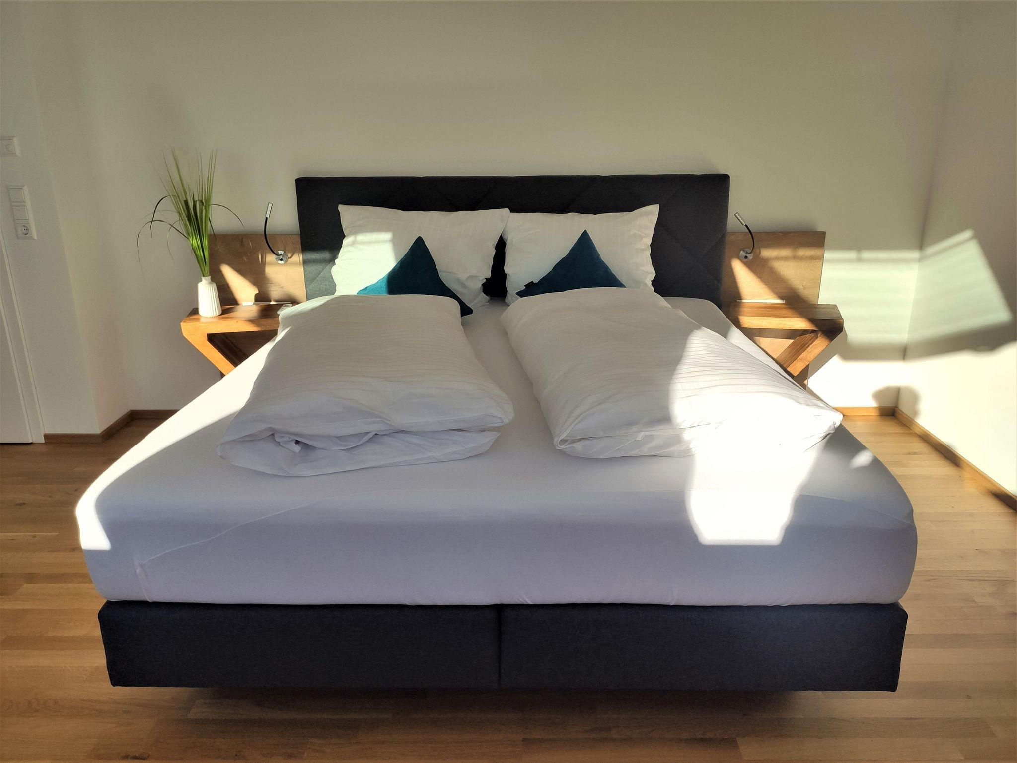 In allen 10 Wohnungen unserer beiden neu erbauten Häuser können Sie sich erholen. Jedes Zimmer lädt vom ersten Augenblick an zum Wohlfühlen ein mit hochwertiger Möblierung, gemütlicher Sitzecke, eigener Küche sowie den schön gestalteten Badezimmern. Nicht zu vergessen ist der Panoramabalkon, auf dem Sie die Weite der Landschaft spüren können.