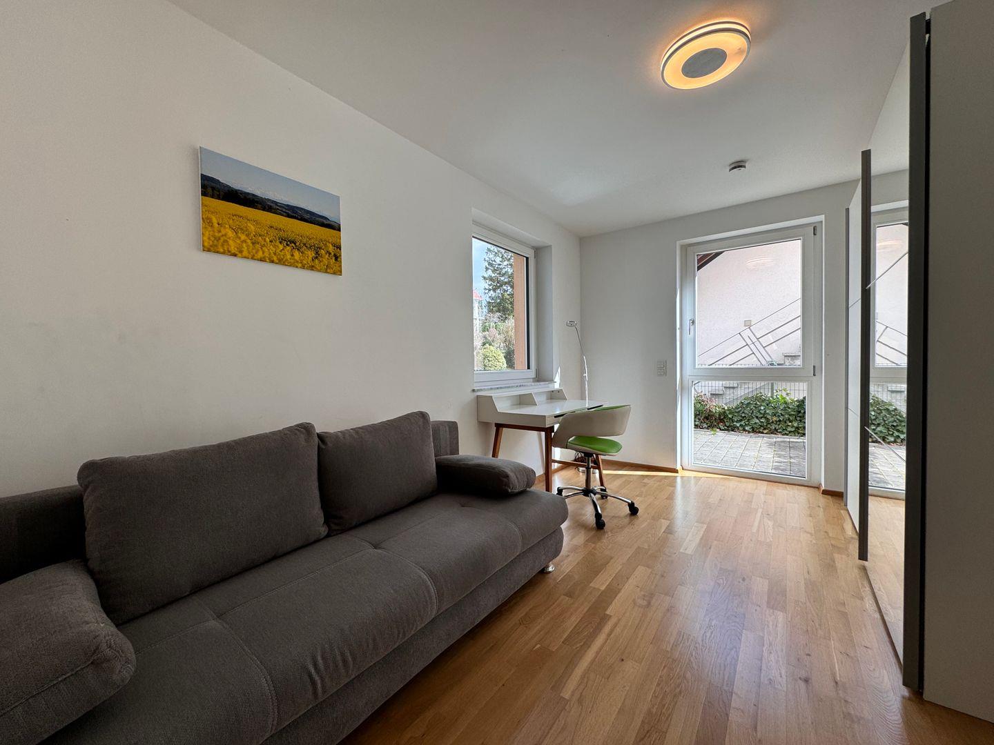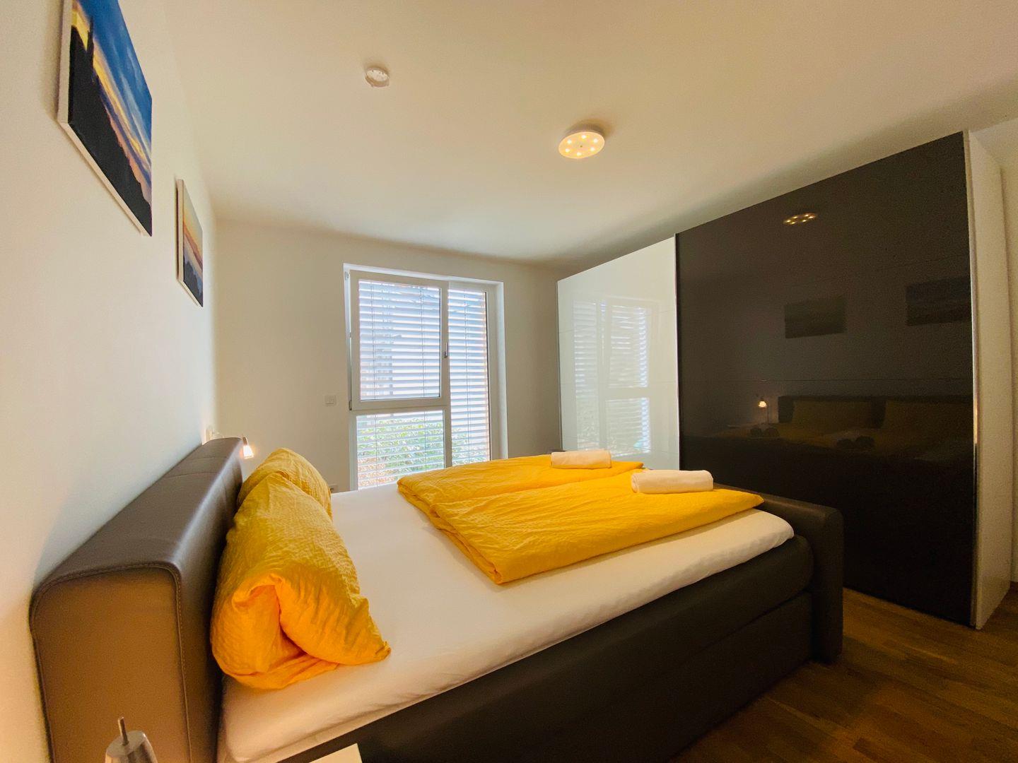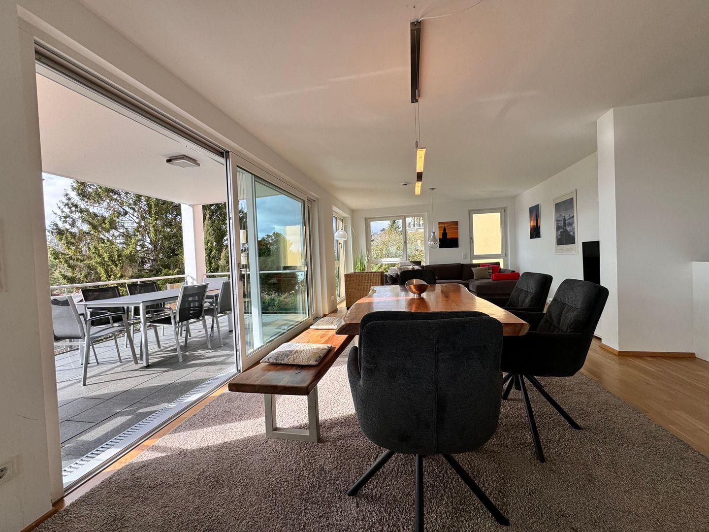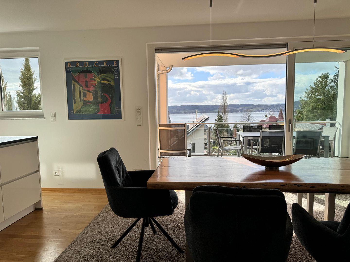 Hochwertige Möbel, moderne Elemente und natürliche Materialien schaffen eine harmonische Wohnatmosphäre. Die Sonnenterrasse ist mit modernen Loungemöbeln ausgestattet und bietet einen exklusiven Ort zum Genießen des Seeblicks. Die Fußbodenheizung in allen Räumen schafft eine behagliche Atmosphäre. Elektrische Rollläden und Sonnenschutz sorgen für eine individuelle Lichtregulierung und Privatsphäre.