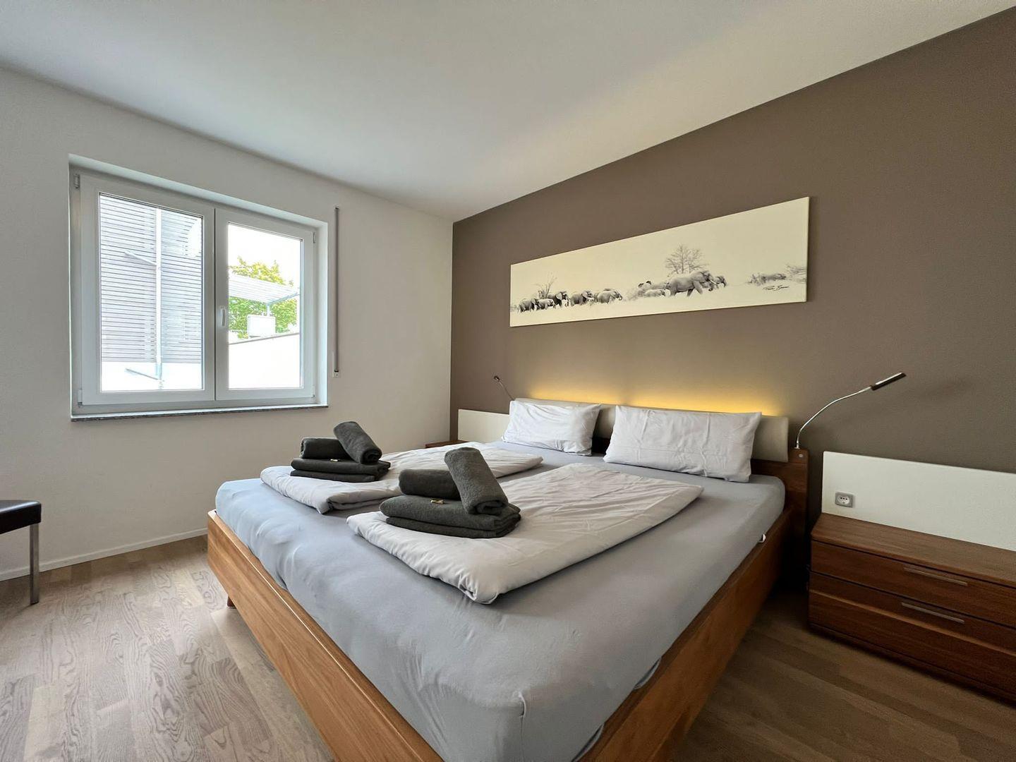 Ankommen, Wohlfühlen und Entspannen: Freuen Sie sich auf eine großzügige Ferienwohnung, die höchste Ansprüche an Behaglichkeit und Komfort erfüllt. Die hochwertig eingerichtete 4-Zimmer Ferienwohnung am Hildegardring bietet Platz für bis zu 6 Personen. Der offene Wohnraum empfängt Sie mit einer eleganten Ledercouch und einem großzügigen Essbereich für bis zu 8 Personen.Die integrierte Küche ist mit hochwertigen Geräten wie Spülmaschine, Einbau-Kaffee-Vollautomat, Backofen und Wein-Kühlschrank ausgestattet. Die möblierte Sonnenterrasse mit Blick ins Grüne lädt zu entspannten Stunden ein. Ein Holzkohle-Grill steht Ihnen zur Verfügung.