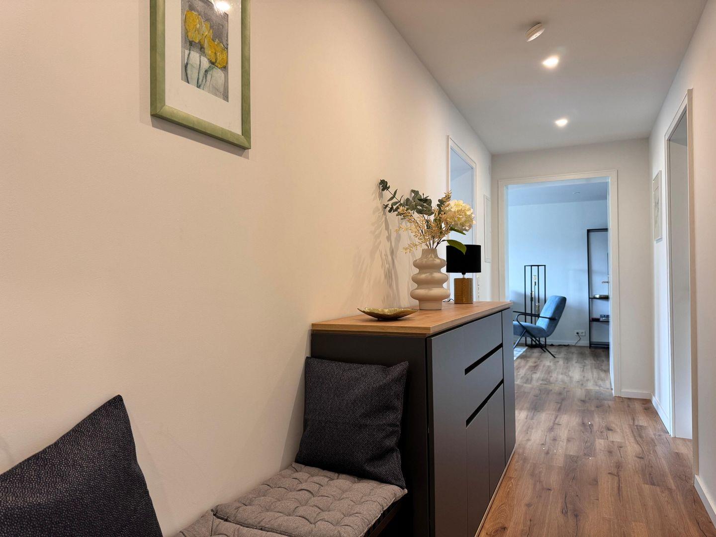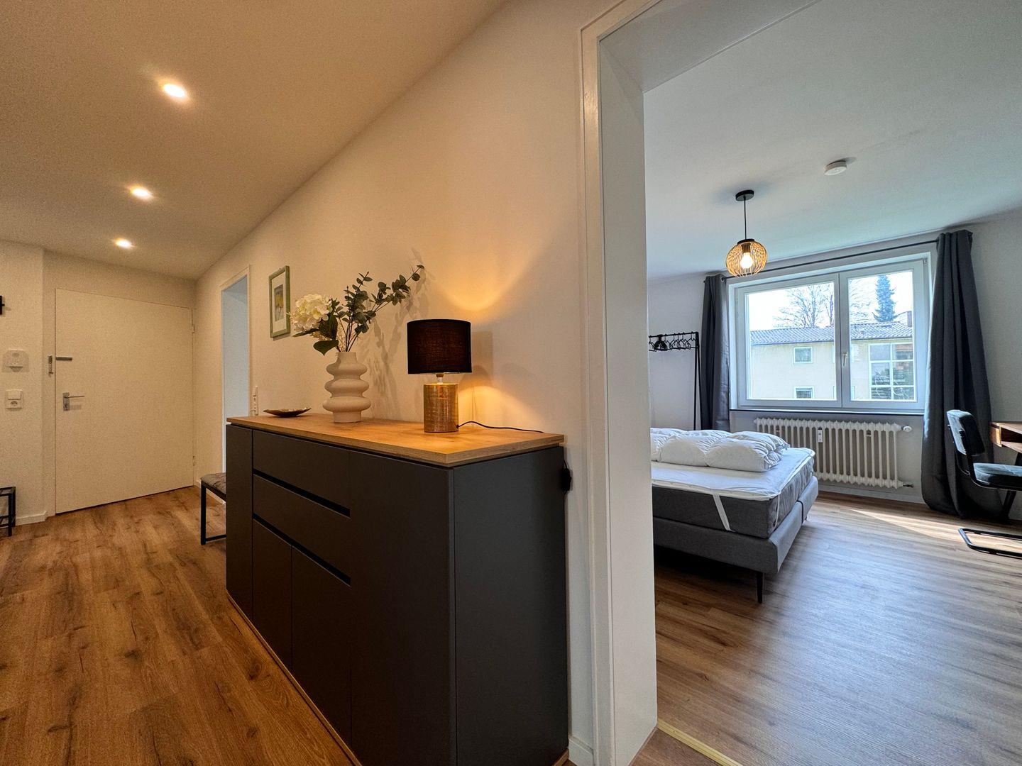 Diese geräumige und 2024 frisch sanierte Unterkunft bietet Platz für bis zu sechs Personen. Mit zwei Schlafzimmern und einer Schlafcouch im Wohnzimmer bietet sie flexible Schlafmöglichkeiten. Kleine Hunde bis 10 Kilo sind willkommen.