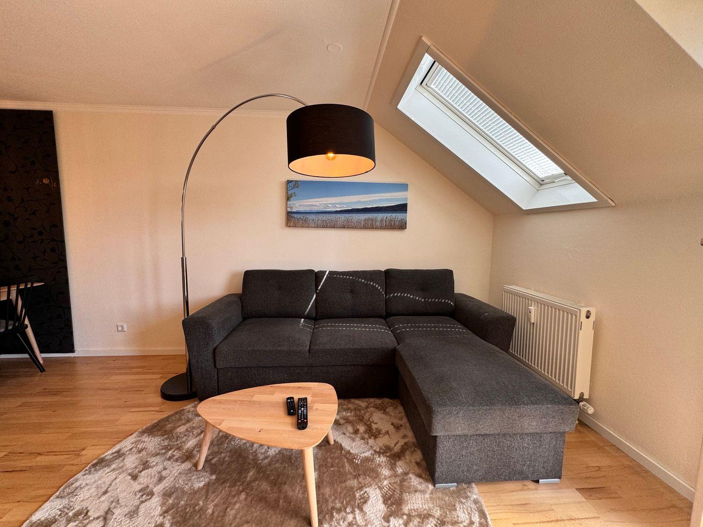 - Helles und einladendes Wohnzimmer mit einer Schlafcouch, die Platz für zwei weitere Gäste (ein Erwachsenen + ein Kind) bietet.
