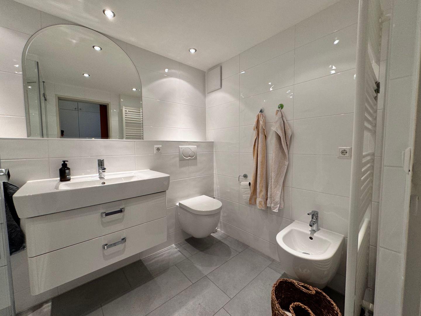 - Sauberes und stilvolles Badezimmer mit Dusche.