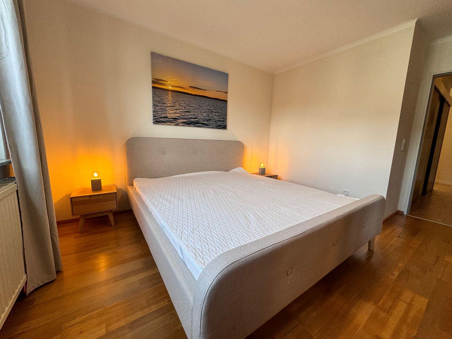 - Gemütliches Schlafzimmer mit einem komfortablen Doppelbett für zwei Personen.