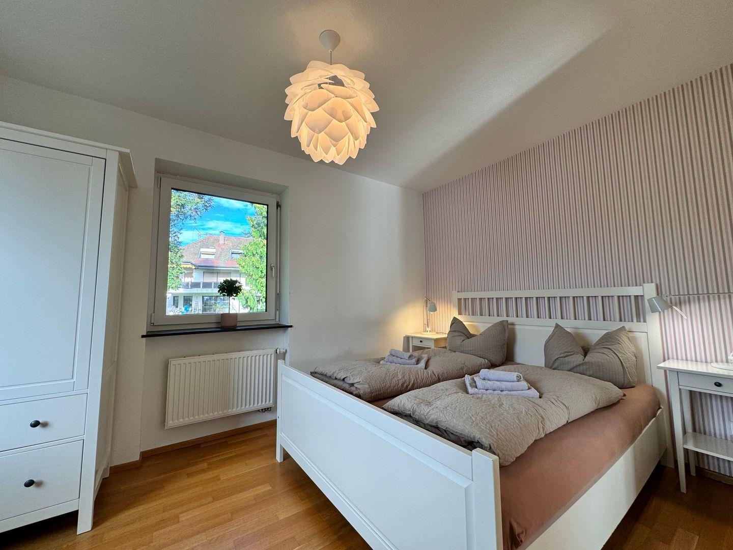 Diese großzügige Ferienwohnung bietet auf 60 m² zwei separate Schlafzimmer, einen Wohn- und Essbereich, eine voll ausgestattete Küche und einen Südbalkon mit wunderschönem Seeblick mit Platz für bis zu vier Personen. Dies ist ideal für Familien oder Freunde, die gemeinsam eine entspannte Auszeit genießen möchten.