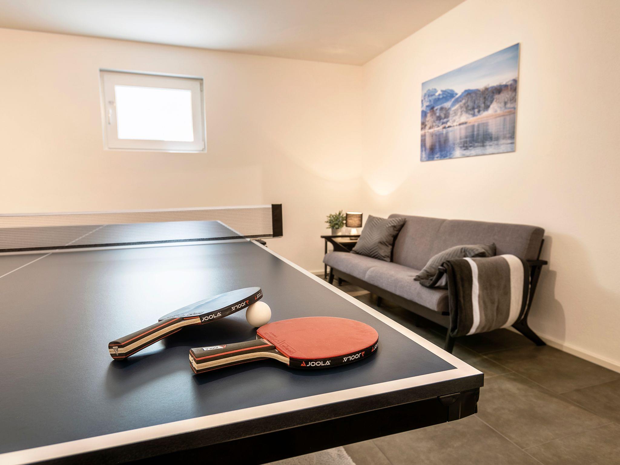 Außerdem bietet Ihnen die Wohnung einige Extras im Untergeschoss. Hier im Keller stehen Ihnen eine Tischtennisplatte, ein Leseraum, eine Waschmaschine und ein Fitnesseck zur Verfügung.