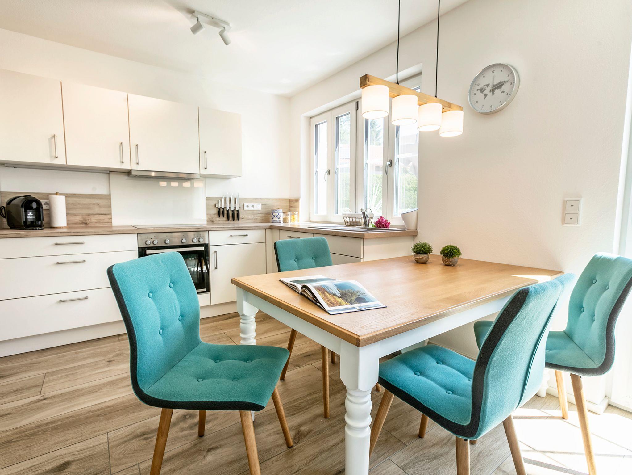 Der schöne Wohn-/Essbereich mit moderner Küche, einem schönen Esstisch und einer gemütlichen Kuschelecke bietet Ihnen alles was Sie für einen schönen Aufenthalt brauchen. Auch vom Wohn-/Essbereich gelangen Sie auf die große Terrasse mit Blick auf den Innenhof und Garten.