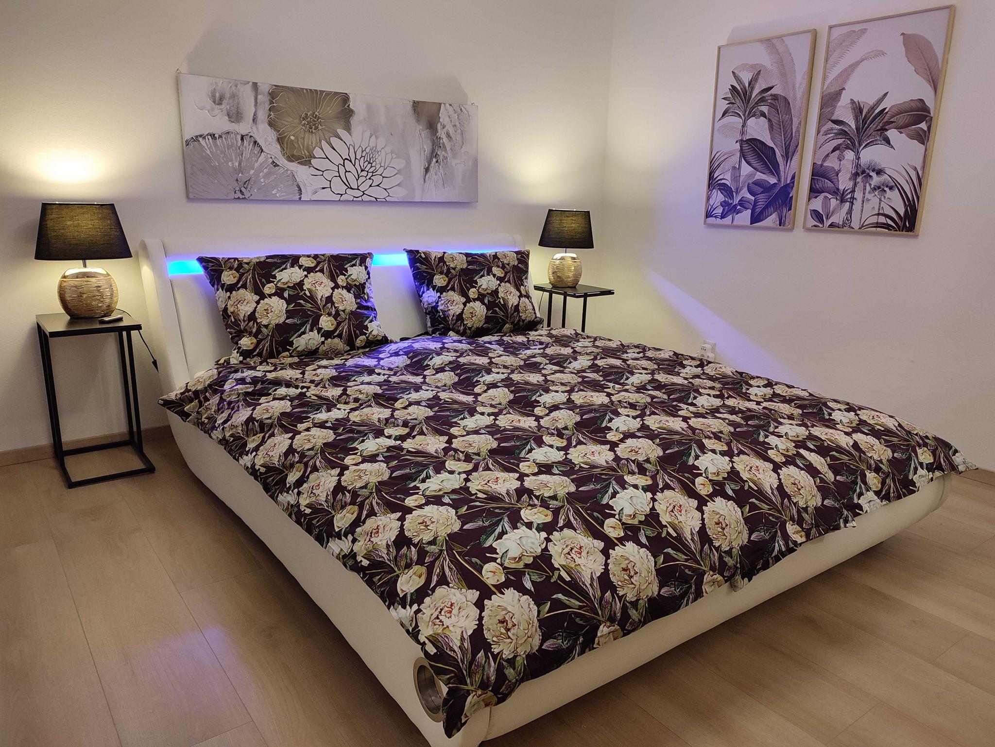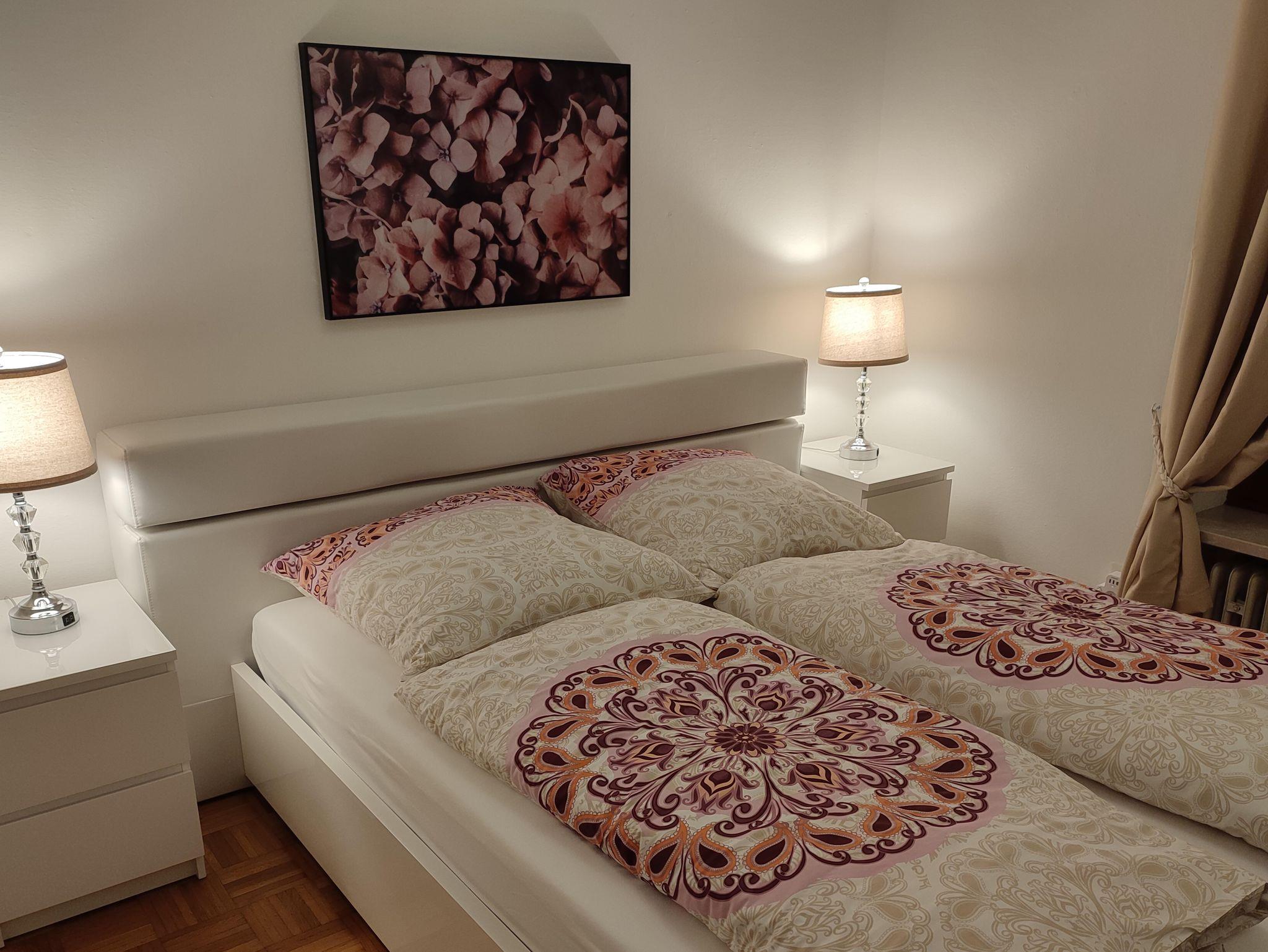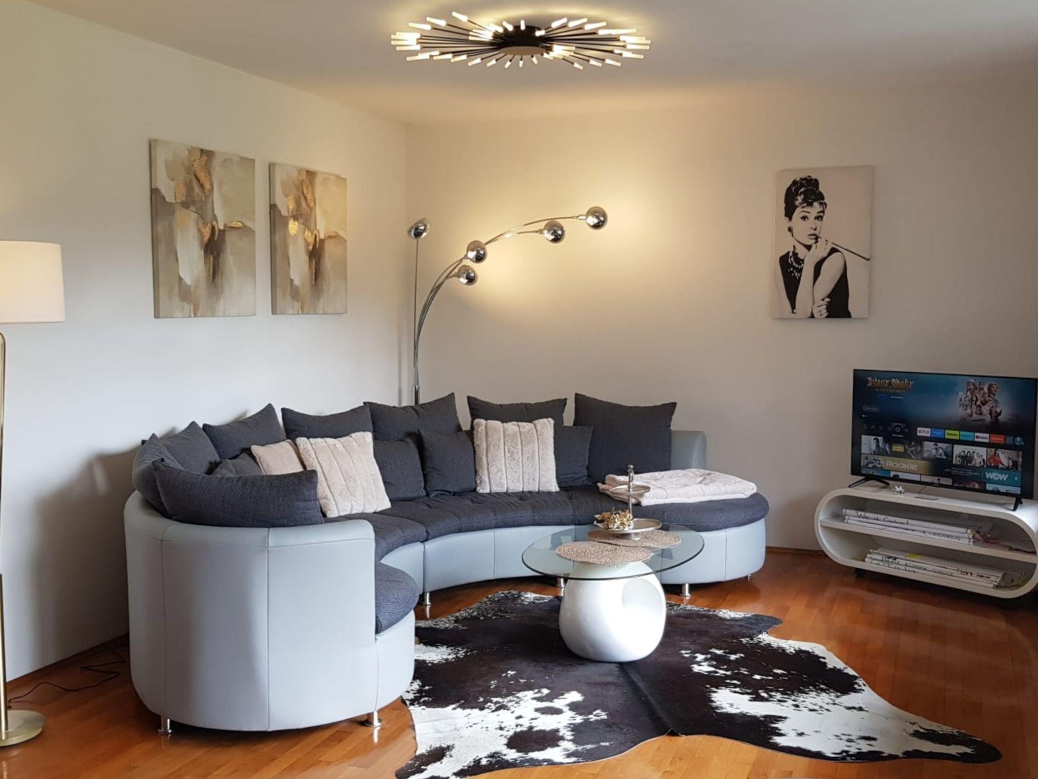 In dieser geräumigen Unterkunft erwartet Sie auf 45 m² 1 Wohnzimmer mit Kamin, sep. Esszimmer in Südausrichtung, 1 Schlafzimmer 18 m² mit franz. Doppelbett 180 x 200 cm mit Berg- und Gartenansicht, 1 Schlafzimmer 12m² mit Doppelbett 160 x 200 cm mit Morgnsonne, 1 Schlafzimmer 10 m² mit Doppelbett 160 x 200 cm mit Abendsonne. Dazu 1 Badezimmer mit einer ebenerdigen Dusche, WC, modernes Waschbecken und 1 sep. Gäste WC. Die komplett ausgestatteten Küche verfügt über ein Kochfeld, Backherd, ein Kühlschrank, ein Geschirrspüler, Kaffeemaschine, Toaster und genügende Ausstattung für 6 Personen! Grillmöglichkeiten stehen ebenfalls zur Verfügung. Freuen Sie sich auch auf eine ganztätig sonnenbeschienene, großzügige Terrasse mit Panorama Berg- und -Gartenblick. Bis zu 6 Personen können auf einem bequemen Rundsofa gemütliche Abende vor dem Flachbild-TV mit Streaming-Diensten verbringen. oder an kühleren Abenden vor dem knisternden Kamin den Urlaubsstag beenden. Kaminholz und Wlan ist kostenlos! Auf Anfrage kann jedem Schlafzimmer ein zusätzlicher Flachbild TV mit Streaming Diensten gegen Gebühr zugestellt werden.