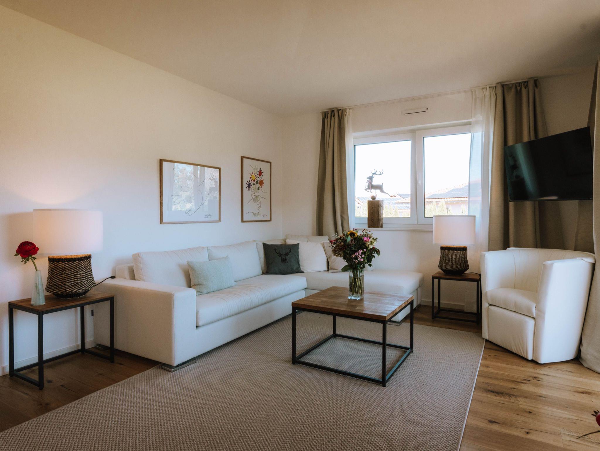 Die wunderschöne neue Ferienwohnung liegt zentral am Ortskern , einfach und schnell zu erreichen .Zur Rückseite des Hauses , direkter Blick in die Berge . Das Haus verfügt über einen Tiefgaragenstellplatz und Parkplätze für E Bikes sind vorhanden , geschützt und verschlossen .