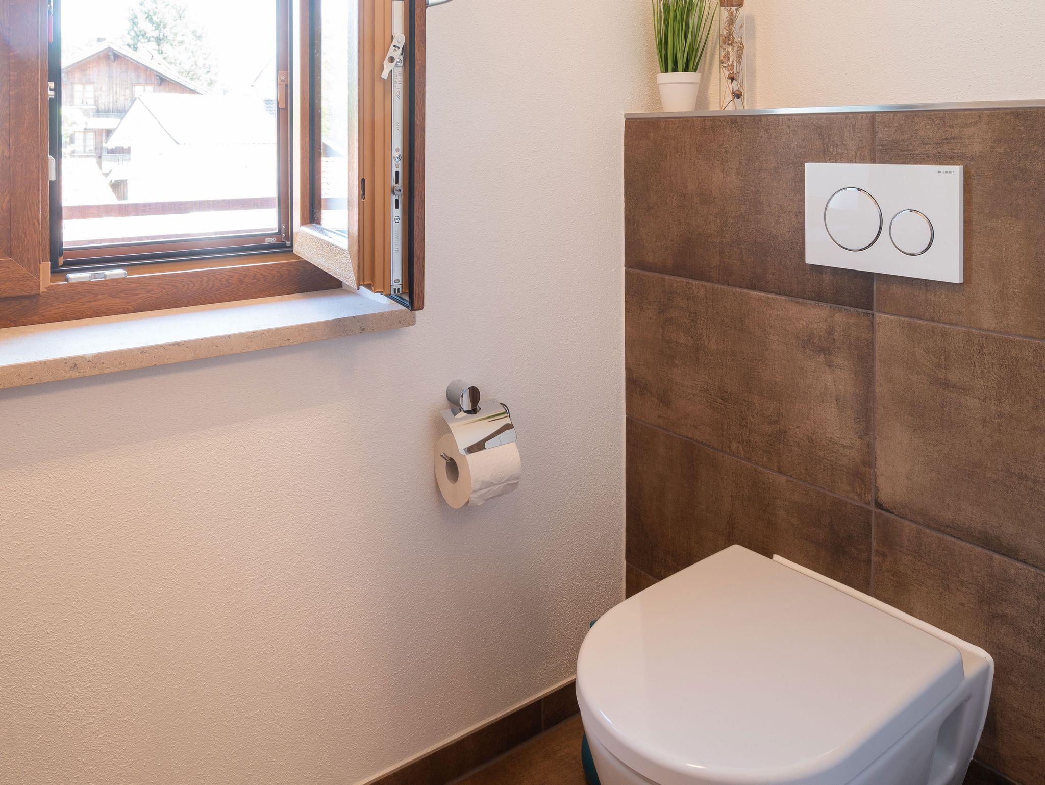 Gäste-WC: Flüssigseife, Gästehandtuch, Insektenschutzgitter, Toilettenpapier.