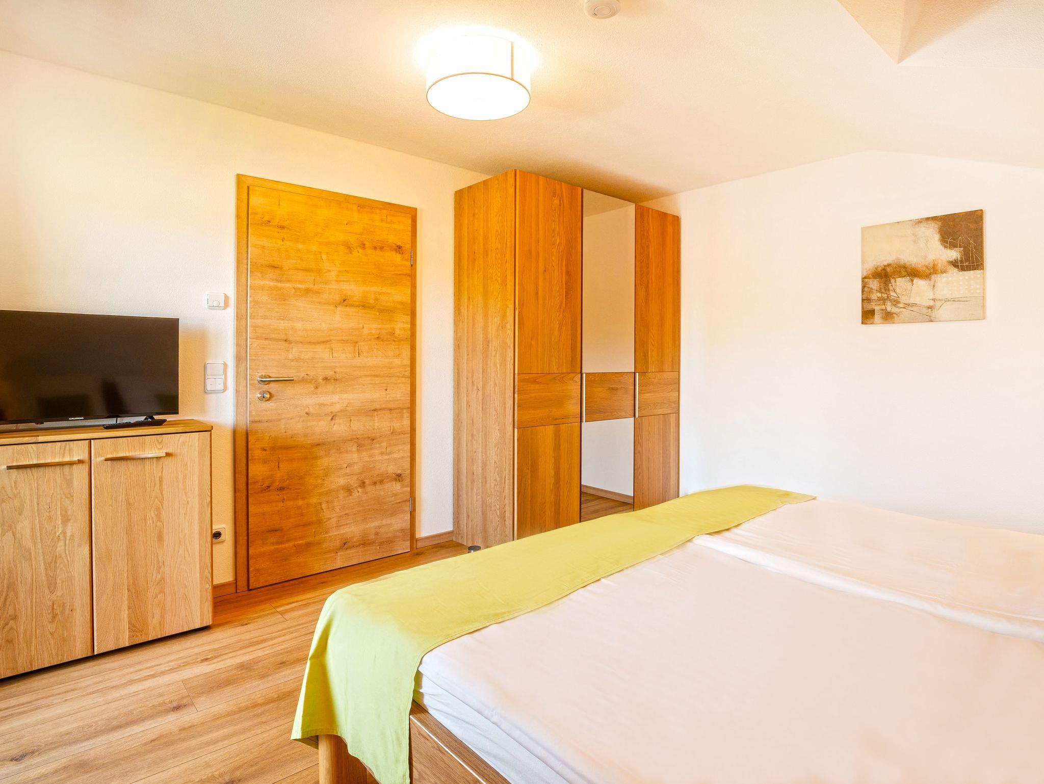 Schlafzimmer Osten: 1 Doppelbett, Kleiderschrank, elektrische Außenrollo, Insektenschutzgitter, Dachflächenfenster mit Verdunklungsrollo, Kommode, Balkon mit Sitzgelegenheit, Rauchmelder, 2. Fernseher.