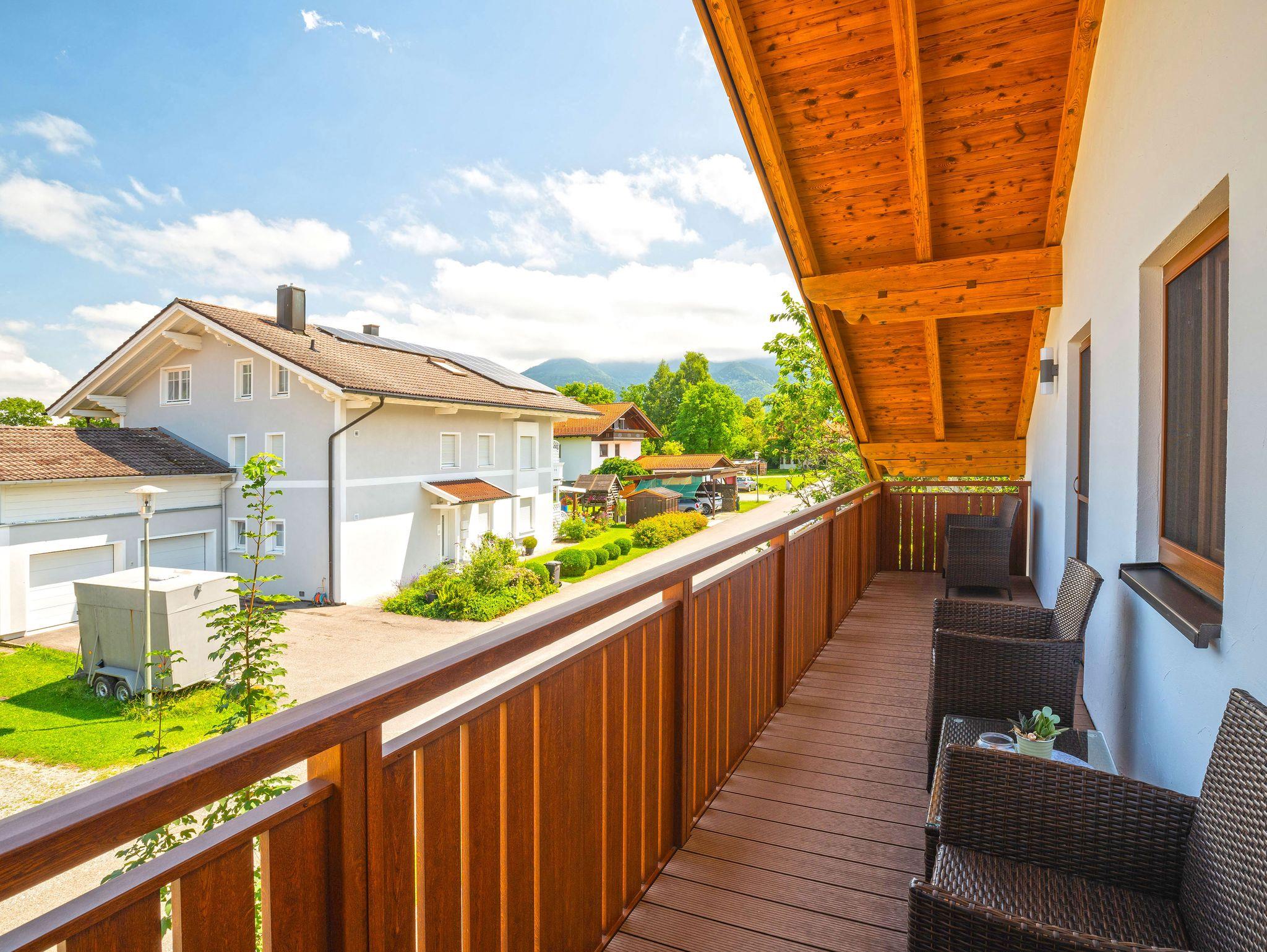 Liebe Gäste, unser Haus befindet sich in einer ruhigen Lage am Ende einer Sackgasse in Übersee am Chiemsee. Die komplett energetisch sanierte Ferienwohnung befindet sich bei uns im 1.OG. Mit einer komfortabel und hochwertigen Ausstattung verfügt sie auch über eine moderne Einrichtung in massiver Wildeiche und 2 großen Balkone auf der Ost- und Westseite. Bei einer Größe von 100 qm gibt es genügend Rückzugsplätze.