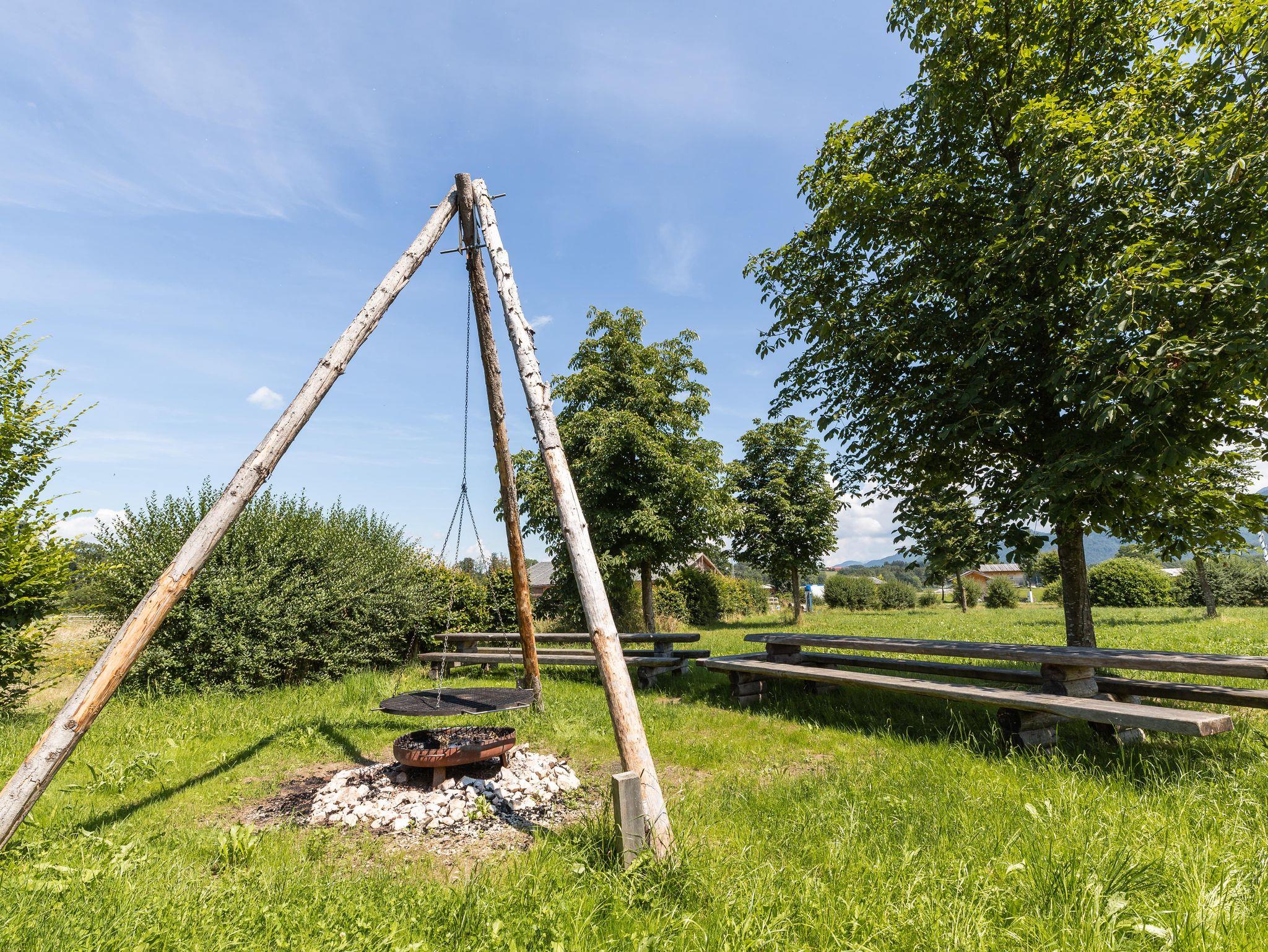Vor dem Almhüttendorf gibt es schöne Grünflächen, die als Liegewiese dienen und große Massivholz-Sitzgruppen, die zum Picknick einladen. Am Abend können wir auf Wunsch Feuerholz zur Verfügung stellen, damit Sie grillen oder Ihren Tag am romantischen Lagerfeuer ausklingen lassen können.