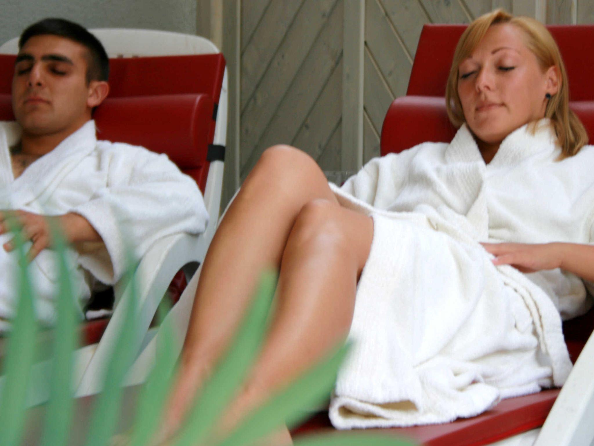 Für Entspannung sorgt unser Wellnessbereich mit großem Pool und Finnischer Sauna mit Außenliegebereich.