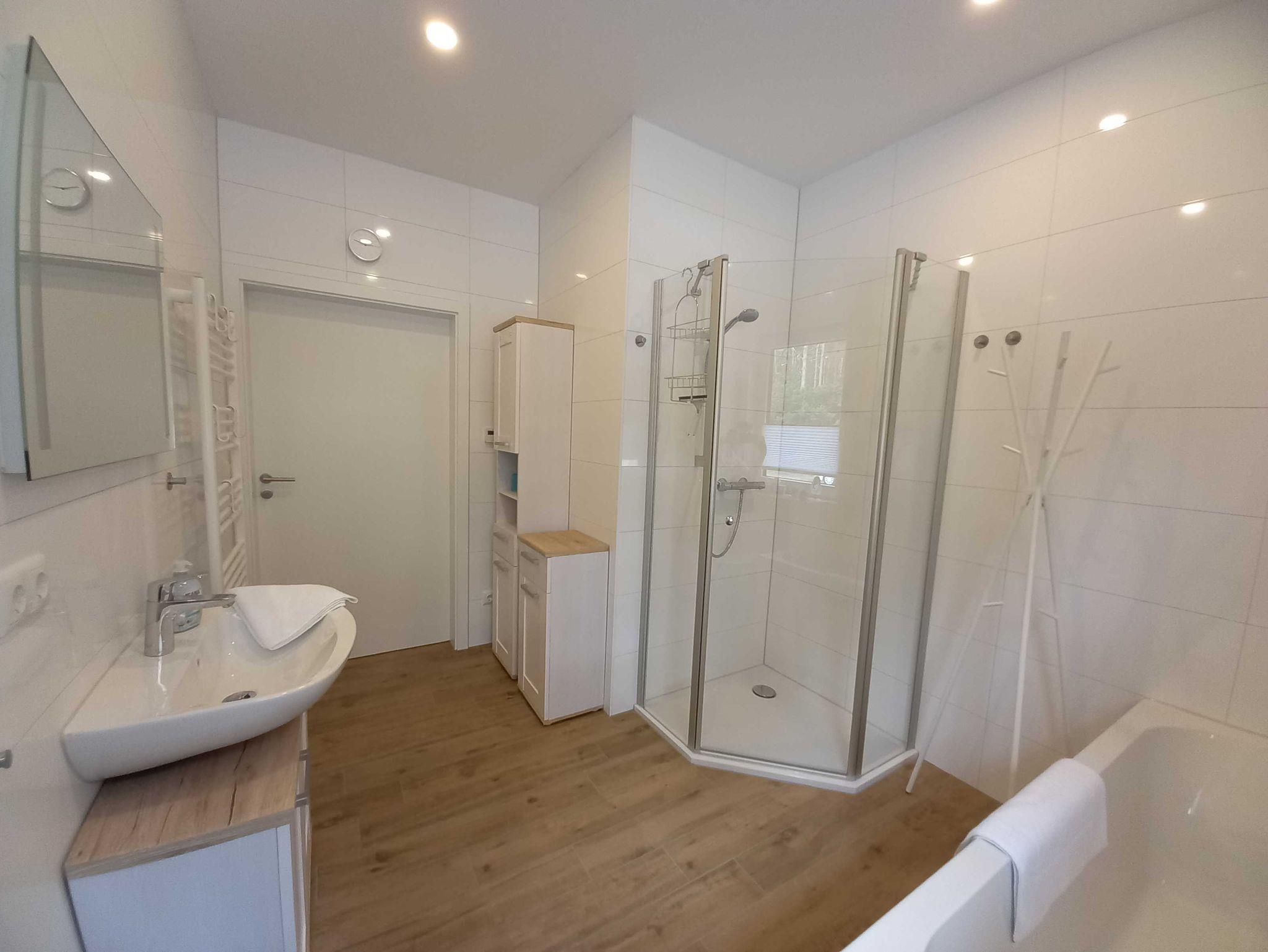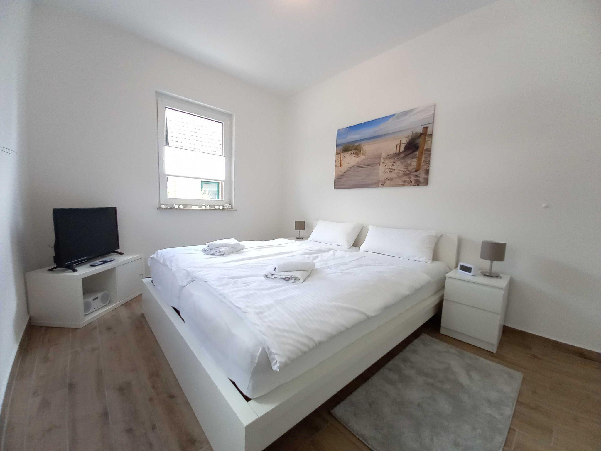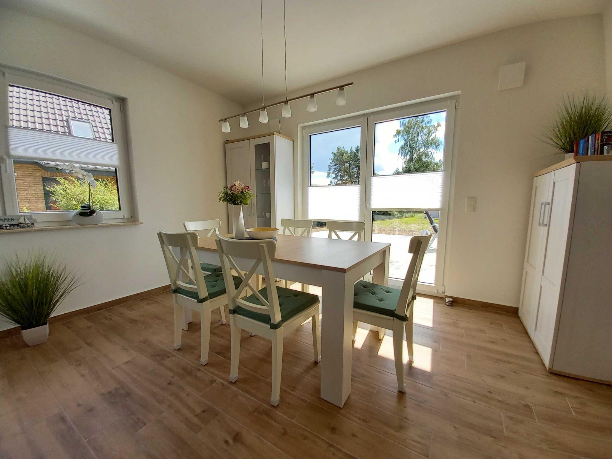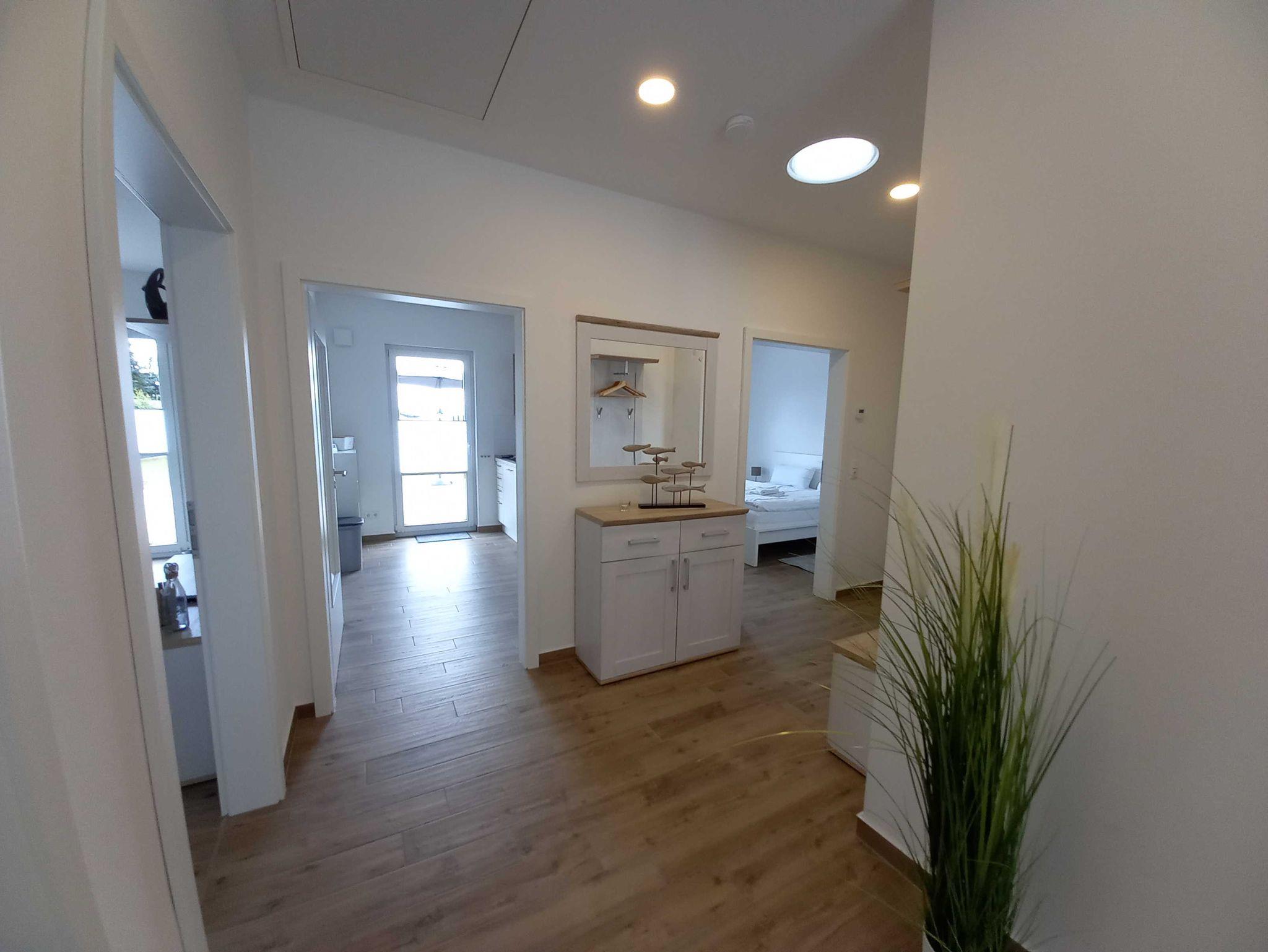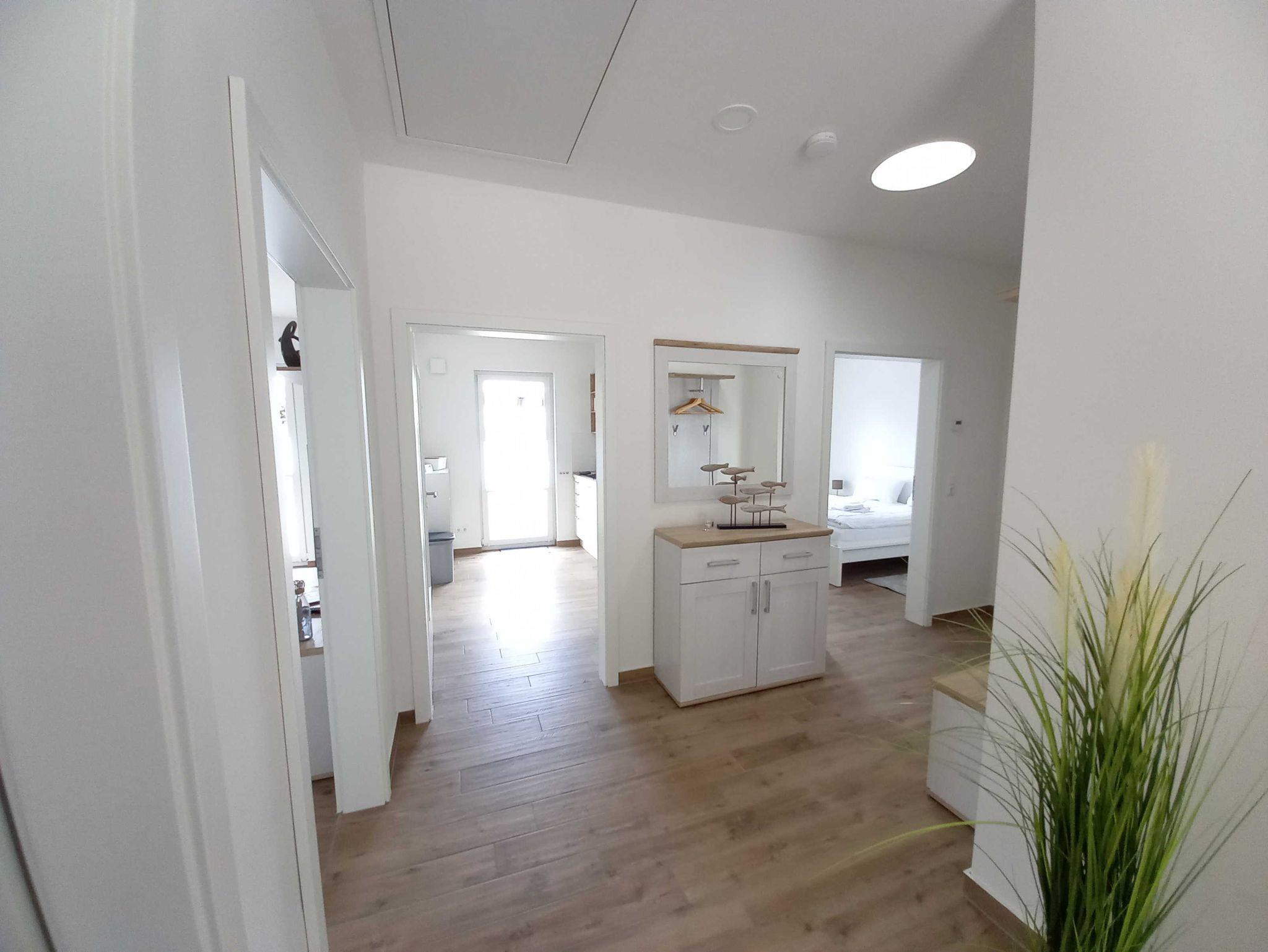 Bis zu 6 Personen können sich auf einen entspannten Urlaub bei uns im Hause freuen. Zwei Schlafzimmer sowie eine Schlafcouch im Wohnzimmer bieten unseren Gästen einen gemütlichen Schlafplatz. Damit auch am Morgen alles reibungslos abläuft, stehen Ihnen zwei Bäder und eine hochwertig ausgestattete Küche zur Verfügung. In dem kleinen Abstellraum finden Sie eine Waschmaschine, die für die Notwäsche zwischendurch Gelegenheit bietet. Alle Räume sind über einen lichtdurchfluteten Tageslichtflur miteinander verbunden.
