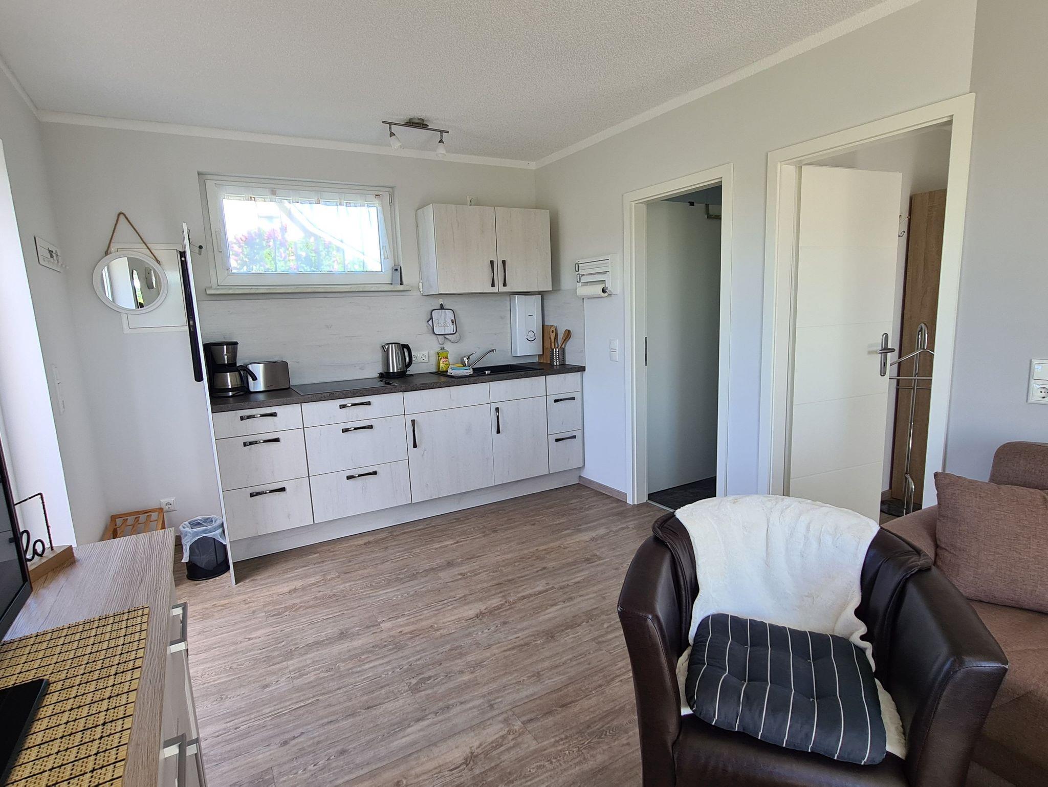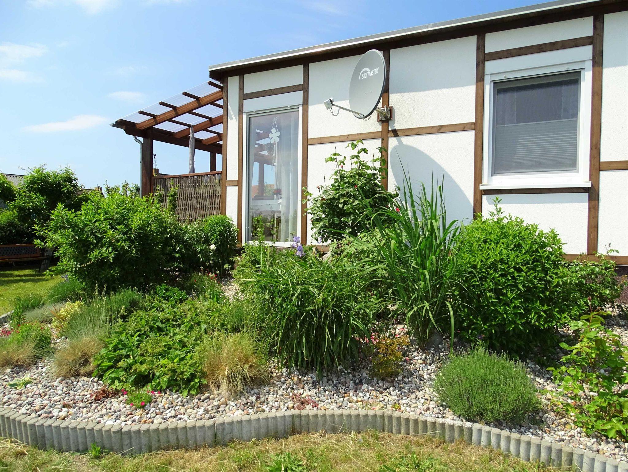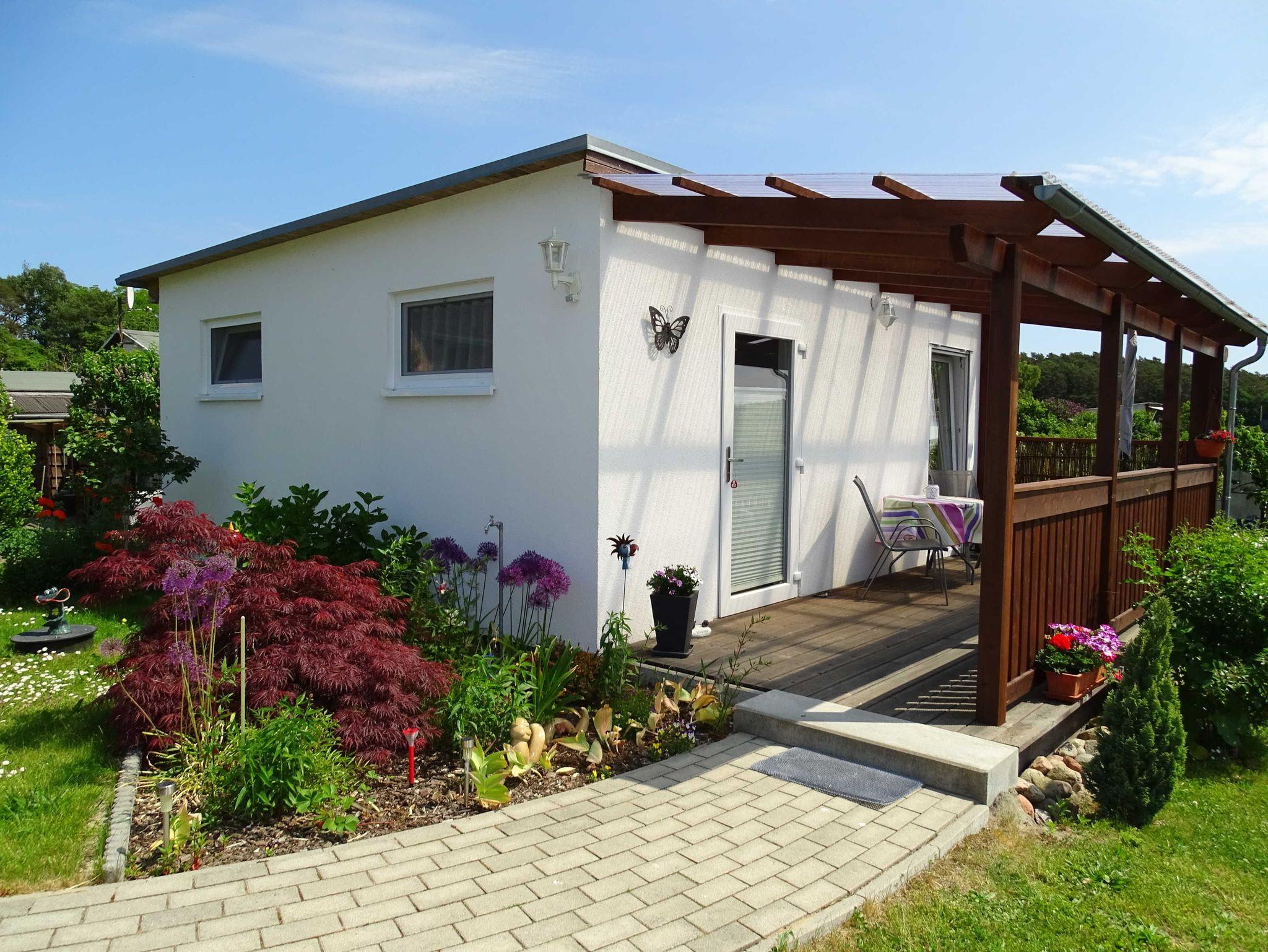 Der 2017 erbaute Bungalow befindet sich auf dem Gartengrundstück des Vermieters.