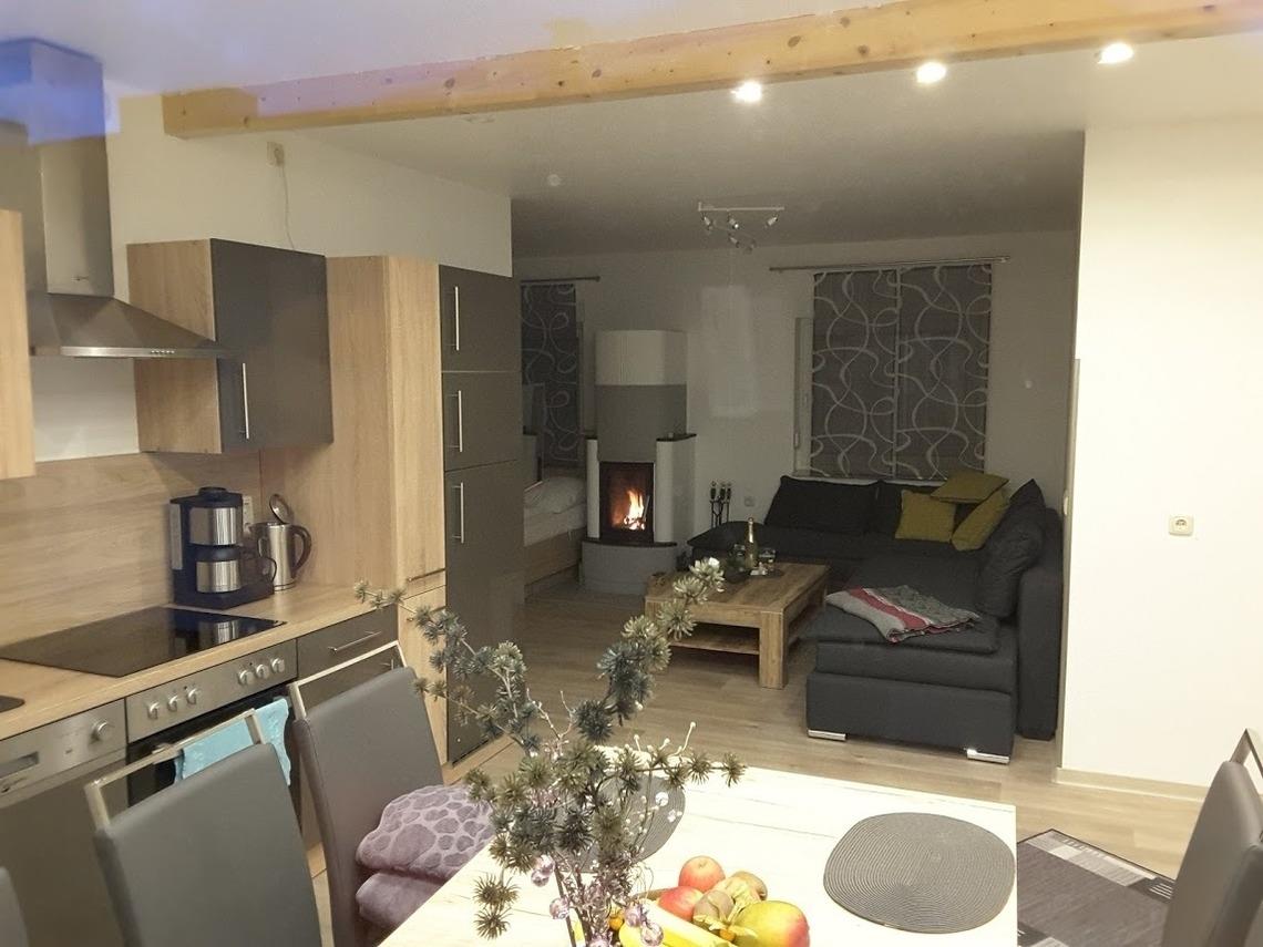 Die Wohnung verfügt über die Grundausstattung mit Kühlschrank, Herd, Kaffeemaschine, Wasserkocher und Sat TV.
