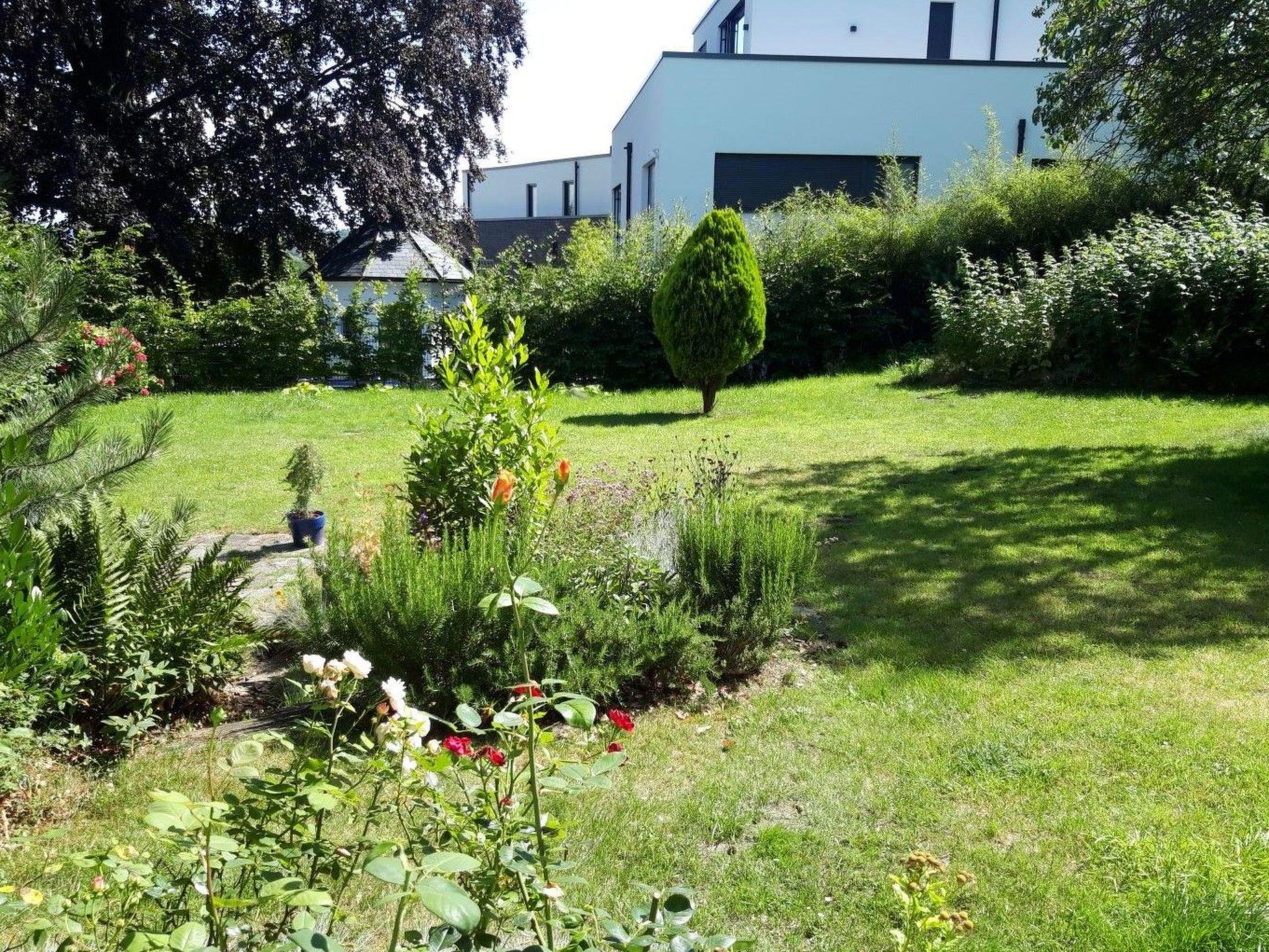 The holiday flat has a large outdoor area with lawn, garden and park. The terrace is equipped with garden furniture and parasol. There is the possibility to barbecue - a charcoal grill is at the disposal of our guests. The property is fenced and therefore also suitable for children.