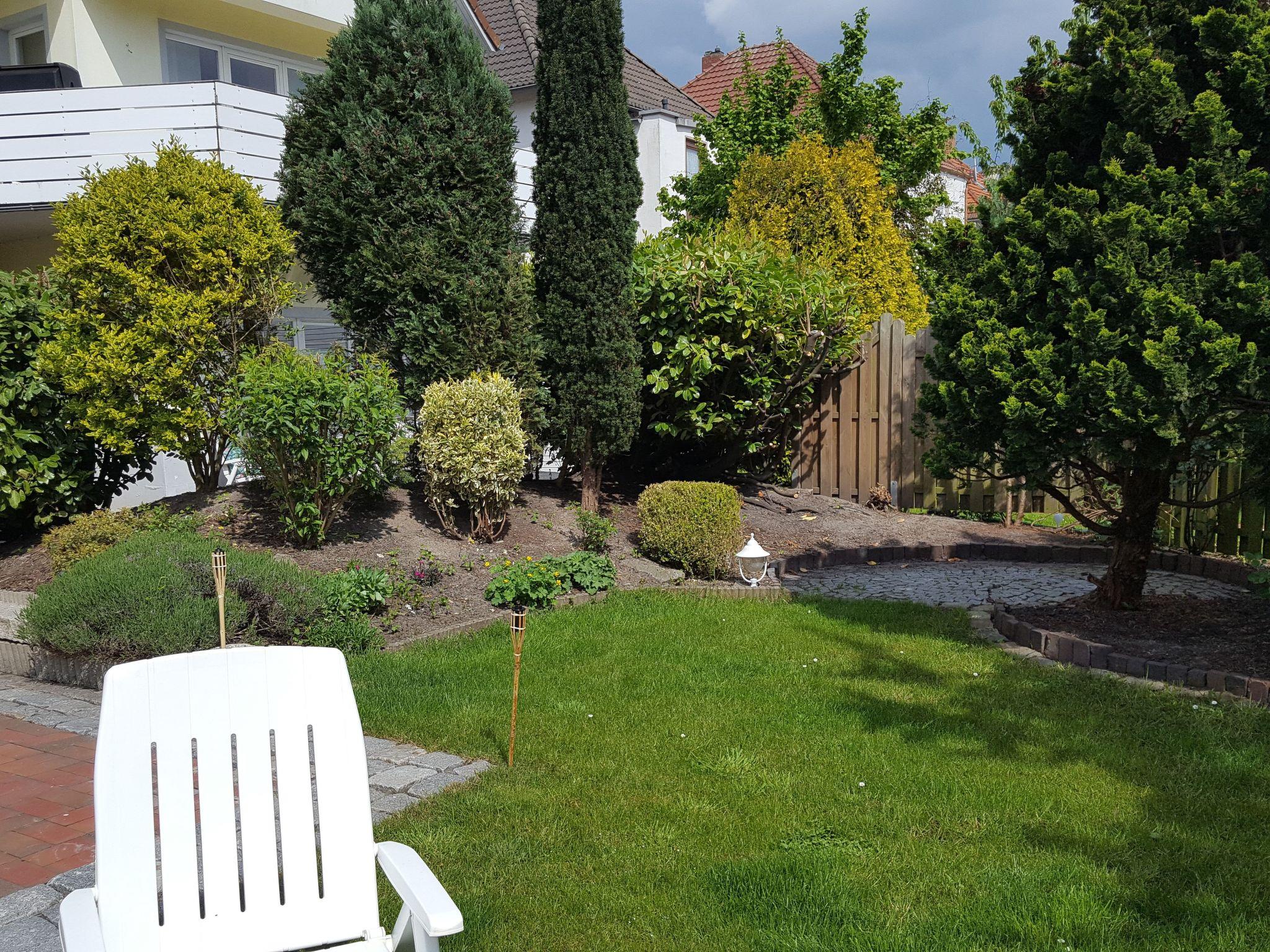 Private holiday flat "Wesergarten", quiet location, very close to the centre, with 450m² garden for private use, Weser beach nearby, 25 minutes by car to the North Sea coast, a few minutes walk to a shopping centre