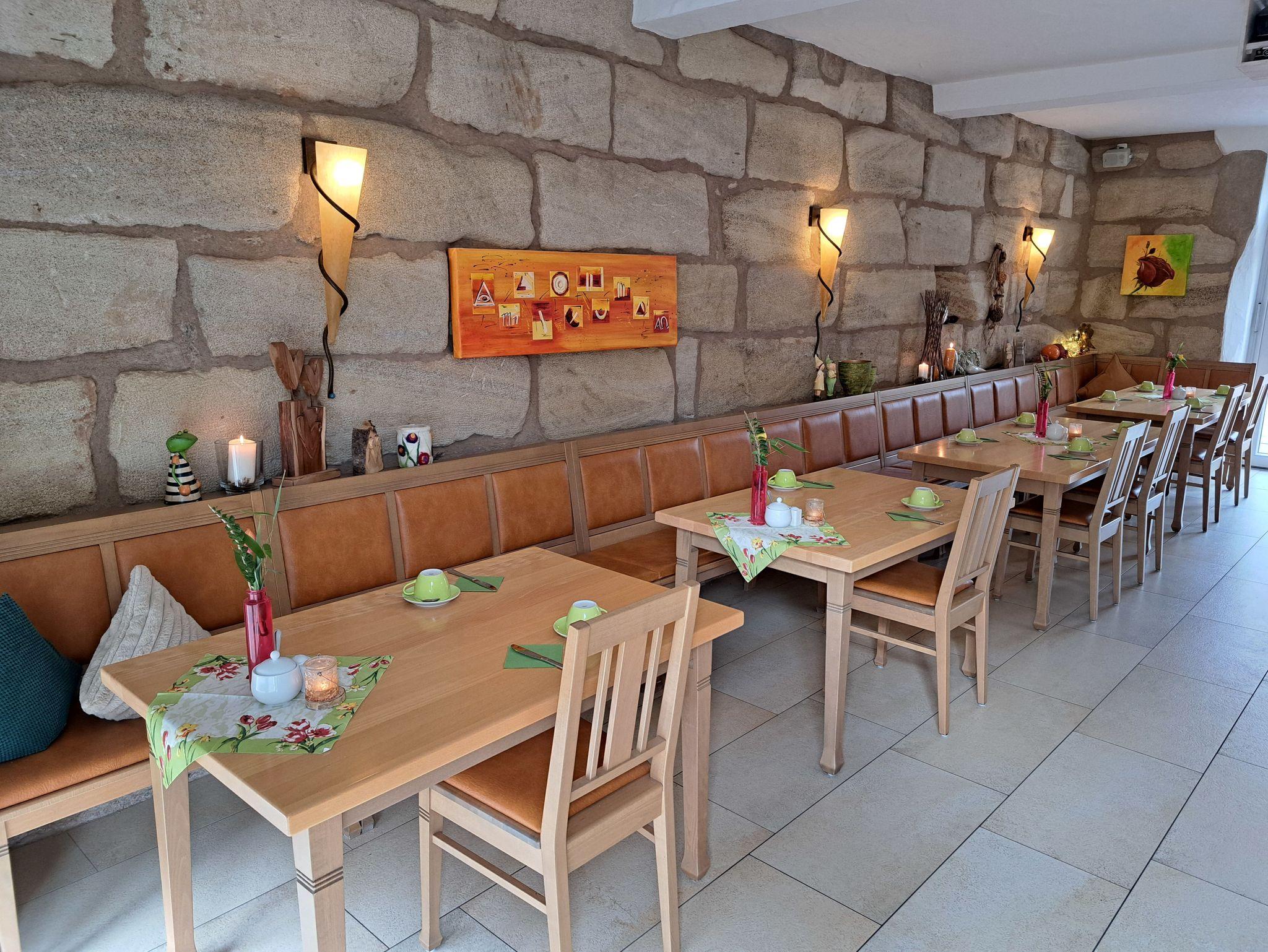 In unserem gemütlichen Frühstücksraum oder auf der sonnigen Terrasse bieten wir Ihnen ein umfangreiches Frühstücksbuffet an, dass keine Wünsche offen lässt.