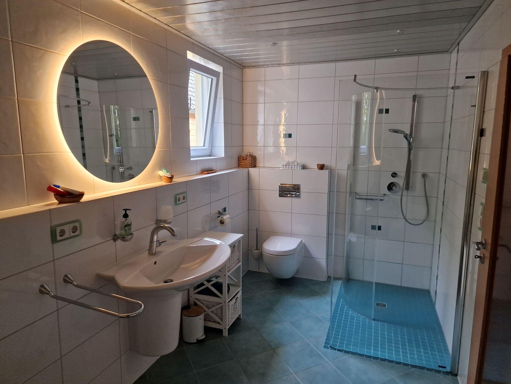 Gemütliche Wohnung mit Extraküche. Schlafzimmer mit Doppelbett und Ausziehcouch. Das großzügige Wohnzimmer mit Esstisch und großer Wohnlandschaft garantiert gelungene Abende und bietet direkten Zugang zur weitläufigen Terasse. Ein kleiner Garten kann gerne zur Erholung genutzt werden. Das Apartment ist mit einem Flachbild-TV sowie einem eigenen Bad mit großer Badewanne und begehbarer Dusche und einem Haartrockner und kostenlosen Pflegeprodukten ausgestattet. Markt Absberg bietet Einkaufsmöglichkeiten im Dorfladen, im regionalen Bäcker sowie Metzger an.