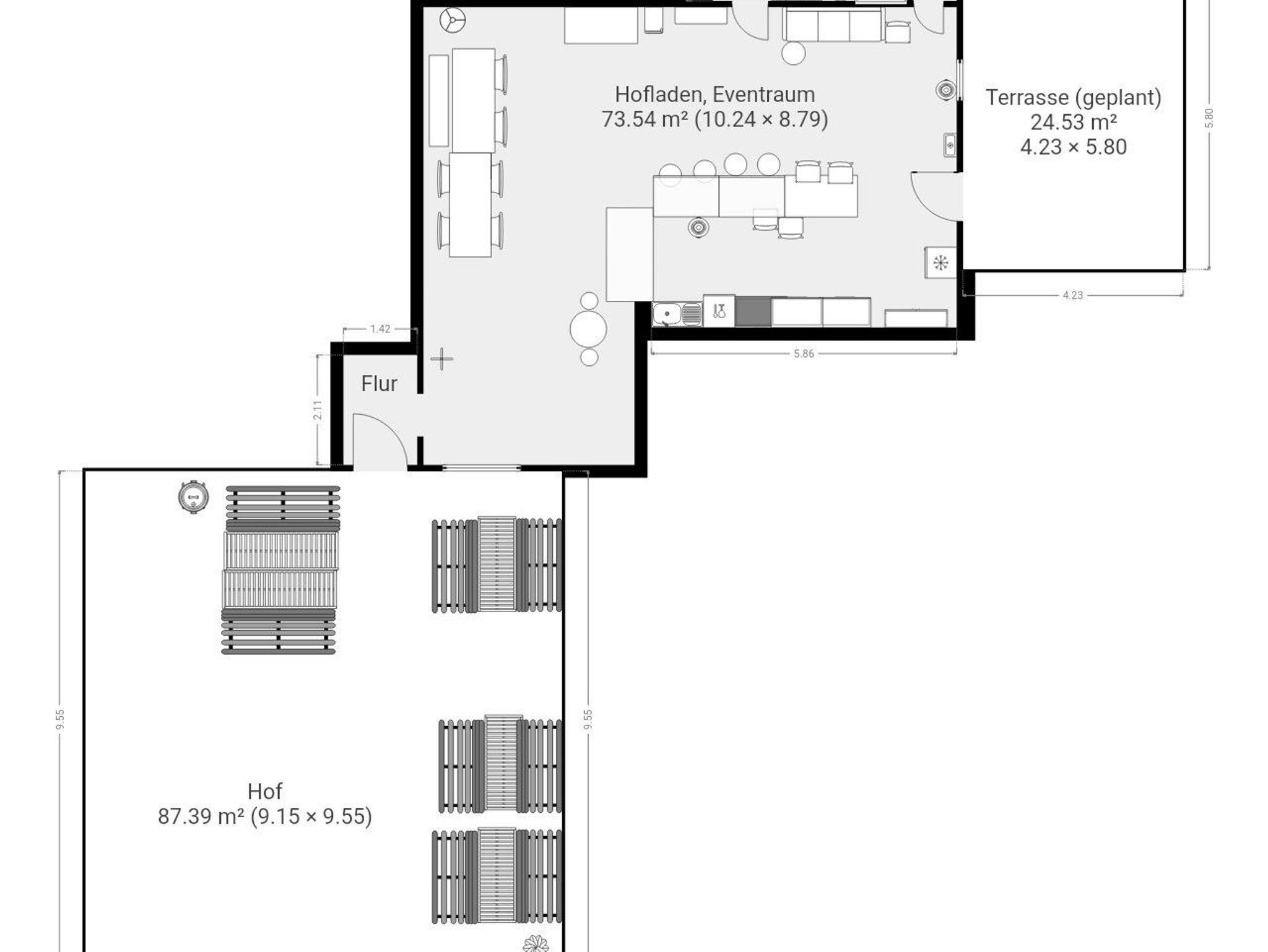 • Hofladen kann auch als Eventraum genutzt (gemietet) werden