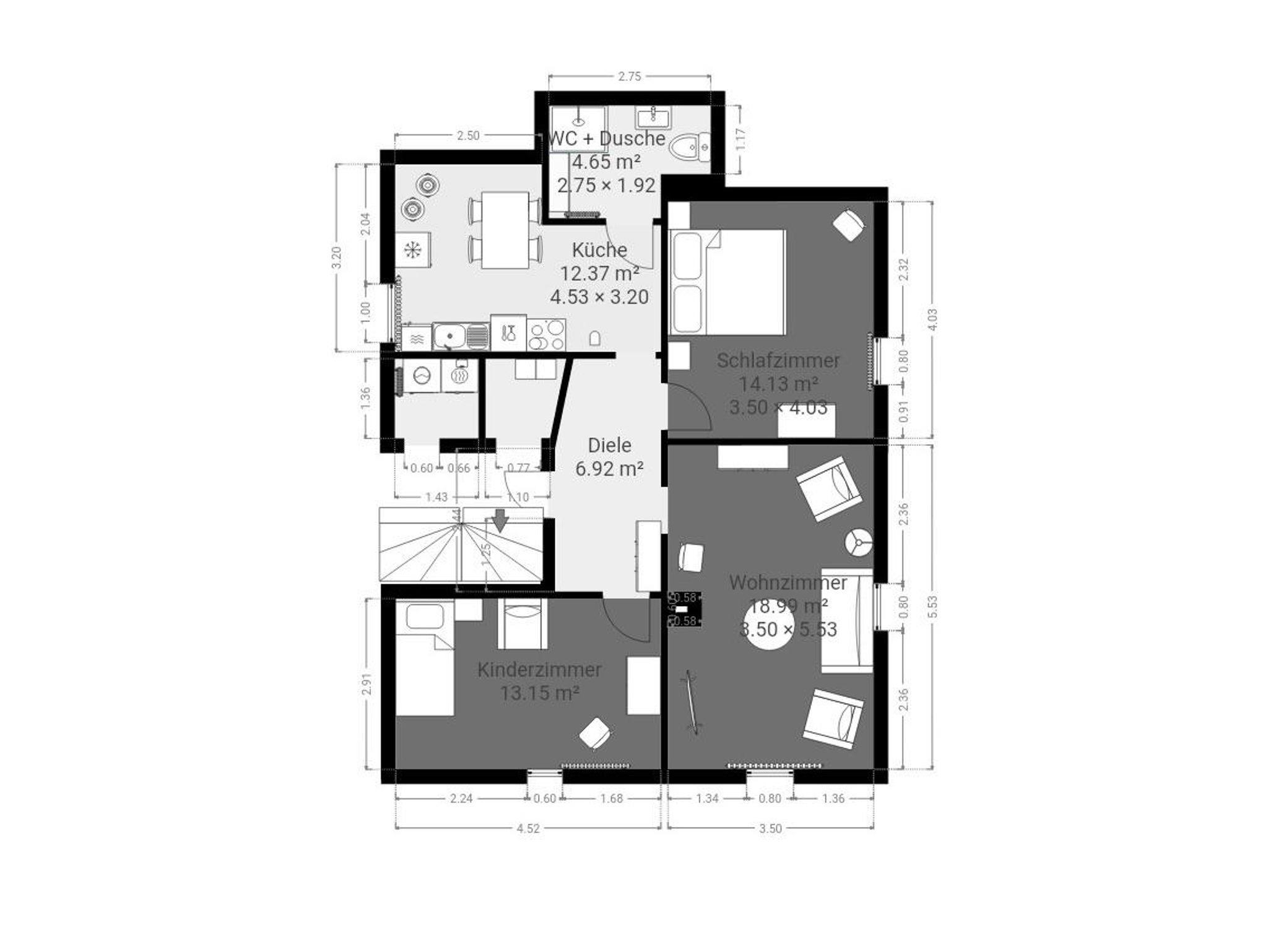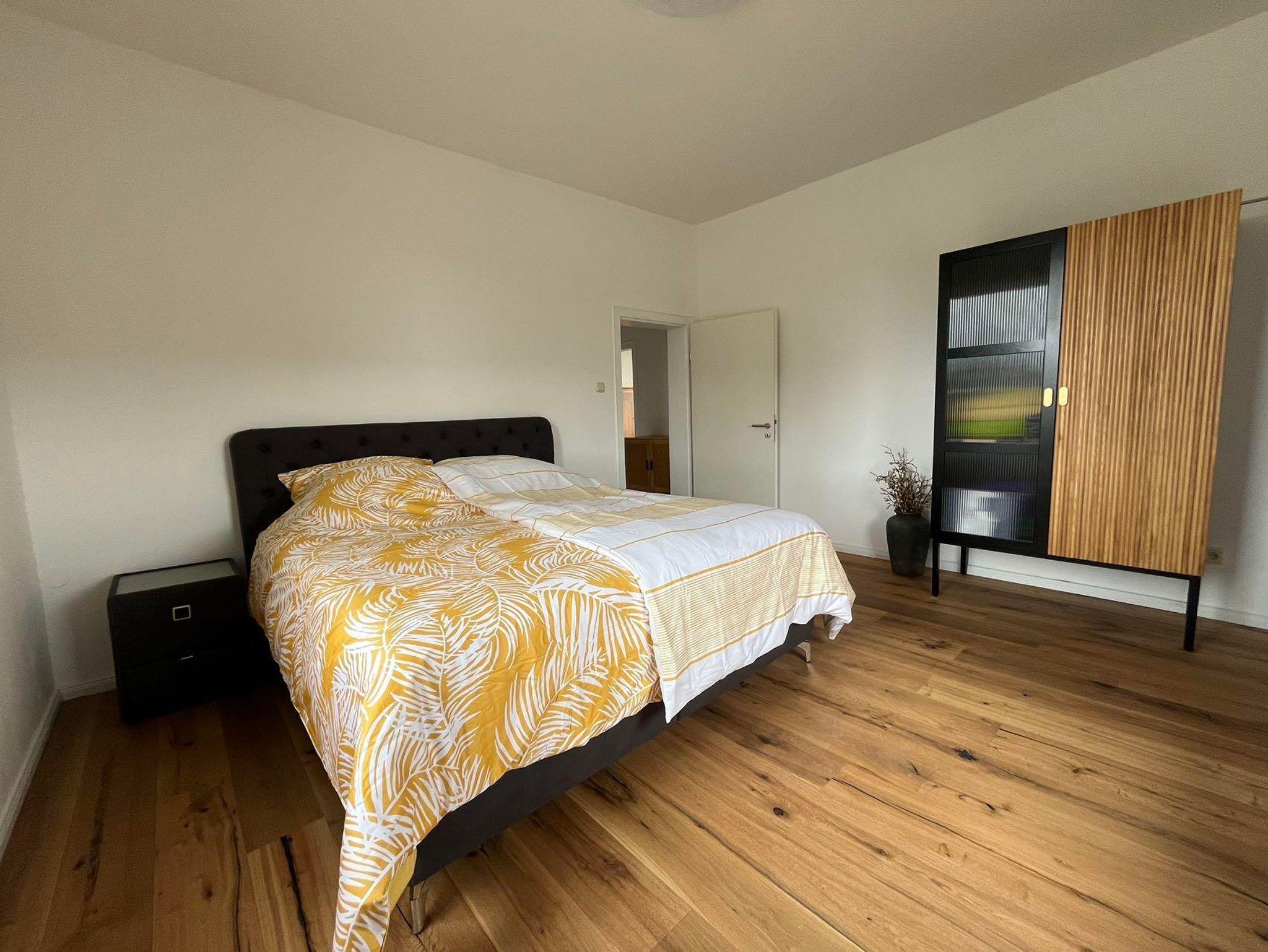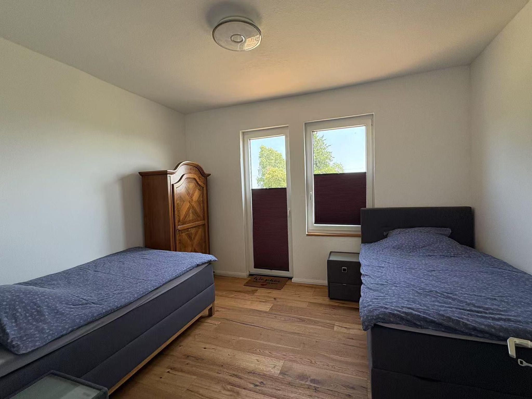 Unsere Ferienwohnung im Erdgeschoss. Die größte der drei Wohnungen (90qm). Ein großzügiges Wohnzimmer (Ausziehsofa) und zwei Schlafzimmer (Elternschlafzimmer mit großem Doppelbett und ein Kinderschlafzimmer mit einem Einzelbett und einem Ausziehsofa) bieten bis zu 5 erwachsenen Personen ausreichend Platz für einen erholsamen Urlaub. Gemütlich kann man den Abend mit der ganzen Familie vor dem 55 Zoll großen TV ausklingen lassen.
