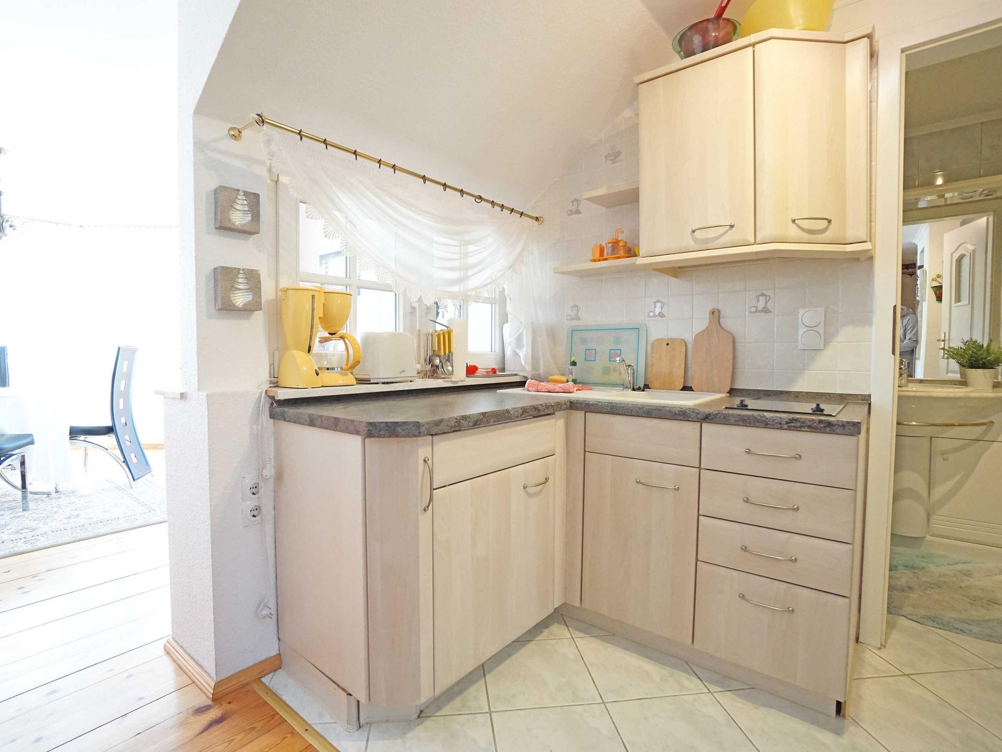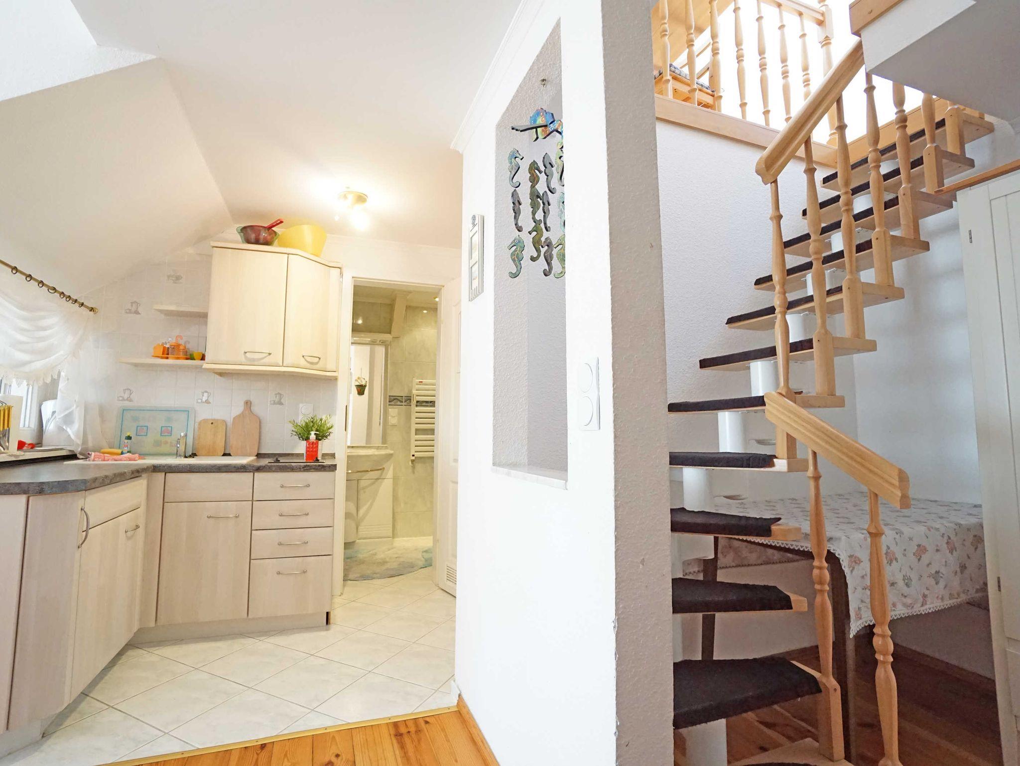 Die gemütlich eingerichtete, helle 2-Zimmer-Maisonettewohnung (62m²) befindet sich im zweiten Obergeschoss des Hauses. Die Nichtraucherwohnung verfügt über ein Wohn- und Esszimmer mit großem Esstisch, Schlafcouch, Flachbildfernseher und offener Küchenzeile (Kochmodul, Kühlschrank mit Gefrierfach). Über eine kleine, relativ steile Treppe erreichen Sie das Schlafzimmer, welches mit einem Doppelbett (140x200cm) und einem Einzelbett ausgestattet ist. Ein geräumiger, sonniger Südbalkon rundet dieses schöne Appartement ab. Ein Duschbad ist vorhanden.
