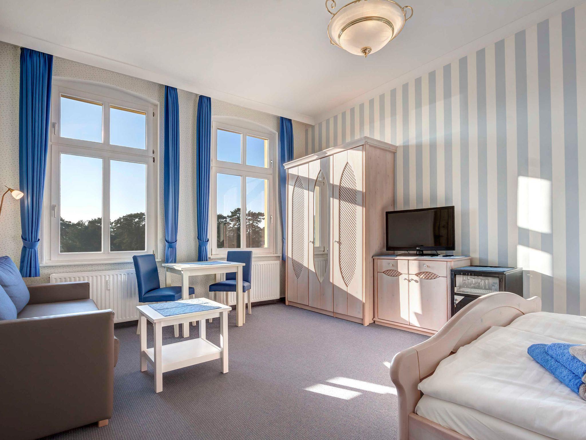 Das liebevoll von Familienhand geführte ***Hotel direkt an Ahlbecks Strandpromenade steht seinen Gästen seit 1999 zur Verfügung, Das Gebäude ist mit erheblichem Aufwand renoviert worden, und somit können wir unseren Gästen nun 18 Hotelzimmer verschiedener Kategorien anbieten, die modernen Ansprüchen voll gerecht werden, doch weiterhin das Flair der Wilhelminischen Epoche vermitteln. Weitere Renovierungen finden nahezu jeden Winter statt. Eine Zwischenreinigung der Zimmer erfolgt täglich außer samstags. Alle Zimmer sind auch zur Einzelnutzung buchbar. Zusätzliche Personen können in den meisten Kategorien dazugebucht werden (Aufbettungen). Kinder sind ab 6 Jahren herzlich willkommen. Eine Zimmerstornierung ist bis 15 Tage vor Anreise kostenfrei möglich, danach berechnen wir 80% der Gesamtsumme als Stornogebühr. Bei Nichtanreise berechnen wir 100%. Diese Regelung gilt nicht, wenn Sie eine nicht stornierbare Rate gebucht haben. In dem Fall ist zu jeder Zeit der volle Buchungsbetrag zu zahlen.
