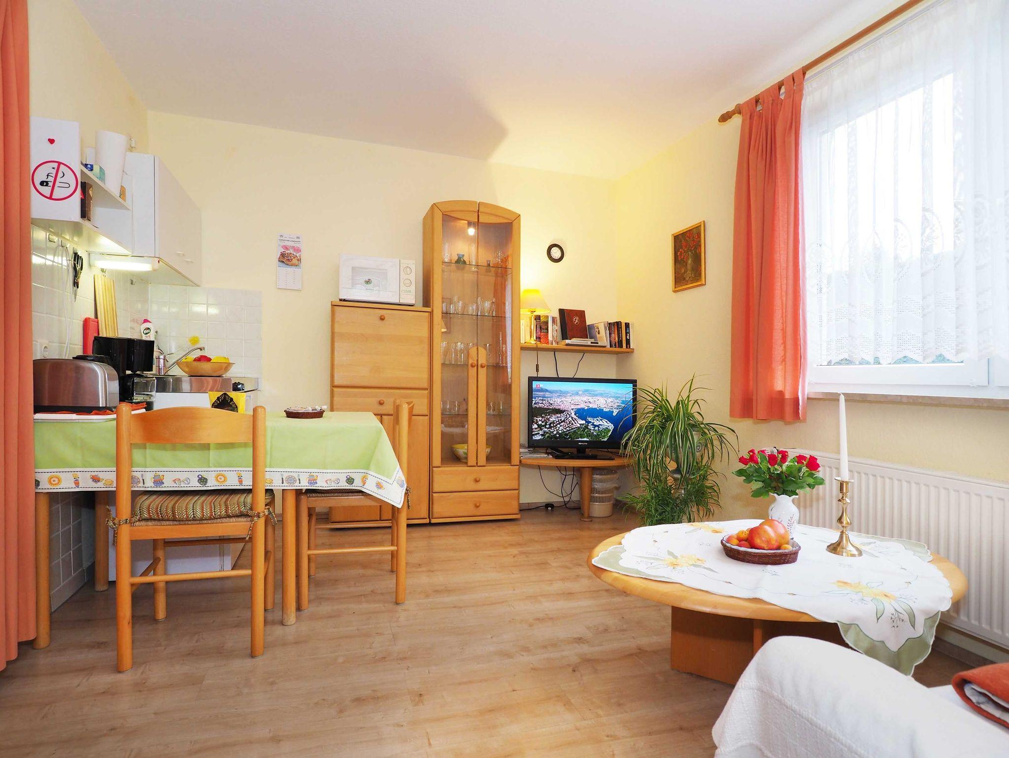In dieser Ferienwohnung finden 2 Personen eine Unterkunft. Die Wohnung ist mit Flachbild- TV & Radio ausgestattet. Sie ist gemütlich eingerichtet. Das Bad verfügt über Dusche/WC und Fön. Die Küche ist komplett ausgestattet, so dass Sie sich auch selbst verpflegen können. Der Schlafbereich ist optisch vom Wohnbereich getrennt und ist auch mit einem Flachbild-TV ausgestattet. Ebenfalls steht Ihnen W-LAN kostenfrei zur Verfügung. Eine Waschmaschine kann gegen eine Gebühr in Höhe von 4,00 Euro pro Waschgang (inklusive Waschmittel) genutzt werden. Die Benutzung des Trockners beträgt 3,00 Euro.