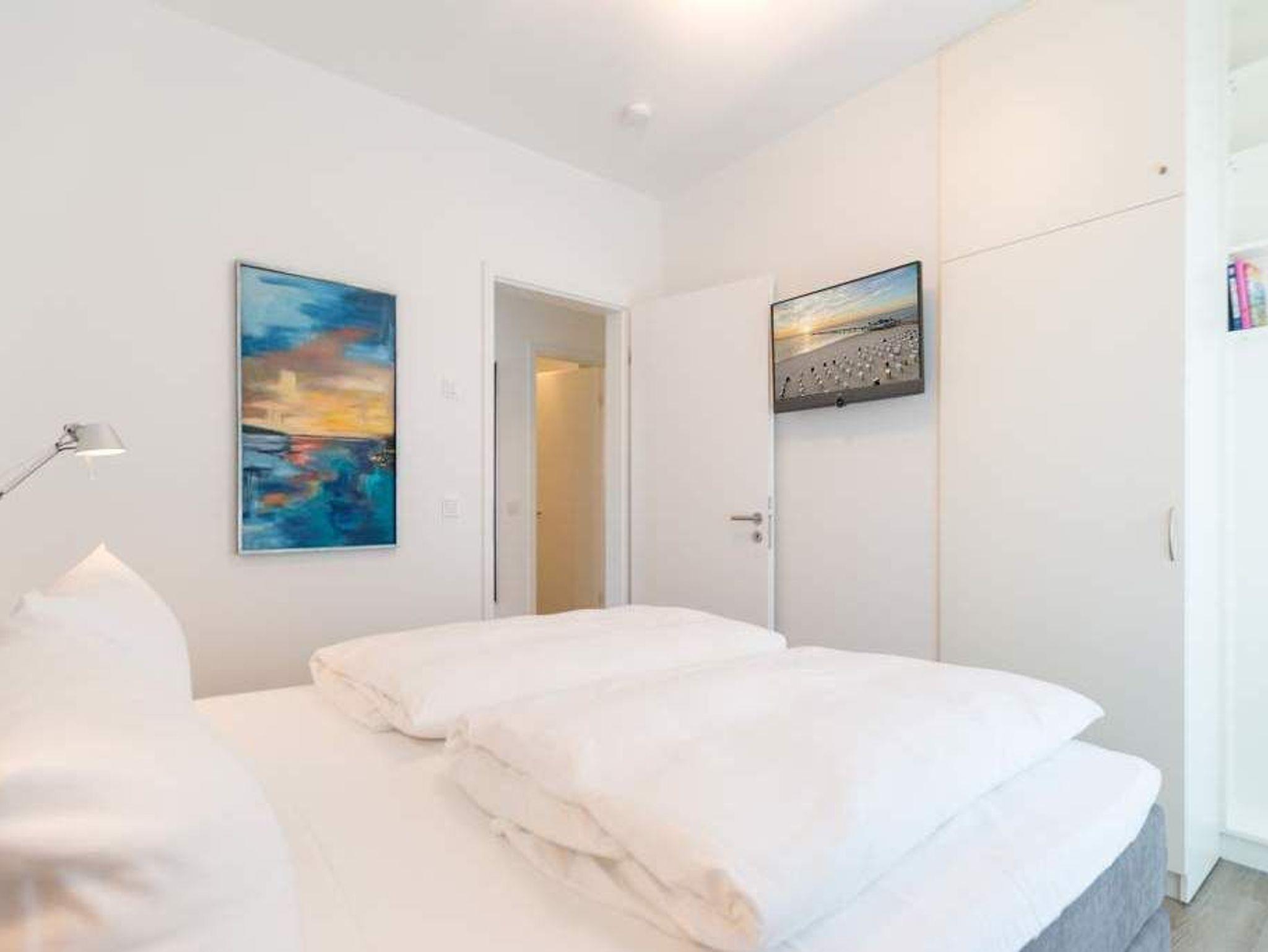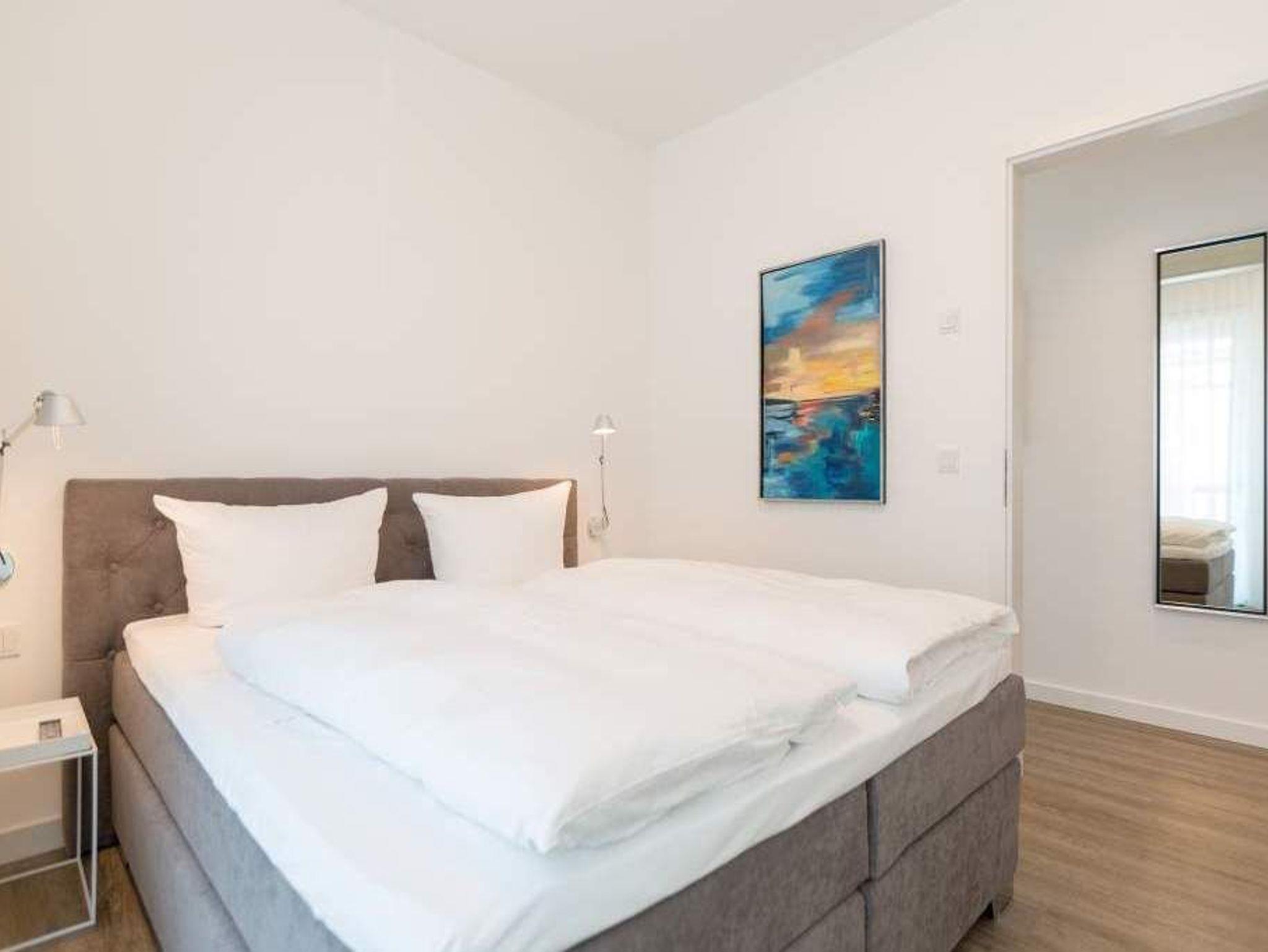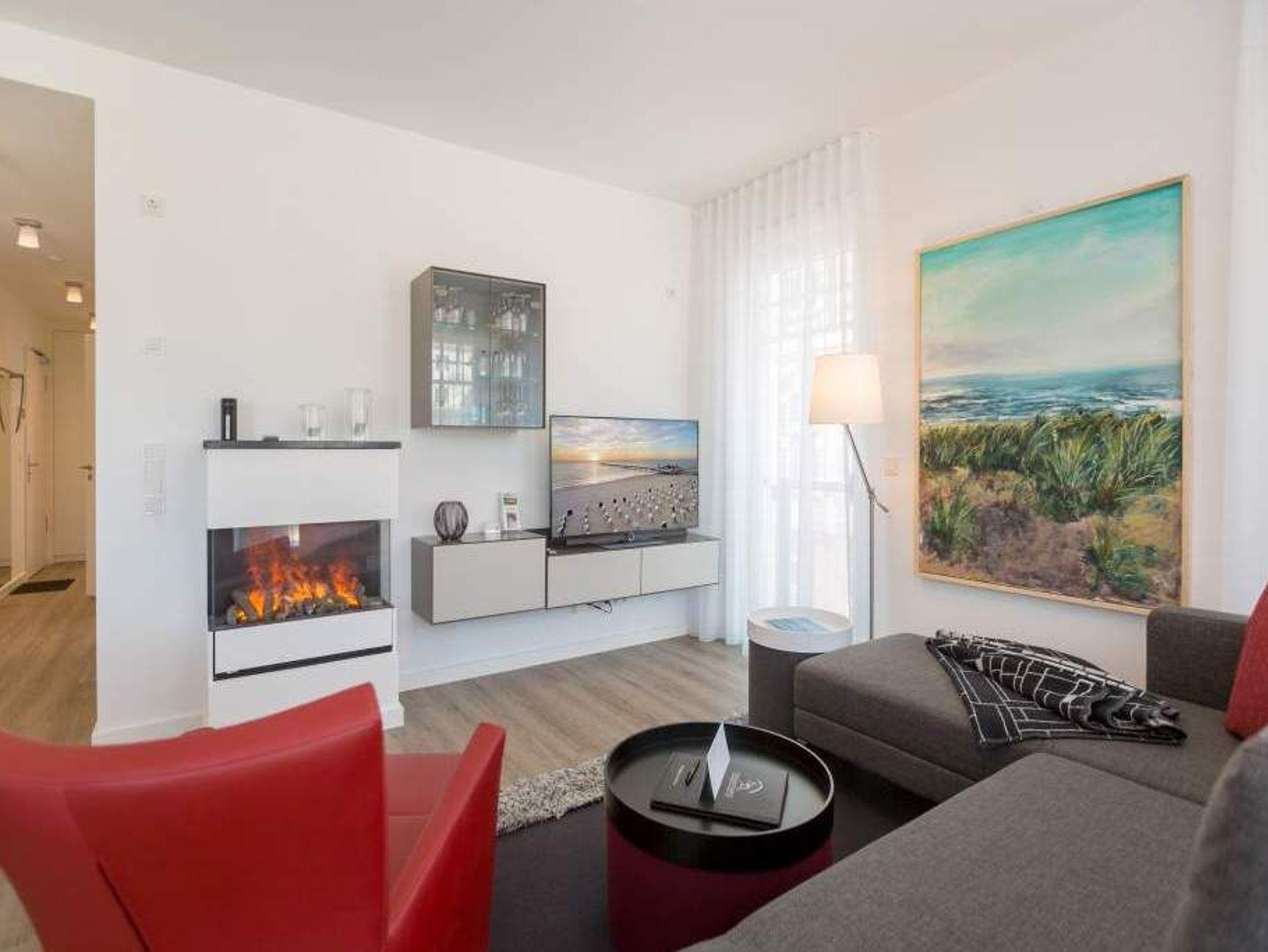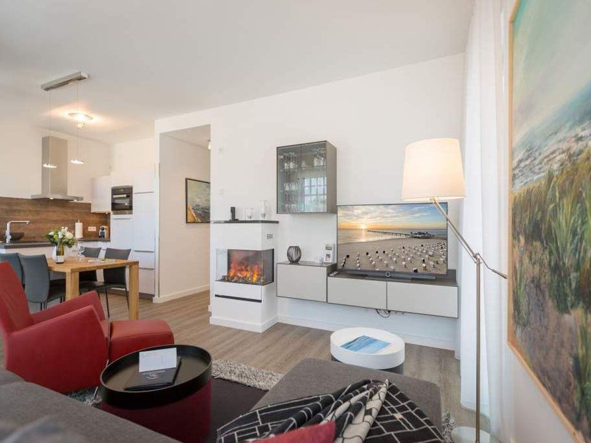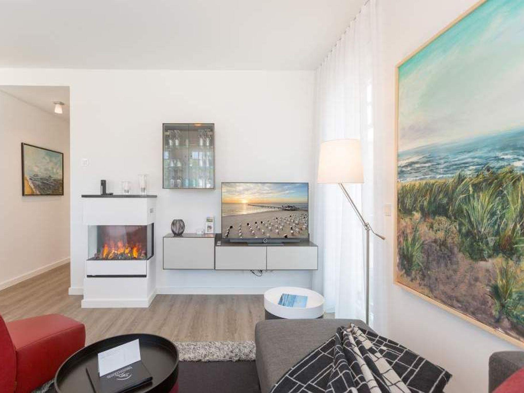 Schlichte Eleganz und modernes Wohn-Design empfängt Sie im Appartement 6 im ersten Obergeschoss des Westendpalais. Auf dem nach Westen ausgerichteten Balkon hören Sie das Meeresrauschen der nur knapp 100 Meter entfernten Ostsee. Was kann es Schöneres geben, als den Urlaubstag an der Ostsee unter freiem Himmel mit einem duftend warmen Getränk und frischen Brötchen zu beginnen oder ihn hier in der Abendsonne ausklingen zu lassen? Platz bietet das Urlaubsdomizil vier Personen. Das offene Wohn-Esszimmer ? komfortabel eingerichtet ? lässt aufatmen. Highlight und Mittelpunkt des großen Raumes ist der von drei Seiten einsehbare Elektrokamin. So können Sie das Flammenspiel an kühlen Tagen oder Abenden vom Sofa, dem modernen Ledersessel oder vom schönen Essplatz aus genießen. Relaxen Sie vor dem großen Flat-TV oder kochen gemeinsam etwas Feines in der gut ausgestatteten Küche. Hochwertiges Marken-Geschirr finden Sie in den Küchen- und Hängeschränken. Entspannend wird es auf den 68 Quadratmetern auch in den beiden Schlafzimmern. Hier warten zwei bequeme Boxspringdoppelbetten (jeweils 1,80 m x 2,00 m) nur darauf, Ihnen erholsame Träume zu schenken. Maßangefertigte Einbauschränke bieten reichlich Ablagefläche. In jedem Schlafzimmer gibt es einen Flat-TV. Und die Betten sind bei Anreise bereits bezogen. Das geräumige Badezimmer verfügt über eine Regen-Dusche, einen Waschtisch und ein WC. Für das Private-Spa-Erlebnis der besonderen Art sorgt eine schöne Panorama-Sauna. Sie ist mit einem Lichteffekt und mit einem Bluetooth - Modul zum Musikhören ausgestattet. Das Appartement besitzt zudem ein separates Gäste-WC. Für Ihren Urlaubskomfort liegen Handtücher bereit. Ein Pkw-Stellplatz befindet sich in der Tiefgarage. Und für den Tag am Meer steht Ihnen als besonderes Bonbon von Mitte Mai bis Ende September ausschließlich in der Saison 2024 (je nach Witterung) ein Strandkorb am Strand kostenlos zur Verfügung.
