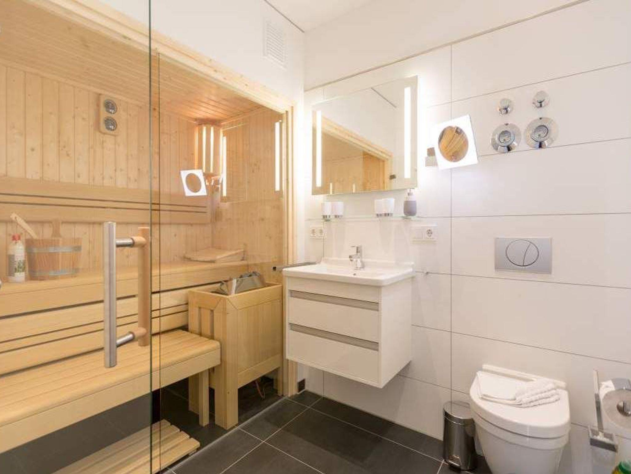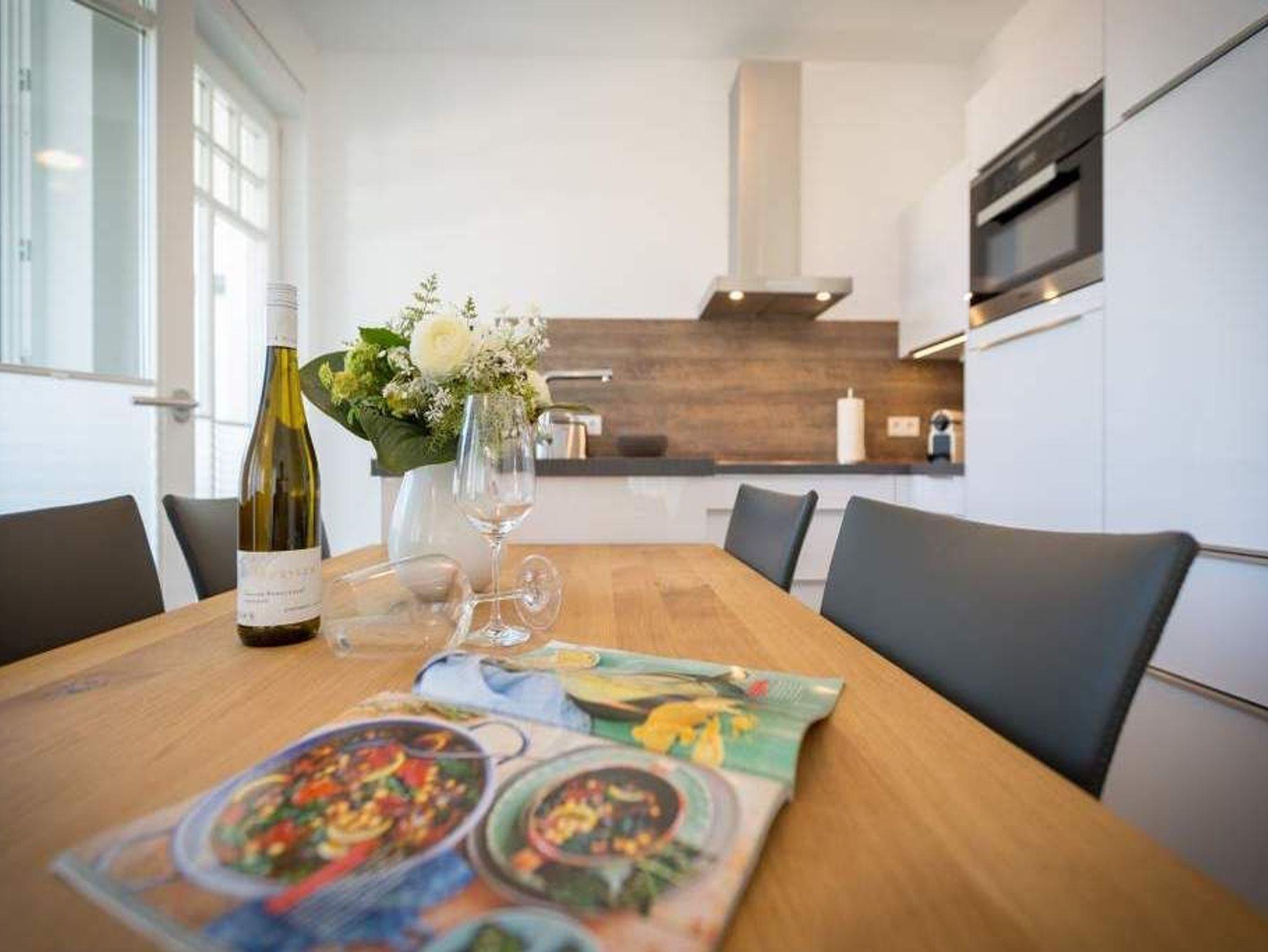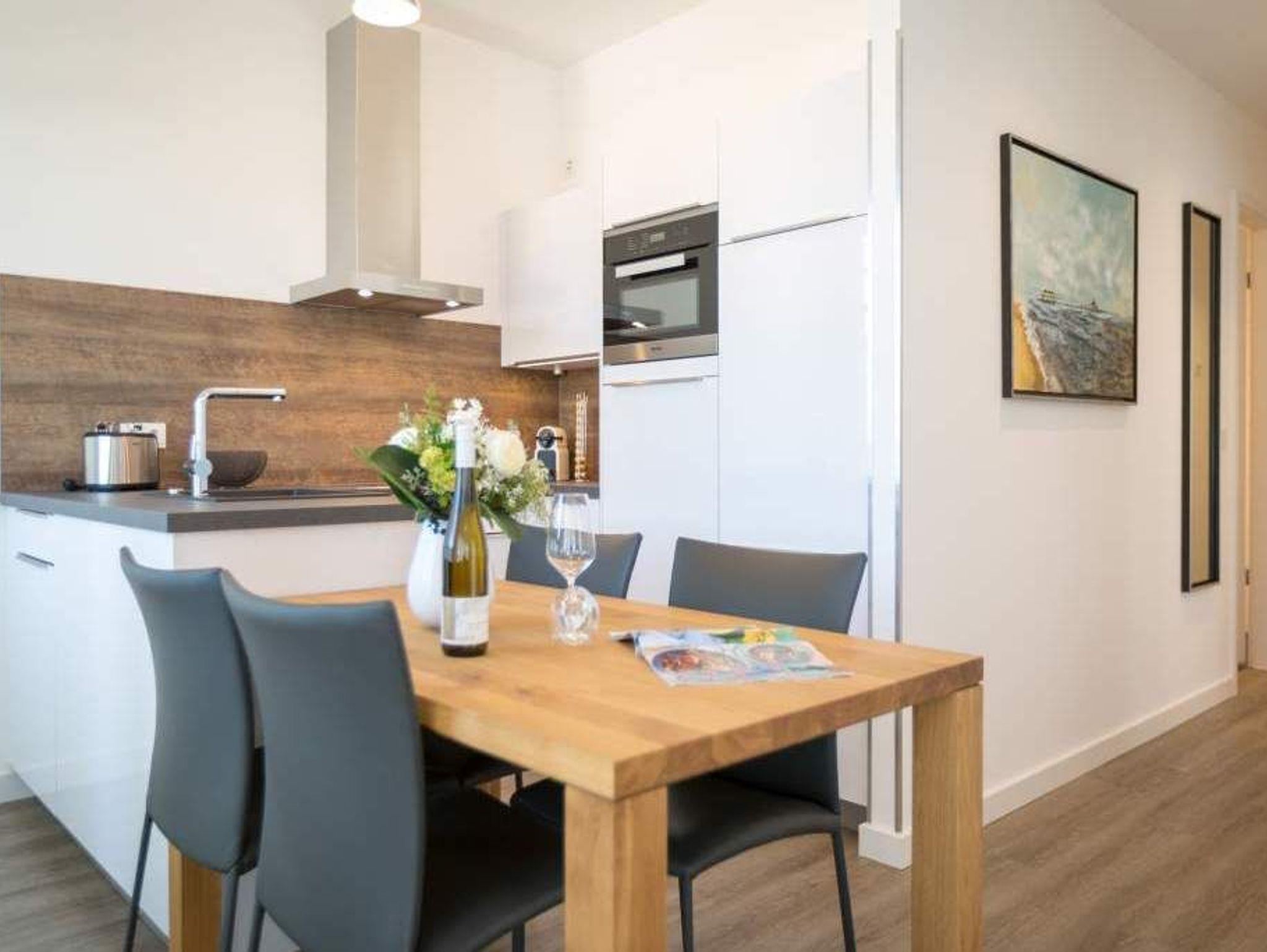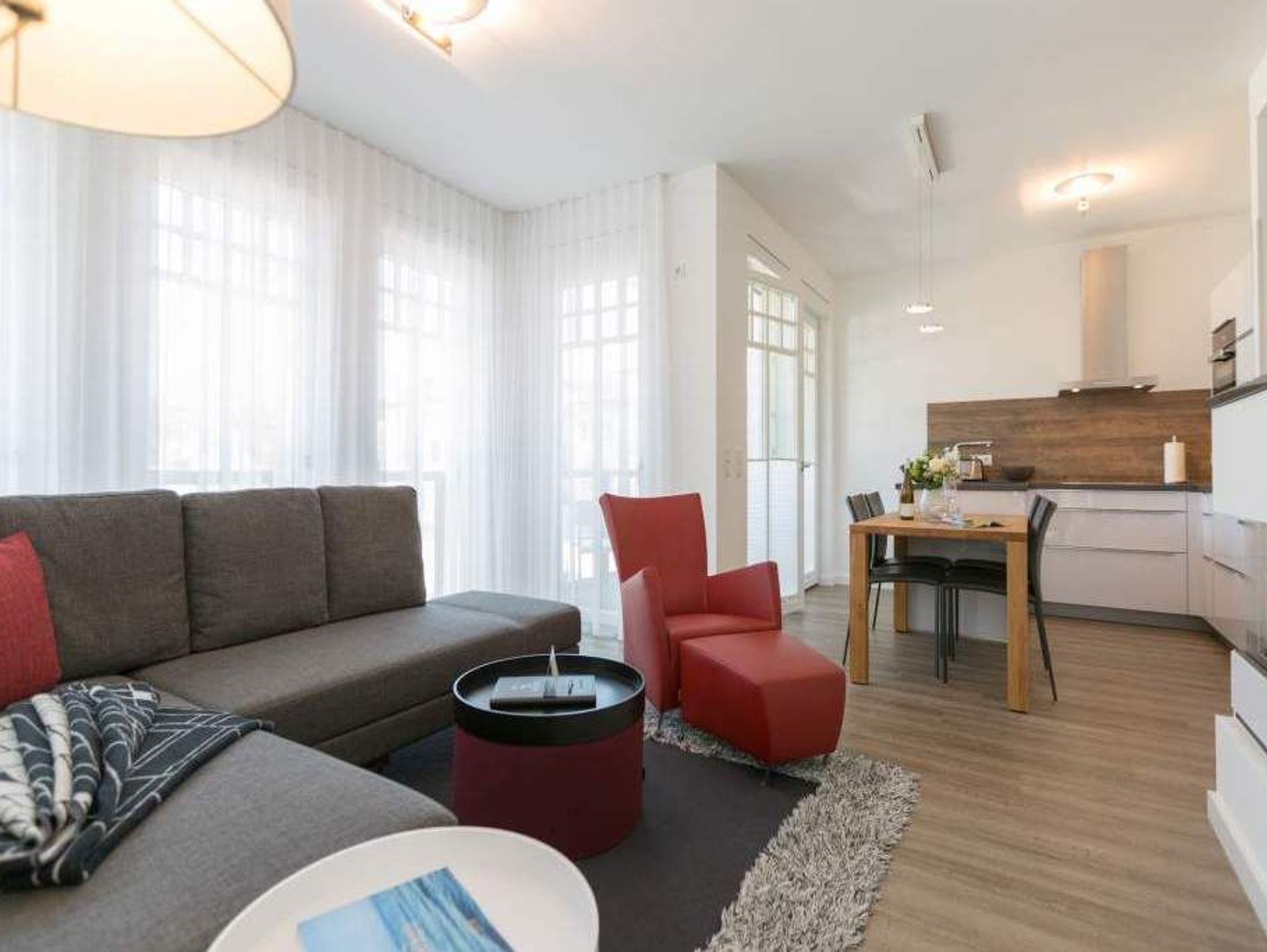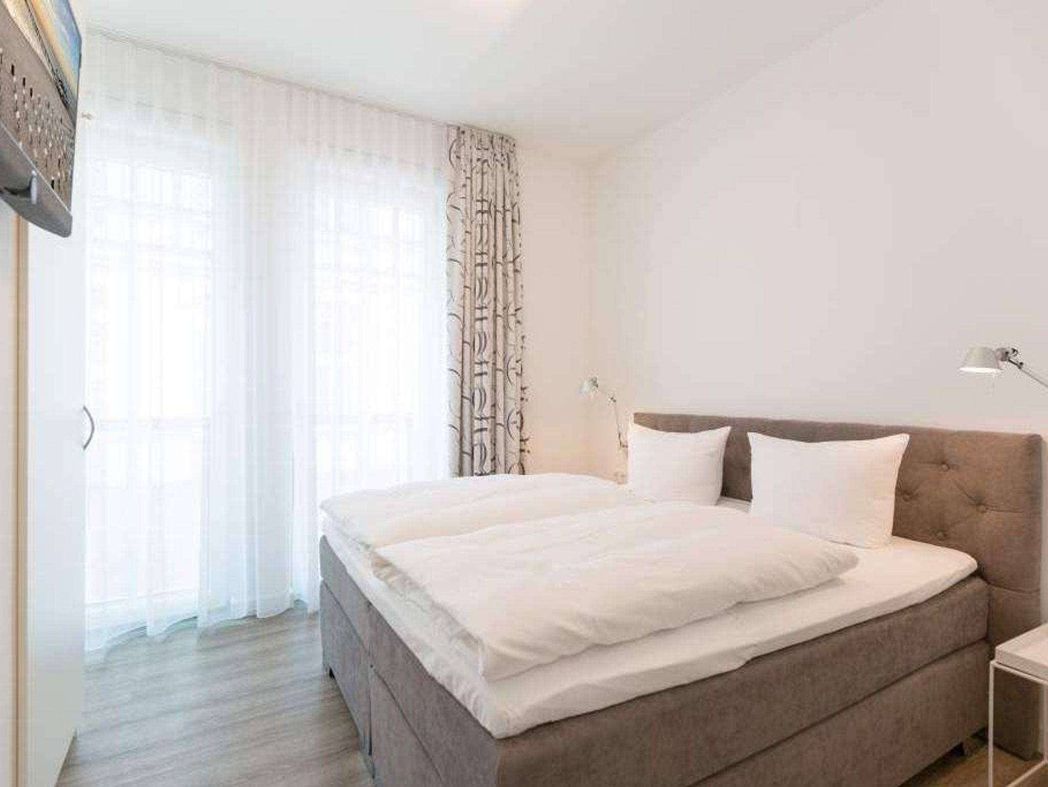 Schlichte Eleganz und modernes Wohn-Design empfängt Sie im Appartement 6 im ersten Obergeschoss des Westendpalais. Auf dem nach Westen ausgerichteten Balkon hören Sie das Meeresrauschen der nur knapp 100 Meter entfernten Ostsee. Was kann es Schöneres geben, als den Urlaubstag an der Ostsee unter freiem Himmel mit einem duftend warmen Getränk und frischen Brötchen zu beginnen oder ihn hier in der Abendsonne ausklingen zu lassen? Platz bietet das Urlaubsdomizil vier Personen. Das offene Wohn-Esszimmer ? komfortabel eingerichtet ? lässt aufatmen. Highlight und Mittelpunkt des großen Raumes ist der von drei Seiten einsehbare Elektrokamin. So können Sie das Flammenspiel an kühlen Tagen oder Abenden vom Sofa, dem modernen Ledersessel oder vom schönen Essplatz aus genießen. Relaxen Sie vor dem großen Flat-TV oder kochen gemeinsam etwas Feines in der gut ausgestatteten Küche. Hochwertiges Marken-Geschirr finden Sie in den Küchen- und Hängeschränken. Entspannend wird es auf den 68 Quadratmetern auch in den beiden Schlafzimmern. Hier warten zwei bequeme Boxspringdoppelbetten (jeweils 1,80 m x 2,00 m) nur darauf, Ihnen erholsame Träume zu schenken. Maßangefertigte Einbauschränke bieten reichlich Ablagefläche. In jedem Schlafzimmer gibt es einen Flat-TV. Und die Betten sind bei Anreise bereits bezogen. Das geräumige Badezimmer verfügt über eine Regen-Dusche, einen Waschtisch und ein WC. Für das Private-Spa-Erlebnis der besonderen Art sorgt eine schöne Panorama-Sauna. Sie ist mit einem Lichteffekt und mit einem Bluetooth - Modul zum Musikhören ausgestattet. Das Appartement besitzt zudem ein separates Gäste-WC. Für Ihren Urlaubskomfort liegen Handtücher bereit. Ein Pkw-Stellplatz befindet sich in der Tiefgarage. Und für den Tag am Meer steht Ihnen als besonderes Bonbon von Mitte Mai bis Ende September ausschließlich in der Saison 2024 (je nach Witterung) ein Strandkorb am Strand kostenlos zur Verfügung.