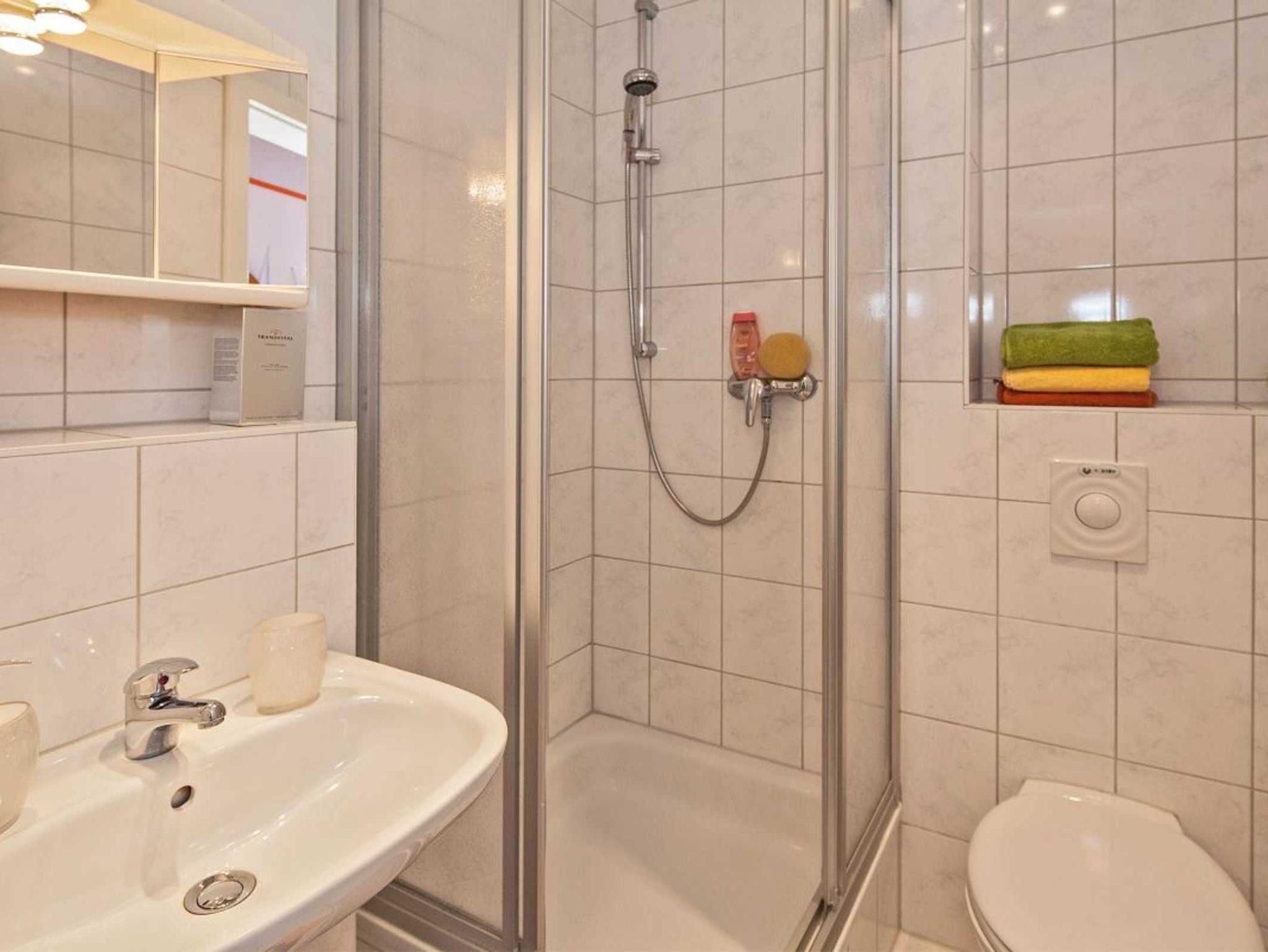 Das modern und komfortabel eingerichtete Ferienzimmer mit Balkon befindet sich im 1. Obergeschoss im Haus Antje. Ausgestattet ist es mit einem Doppelbett und einer kleinen SItzmöglichkeit mit Fernseher. Bad mit Dusche, Waschtisch und WC. Ein reichhaltiges Frühstücksbuffet ist bereits im Preis enthalten.