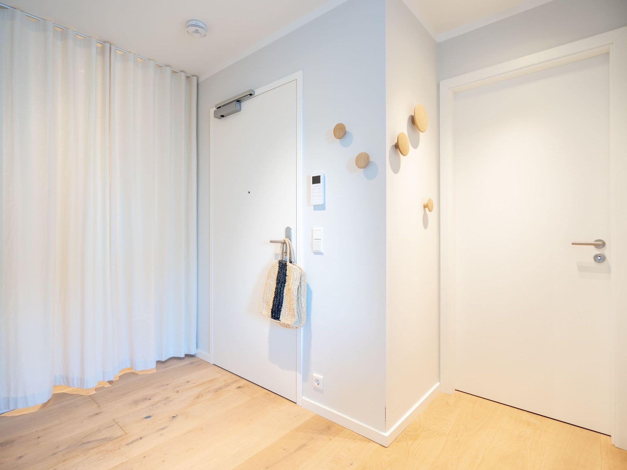 Die 3-Raum-Ferienwohnung Nr. 6 in der Villa Kamadori bietet auf 67 qm ein durchdachtes Raumkonzept für bis zu vier Personen und ein Kleinkind im Kinderreisebett. Der offen gestaltete Wohn- und Essbereich ist hell und einladend. Die moderne Küchenzeile ist vollständig ausgestattet mit Backofen, Induktionskochfeld, Kühlschrank mit Gefrierfach und Geschirrspülmaschine. Der Essplatz bietet bequem Platz für vier Personen. Im Wohnbereich lädt eine gemütliche Sitzgruppe zum Entspannen ein, ergänzt durch einen Flat-TV und einen Gas-Kamin, der per Fernbedienung für angenehme Atmosphäre sorgt. Zwei separate Schlafzimmer sorgen für Ruhe und Komfort. Beide sind mit hochwertigen Boxspring-Doppelbetten ausgestattet. Ein Schlafzimmer verfügt über ein Bettmaß von 1,60 m x 2,00 m, das zweite über ein großzügiges Bett von 1,80 m x 2,00 m sowie einen zusätzlichen Flat-TV. In beiden Räumen stehen Kleiderschränke zur Verfügung. Die Wohnung bietet zwei moderne Bäder mit Dusche, Waschtisch und WC. Ein Bad ist zusätzlich mit einer finnischen Sauna und einer Waschmaschine ausgestattet und macht die Wohnung auch in der kühleren Jahreszeit besonders attraktiv. Der 15 qm große Nord-Ost-Balkon ist möbliert und eignet sich ideal für ein entspanntes Frühstück oder ruhige Stunden an der frischen Luft. Ein fester Stellplatz in der Tiefgarage gehört ebenfalls zur Wohnung. Die maximale Einfahrtshöhe beträgt 1,85 m. Eine komfortable Ferienwohnung mit klarer Aufteilung, hochwertiger Ausstattung und einem Plus an Privatsphäre und Erholung.