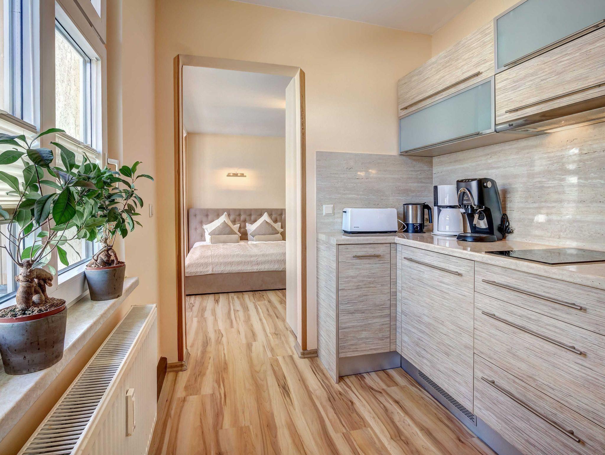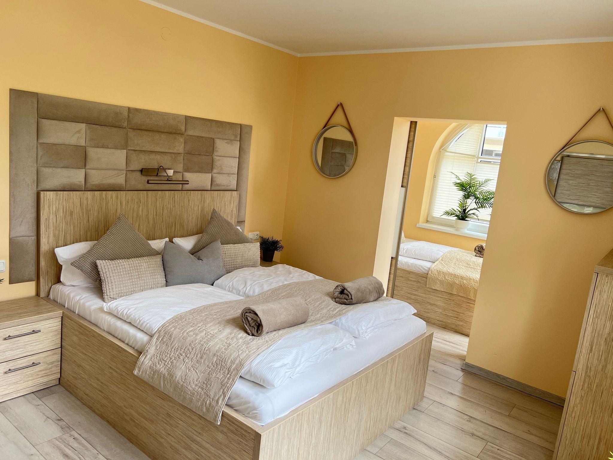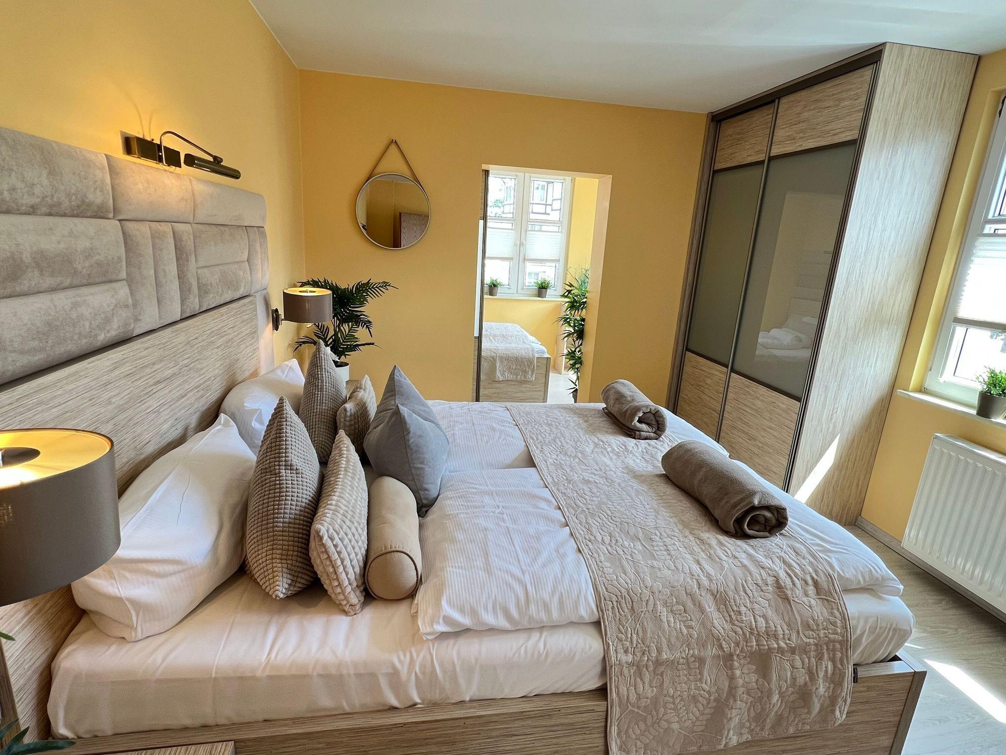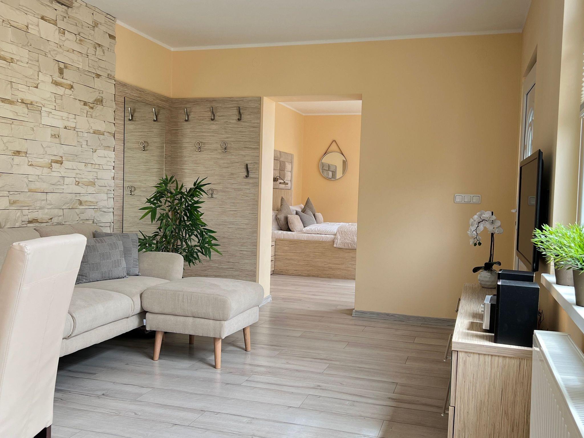 Die nur 80 Meter vom Strand entfernte Erdgeschosswohnung hat einen separaten Eingang. Sie ist besonders familienfreundlich und für Rollstuhlfahrer geeignet durch einen stufenlosen Zugang. Selbst die gesamte Ferienwohnung ist barrierefrei. Allergiker fühlen sich so wohl wie unsere Nichtraucher. In den Schlafzimmern befinden sich zwei extrahohe, bequeme Betten (160cm und 140cm). Selbstverständlich erwartet Sie eine komfortable Vollausstattung. Ansprechende Laminat- und Steinfliesenböden sorgen für Behaglichkeit und eine warme, heimische Atmosphäre. Die gesamte Ferienwohnung wird von einer Fußbodenheizung erwärmt. Ihnen steht ein LED-Fernseher, freier Internetzugang sowie eine moderne, grundausgestattete Einbauküche zur Verfügung. Ein Parkplatz direkt vor Ihrem Feriendomizil sorgt für kürzeste Wege. Weiße, kräftige Baumwollbettwäsche und weiche Handtücher werden Ihnen schmeicheln. Geschirrtücher sowie Duschvorleger sind ebenfalls vorhanden. Hochstühle und Kinderreisebetten können nach Rücksprache zur kostenlosen Nutzung bereitgestellt werden. Toilettenhalterung und behindertengerechte Duschhocker sind für unsere bedürftigen Gäste ebenfalls auf Anfrage inklusive. Jungen Familien und gehandicapten Personen werden sämtliche, barrierefreien Zugänge zum Strand, zur Seebrücke und der Ortschaft Ahlbeck sehr entgegenkommen.