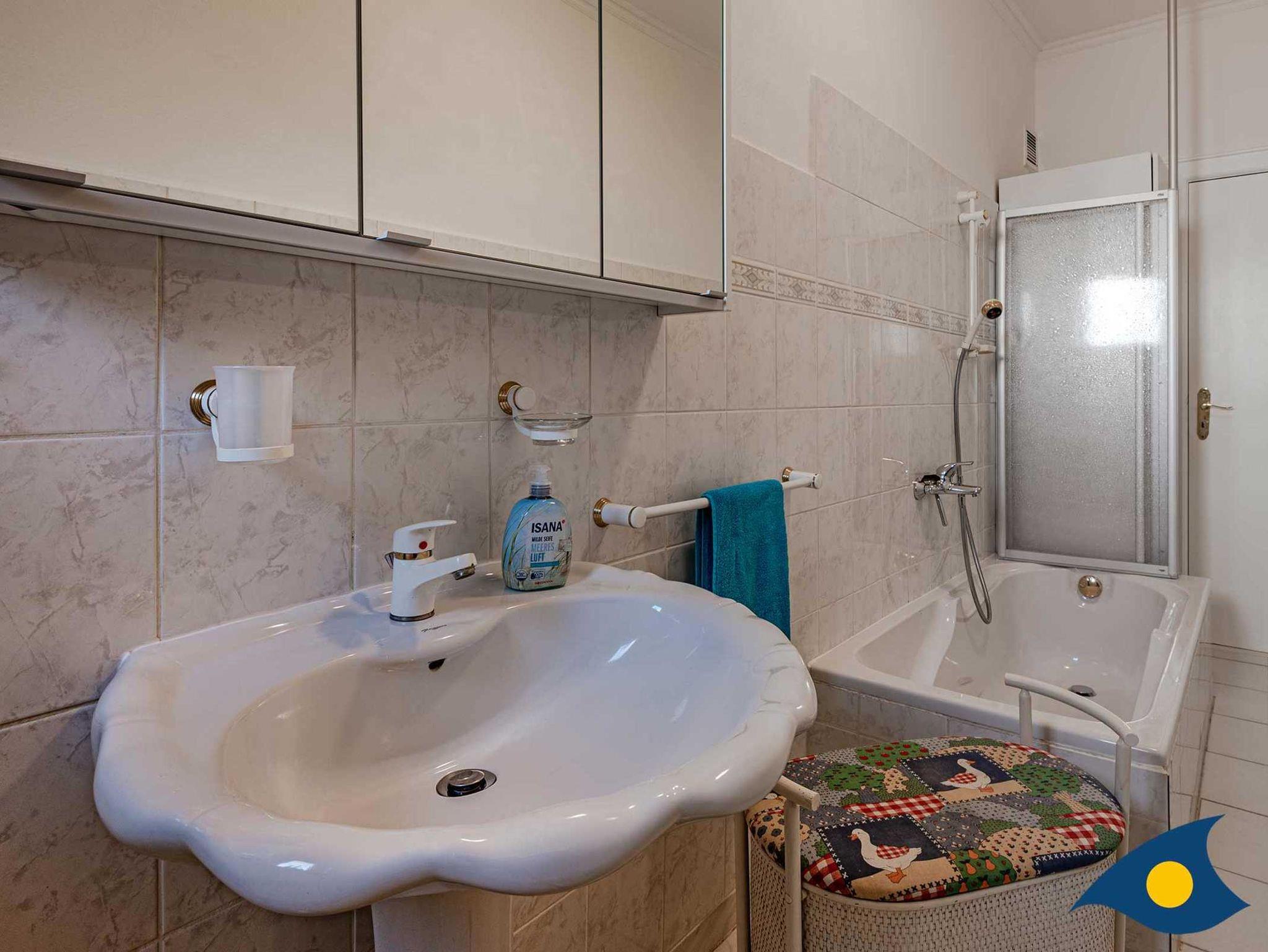Die Wohnung 2 ist ca. 45 qm groß und besteht aus einem gemütlich eingerichtetem Wohnzimmer mit integrierter moderner Küche (mit Geschirrspüler), einem Schlafzimmer mit bequemen Doppelbett und ein Badezimmer mit WC und Badewanne mit Duschabteil. Vor der Ferienwohnung befindet sich eine Sitzgelegenheit.