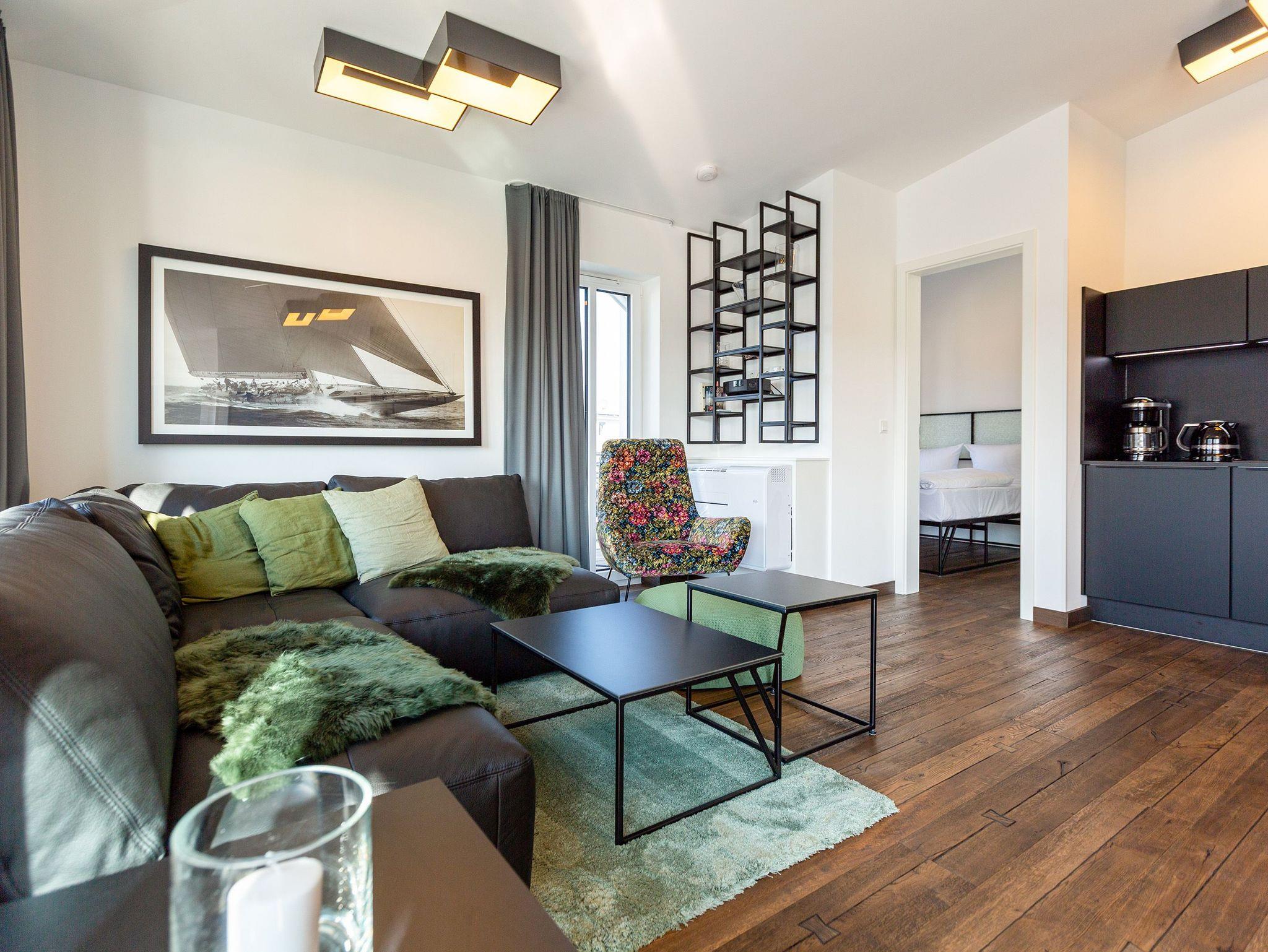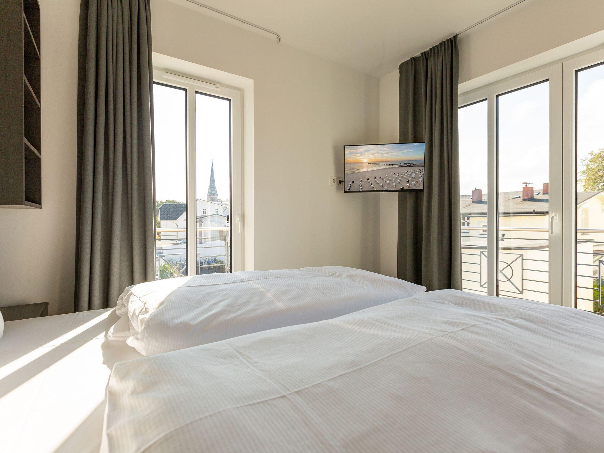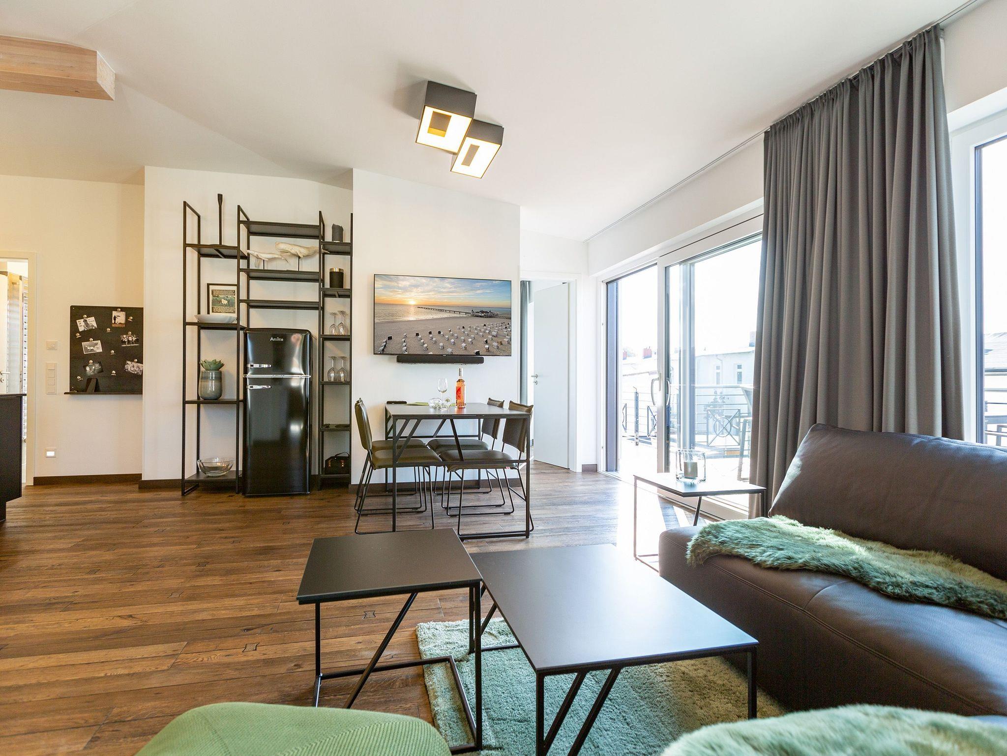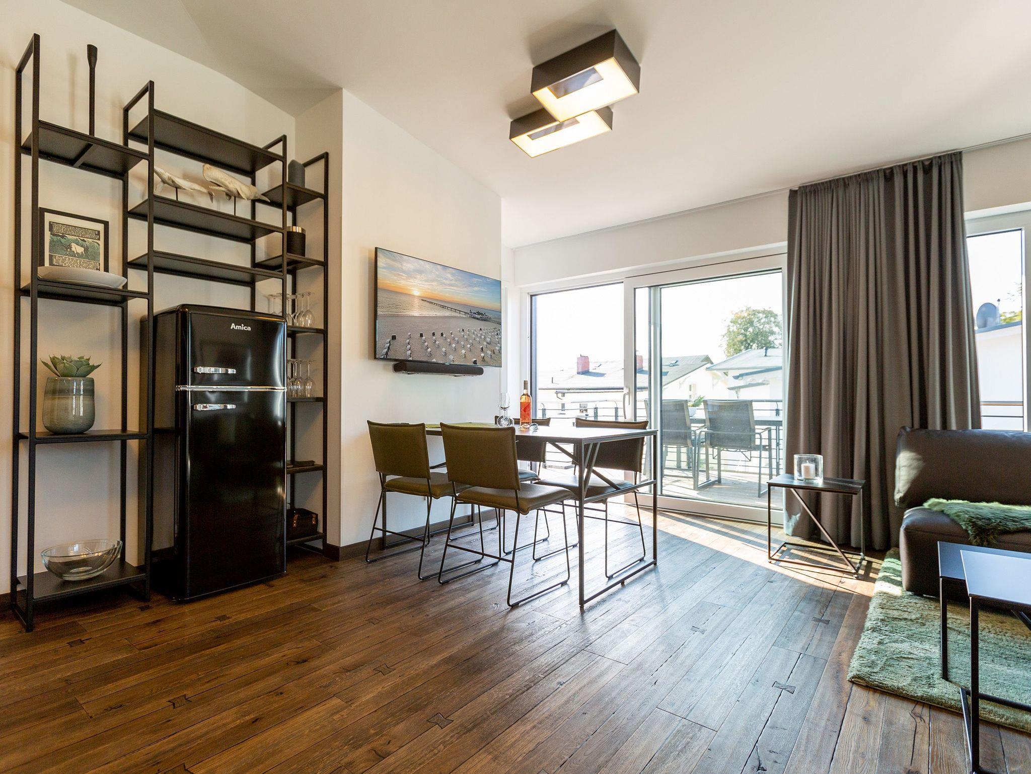 Ankommen, abschalten und neue Energie tanken. Im neu gebauten Quartier 7 im Herzen des Kaiserbades Ahlbeck fällt Ihnen das sicher ganz leicht. Moderne und stilvoll eingerichtete Appartements laden zum Wohlfühlen und Entspannen ein. In den ersten und zweiten Stock gelangen Sie via Fahrstuhl. Schöne, alte Villen umgeben die Anlage, verleihen dem Wohngefühl ein besonderes Flair. Die Zwei- und Drei-Zimmer-Appartements sind geräumig, offen und hell und teilweise mit einer Sauna oder einem Kamin ausgestattet. Wohnkomfort vom Feinsten lädt zum Faulenzen ein. Genießen Sie die frische Ostseeluft auf dem Balkon oder der Terrasse, denn jede Wohnung besitzt einen kleinen Außenbereich. An stürmischen Tagen können Sie von hier aus sogar die Wellen rauschen hören. Das beste Rezept für einen erholsamen Schlaf. Offene Wohnbereiche und voll ausgestattete Küchen sorgen für alle Annehmlichkeiten. Das Haus bietet eine Tiefgarage (Einfahrthöhe ca. 2,03 m). Einige Wohnungen verfügen über einen Kellerraum, der als Unterstellmöglichkeit für Fahrräder genutzt werden kann. Das WLAN-Netz ist für alle kostenfrei. Willkommen also in Ihrem kleinen Urlaubsparadies.