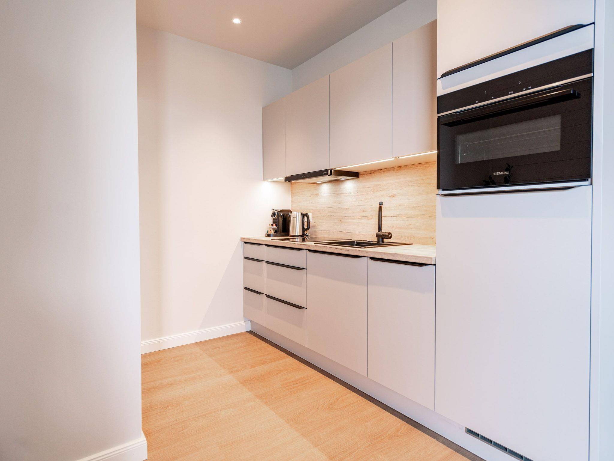 Die 2024 fertig gestellte Strandterrasse liegt direkt an der belebten Strandpromenade und bietet einen einzigartigen Ausblick auf die Grand Dame der historischen Seebrücken sowie die historische Konzertmuschel, einem beliebten Treffpunkt für Kunst und Kultur. Dahinter liegt die Ostsee ? ein Panorama, das zu den schönsten in den Kaiserbädern gehört. Es ist wie das Abtauchen in eine andere Zeit. In eine Zeit, in der man mit Stock, Sonnenschirm und Hut fürs „Sehen und gesehen werden“ über die Promenade schlenderte; aber auch in eine Zeit, in der ? damals wie heute ? Zeit einmal für eine kurze Weile keine Rolle spielt. Weil man angekommen ist im Loslassen, Entspannen und Genießen. Es ist dieser besondere Geruch nach Meeresluft und Freiheit, der in Erinnerung bleibt. Dazu die Bilder, die man mitnimmt. Von langen Strandspaziergängen, vom Lachen in fröhlich schäumenden Ostseewellen, von der Zeit in einem wunderschönen Urlaubsdomizil. Denn genau das ist die Strandterrasse mit ihren 56 modernen und exklusiven Ferienappartements direkt gegenüber der Ahlbecker Seebrücke. Die Ein-, Zwei- oder Dreizimmerwohnungen ? zwischen 40 und 70 Quadratmeter groß ? sind von einer Innenarchitektin gemeinsam mit unserem Erfahrungsschatz an Gästewünschen mit viel Liebe zum Detail und ganz individuell konzipiert worden. Entspannung und Wohlfühlen stehen an erster Stelle. Alles ist aufeinander abgestimmt und sorgt für eine gemütliche Atmosphäre. Wählen Sie zwischen einem Domizil in einem hellen, sandfarbenen Designkonzept oder einem Appartement mit anthrazitfarbenen Farbakzenten. Alle Appartements verfügen gleichermaßen über eine stilvolle und komfortable Einrichtung, die passgenau angefertigt worden ist, sowie über moderne Küchen und Bäder. Jedem Schlafzimmer ist ein eigenes Bad mit Dusche zugeordnet (außer App. B4.5). Die Appartements besitzen fast alle einen Balkon ? viele schauen sogar zur Ostsee hinaus. Die meisten Feriendomizile haben einen Elektrokamin und Infrarotsaunen. Im Erdgeschoss befindet sich ein separater Gemeinschaftsraum für Fahrräder. Außerdem besteht die Möglichkeit, im Gemeinschaftswaschraum 2 Waschmaschinen [&] Trockner zu nutzen. Ergänzt wird das Angebot durch eine Gemeinschaftssauna, die täglich von 11:00 bis 22:00 Uhr nutzbar ist. In der Tiefgarage (Einfahrtshöhe 2,03 Meter) steht für jede Wohnung 1 Pkw-Stellplatz zur Verfügung. Ist alles zur Zufriedenheit untergebracht? Dann kann der Urlaub ja beginnen. Und beim Blick vom Balkon über die Ostsee treffen sich zum Sonnenaufgang das Heute und das Damals. Gelassenheit legt sich beim Gang hinunter an den Strand auf die Seele. Jetzt darf die Zeit stehenbleiben.