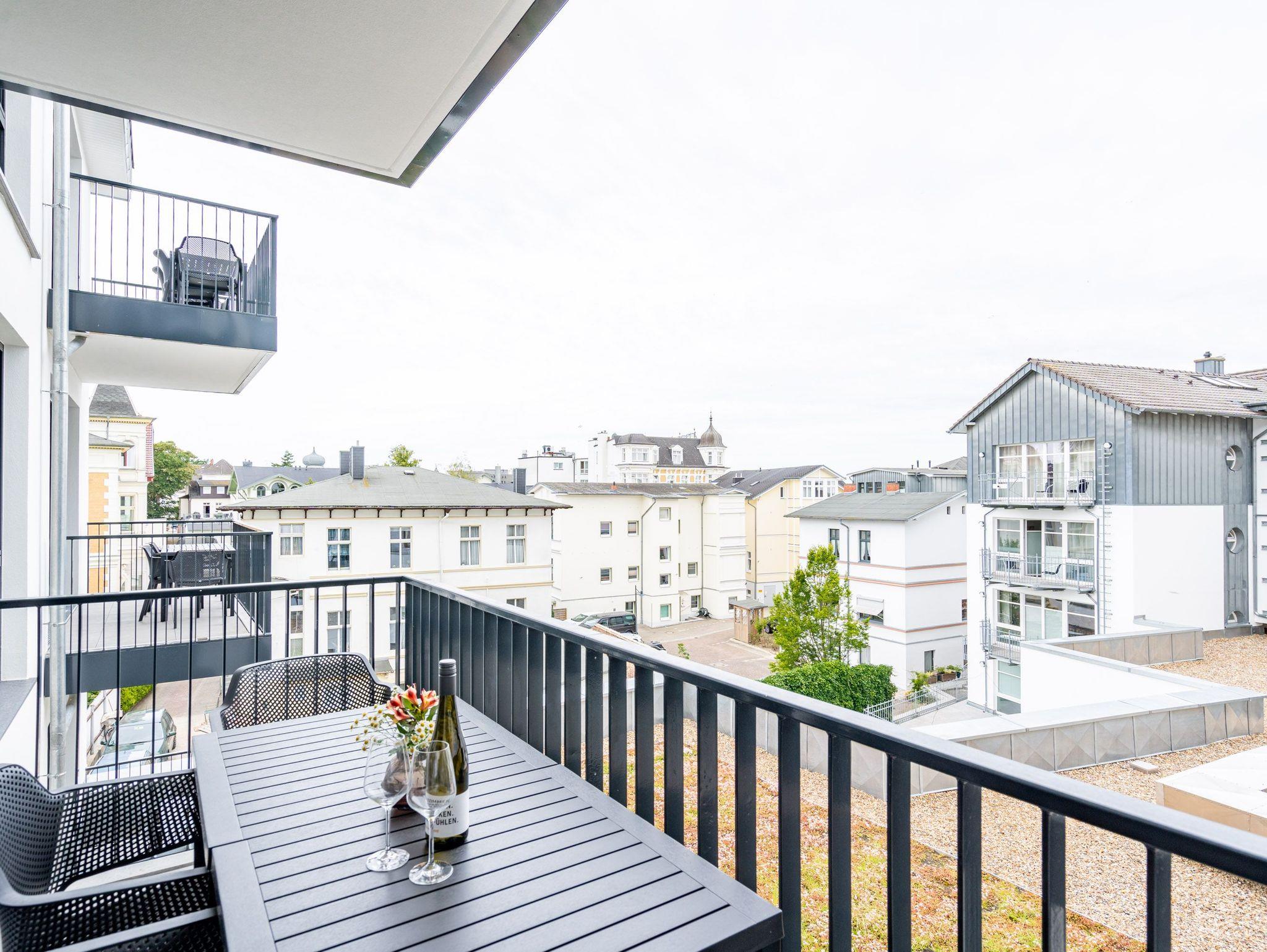 Die 2024 fertig gestellte Strandterrasse liegt direkt an der belebten Strandpromenade und bietet einen einzigartigen Ausblick auf die Grand Dame der historischen Seebrücken sowie die historische Konzertmuschel, einem beliebten Treffpunkt für Kunst und Kultur. Dahinter liegt die Ostsee ? ein Panorama, das zu den schönsten in den Kaiserbädern gehört. Es ist wie das Abtauchen in eine andere Zeit. In eine Zeit, in der man mit Stock, Sonnenschirm und Hut fürs ?Sehen und gesehen werden? über die Promenade schlenderte; aber auch in eine Zeit, in der ? damals wie heute ? Zeit einmal für eine kurze Weile keine Rolle spielt. Weil man angekommen ist im Loslassen, Entspannen und Genießen. Es ist dieser besondere Geruch nach Meeresluft und Freiheit, der in Erinnerung bleibt. Dazu die Bilder, die man mitnimmt. Von langen Strandspaziergängen, vom Lachen in fröhlich schäumenden Ostseewellen, von der Zeit in einem wunderschönen Urlaubsdomizil. Denn genau das ist die Strandterrasse mit ihren 56 modernen und exklusiven Ferienappartements direkt gegenüber der Ahlbecker Seebrücke. Die Ein-, Zwei- oder Dreizimmerwohnungen ? zwischen 40 und 70 Quadratmeter groß ? sind von einer Innenarchitektin gemeinsam mit unserem Erfahrungsschatz an Gästewünschen mit viel Liebe zum Detail und ganz individuell konzipiert worden. Entspannung und Wohlfühlen stehen an erster Stelle. Alles ist aufeinander abgestimmt und sorgt für eine gemütliche Atmosphäre. Wählen Sie zwischen einem Domizil in einem hellen, sandfarbenen Designkonzept oder einem Appartement mit anthrazitfarbenen Farbakzenten. Alle Appartements verfügen gleichermaßen über eine stilvolle und komfortable Einrichtung, die passgenau angefertigt worden ist, sowie über moderne Küchen und Bäder. Jedem Schlafzimmer ist ein eigenes Bad mit Dusche zugeordnet (außer App. B4.5). Die Appartements besitzen fast alle einen Balkon ? viele schauen sogar zur Ostsee hinaus. Die meisten Feriendomizile haben einen Elektrokamin und Infrarotsaunen. Im Erdgeschoss befindet sich ein separater Gemeinschaftsraum für Fahrräder. Außerdem besteht die Möglichkeit, im Gemeinschaftswaschraum 2 Waschmaschinen [&] Trockner zu nutzen. Ergänzt wird das Angebot durch eine Gemeinschaftssauna, die täglich von 11:00 bis 22:00 Uhr nutzbar ist. In der Tiefgarage (Einfahrtshöhe 2,03 Meter) steht für jede Wohnung 1 Pkw-Stellplatz zur Verfügung. Ist alles zur Zufriedenheit untergebracht? Dann kann der Urlaub ja beginnen. Und beim Blick vom Balkon über die Ostsee treffen sich zum Sonnenaufgang das Heute und das Damals. Gelassenheit legt sich beim Gang hinunter an den Strand auf die Seele. Jetzt darf die Zeit stehenbleiben.