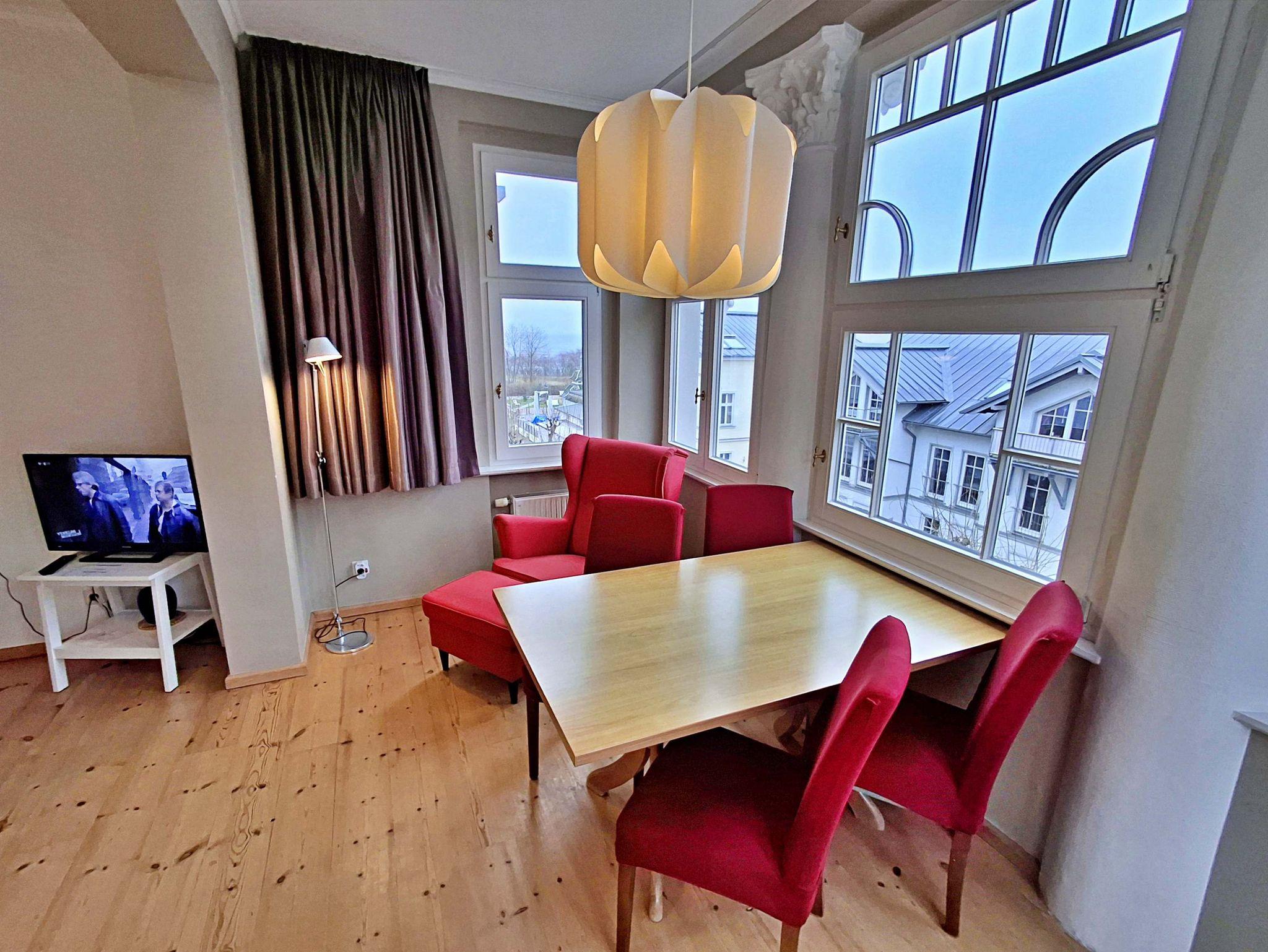 Willkommen in der freundlichen und großzügigen 3-Zimmer-Ferienwohnung Prerow in der stilvoll restaurierten Villa Ahlbeck auf der Insel Usedom! Die Wohnung befindet sich im 2. Obergeschoss und bietet auf ca. 75 qm Platz für bis zu 4 Erwachsene und 1 Kleinkind bis 3 Jahre ideal für Familien oder Paare.